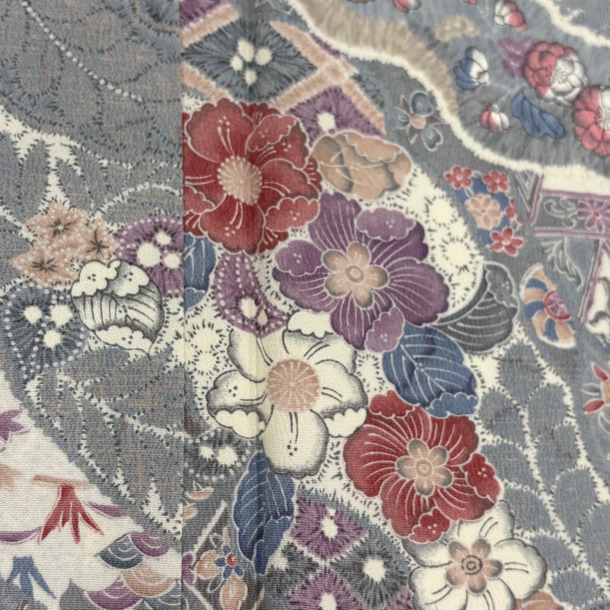 浴衣 身丈160.5cm 裄丈66cm M 絞り浴衣 草花 青灰色 綿 名品