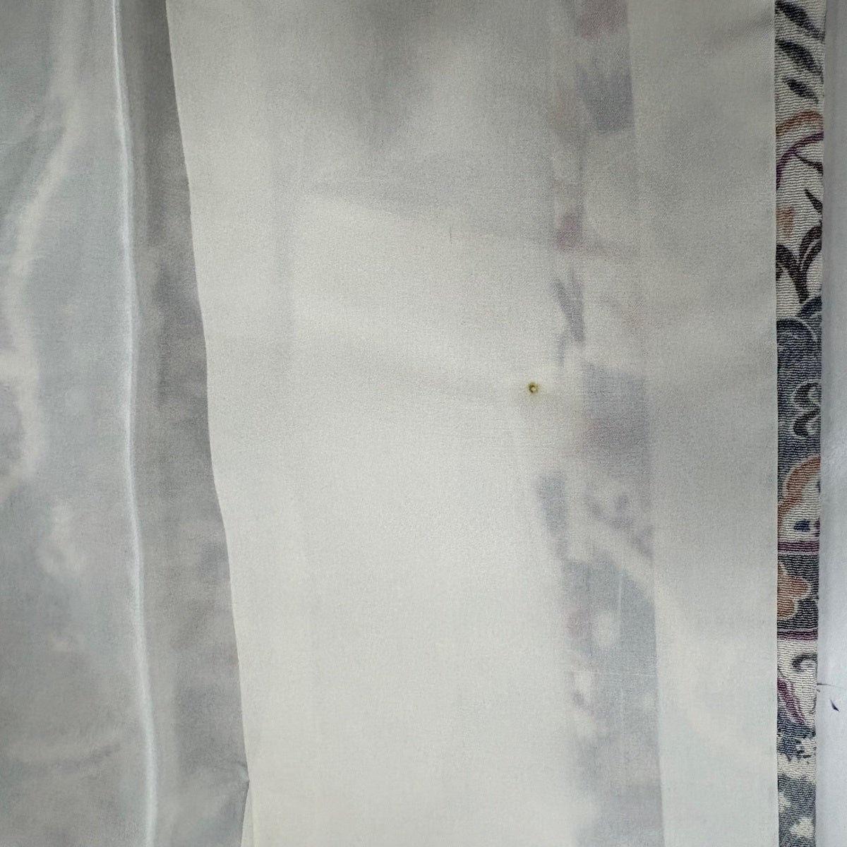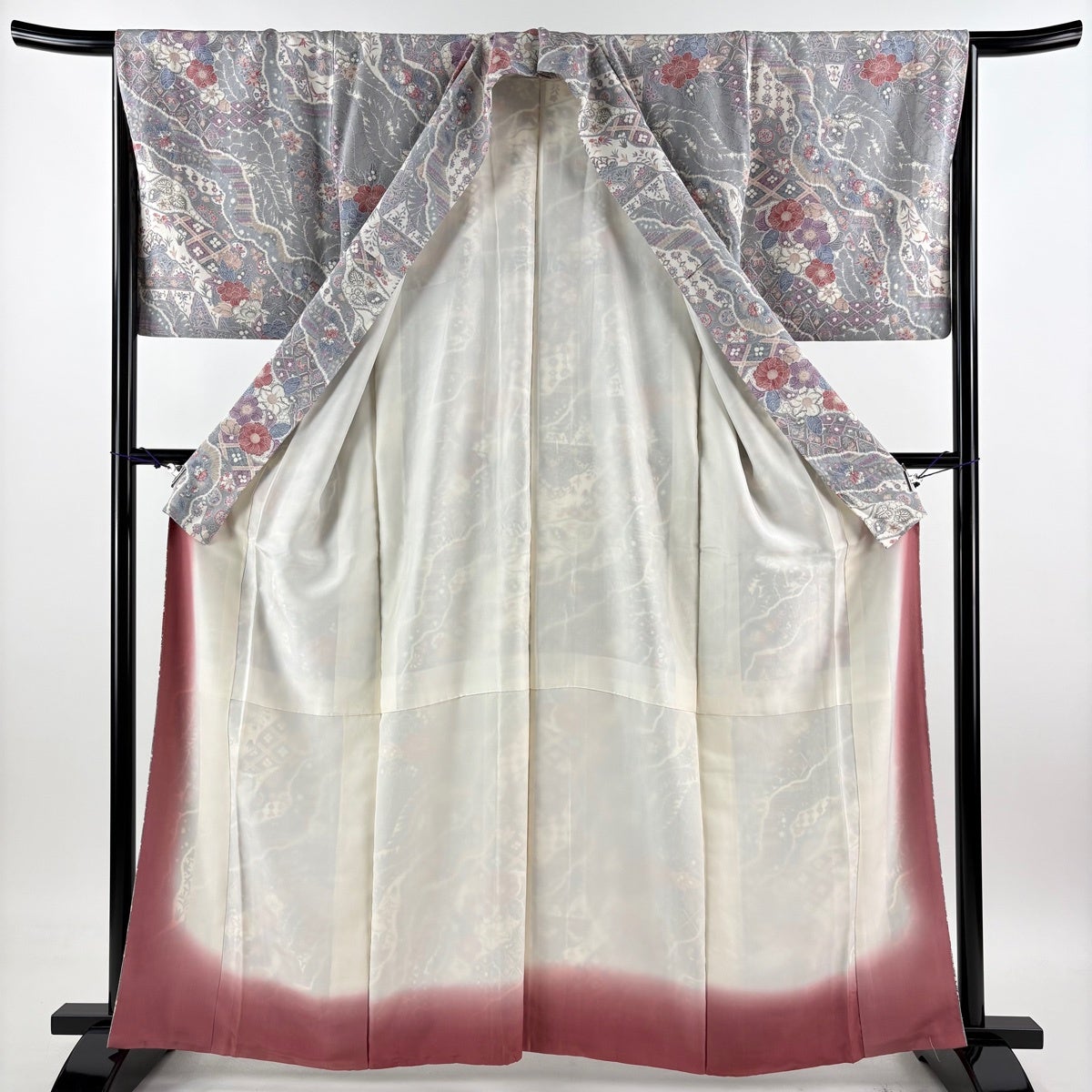 付下げ 身丈155cm 裄丈61cm S 薄物 田村哲彦 縦絽 落款あり 草花 青灰色 正絹 逸品 一つ紋
