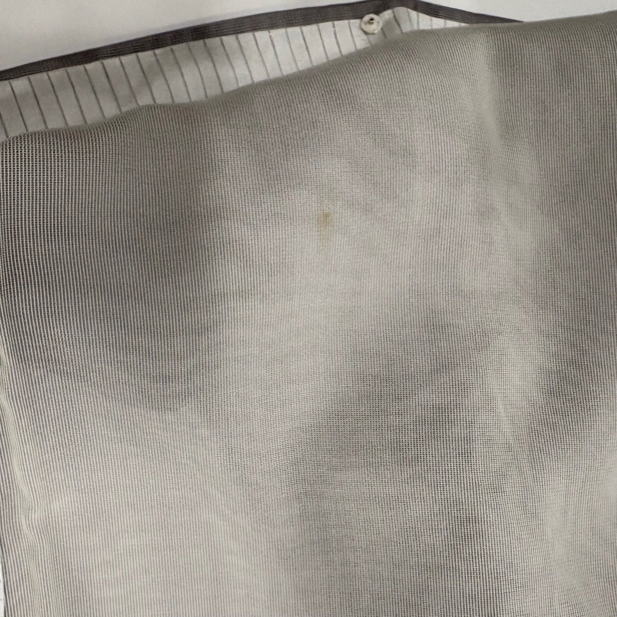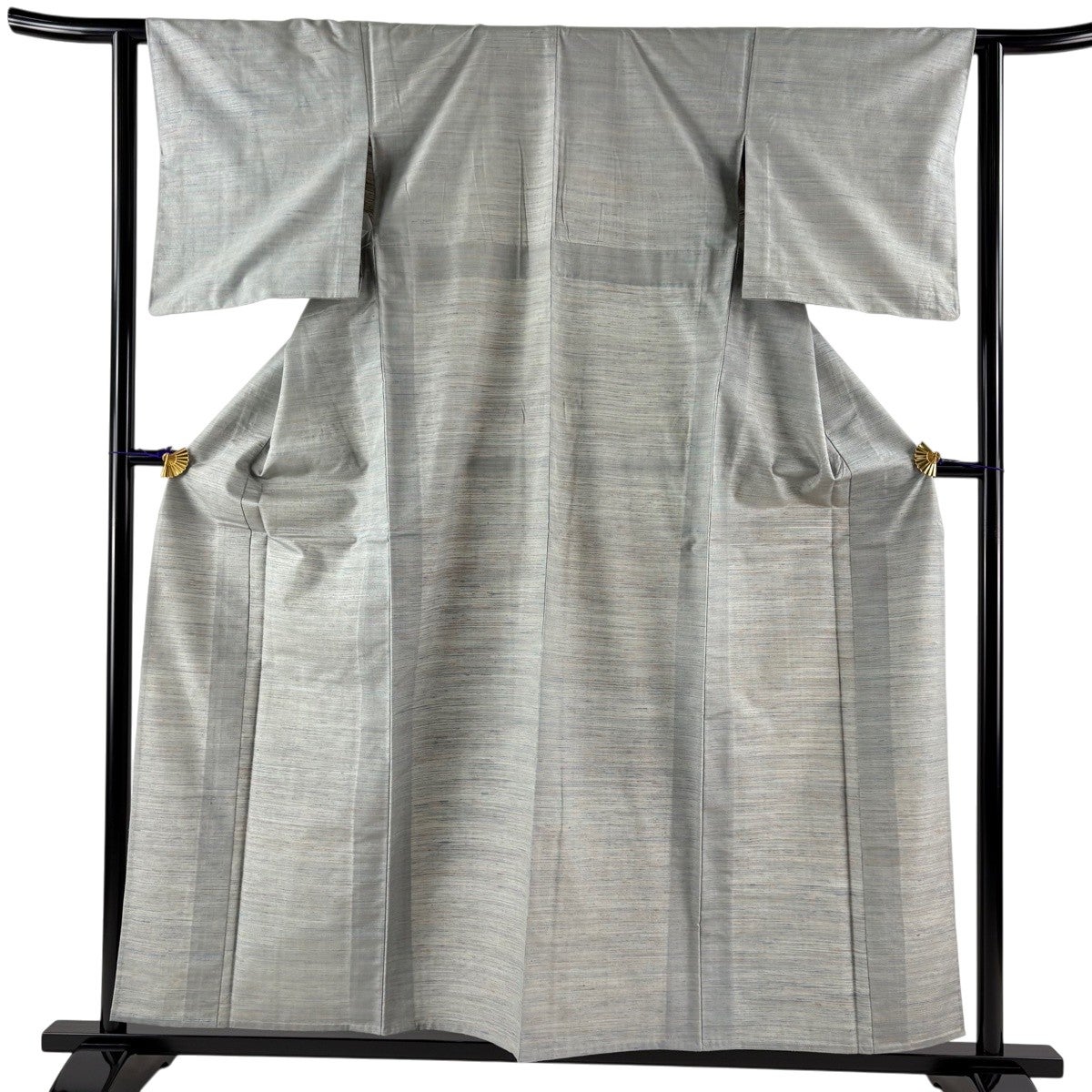 男着物 身丈147.5cm 裄丈74cm M 薄物 小千谷縮 証紙あり 縦縞 灰色 麻 逸品