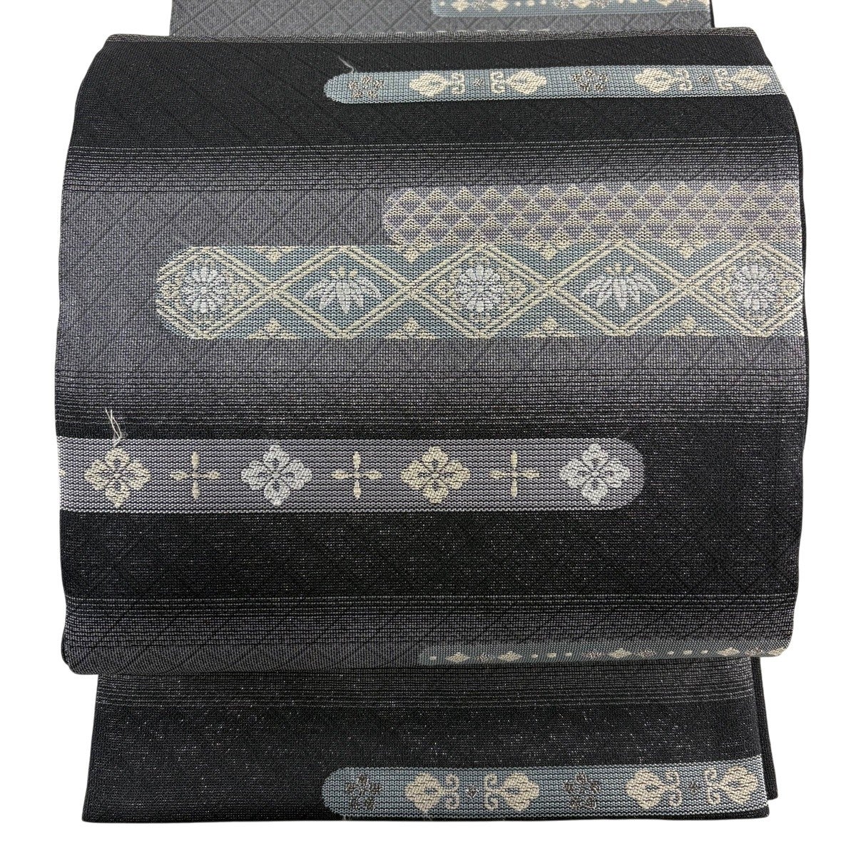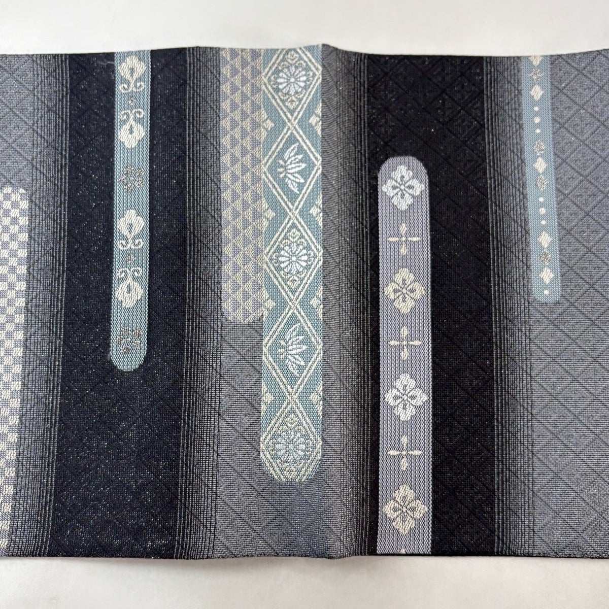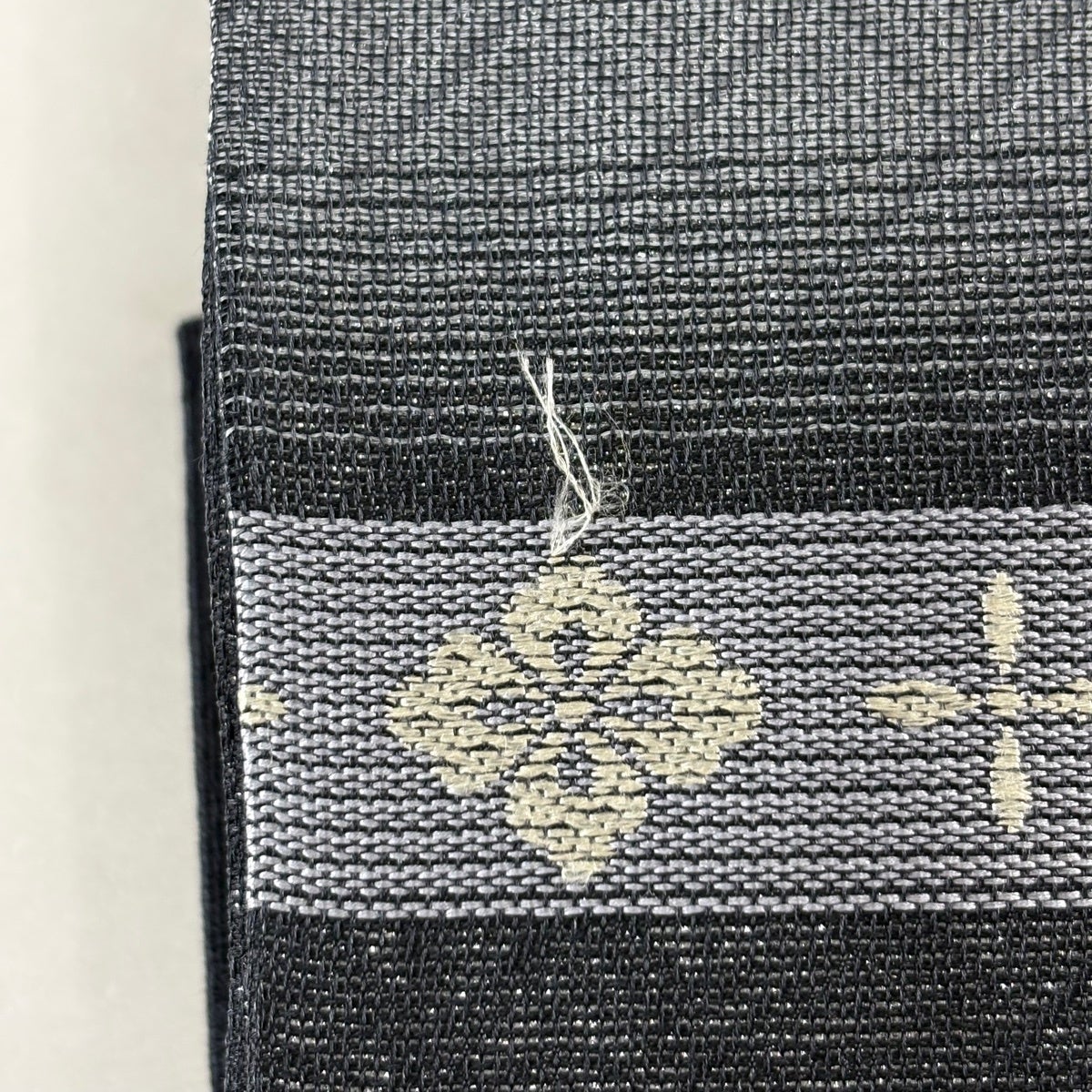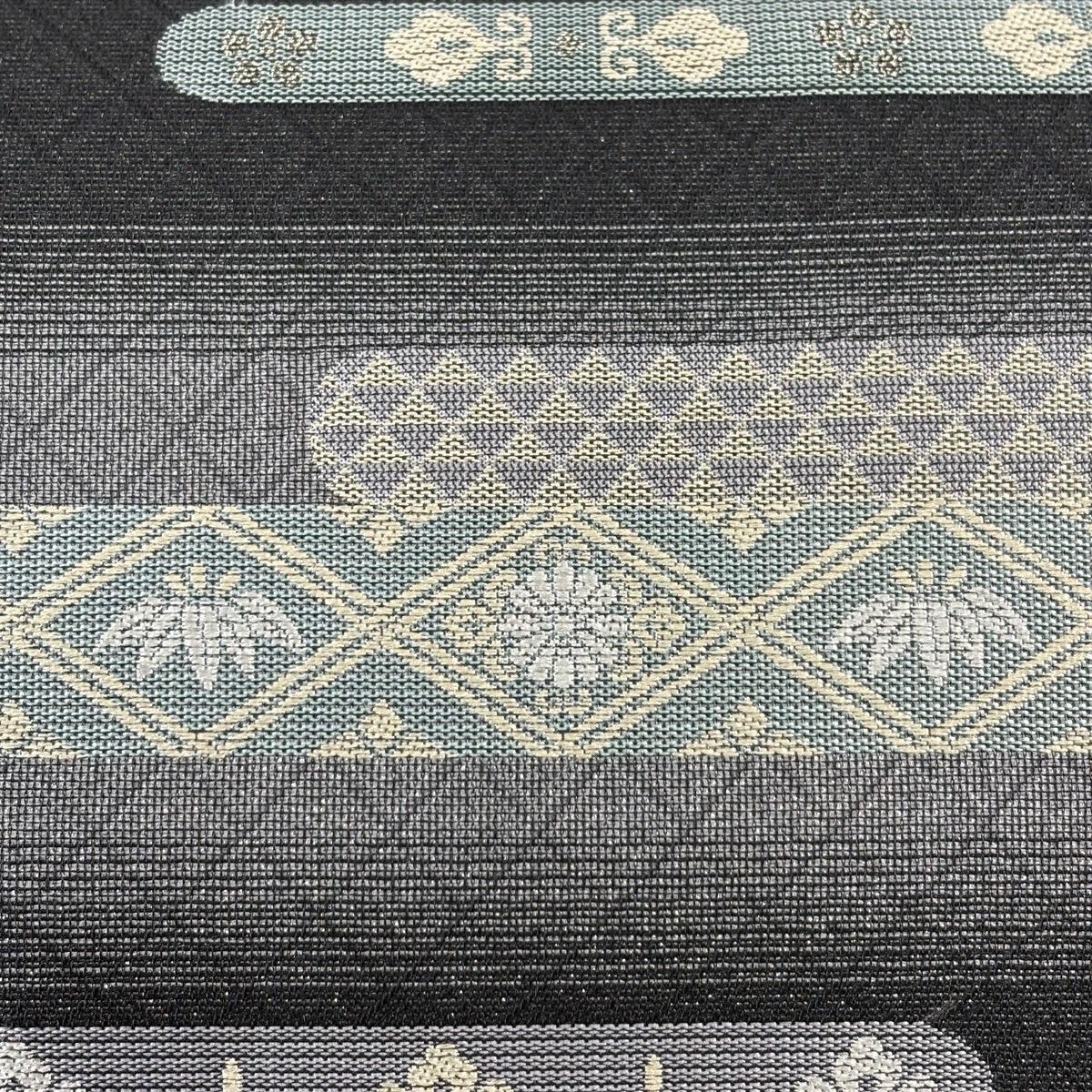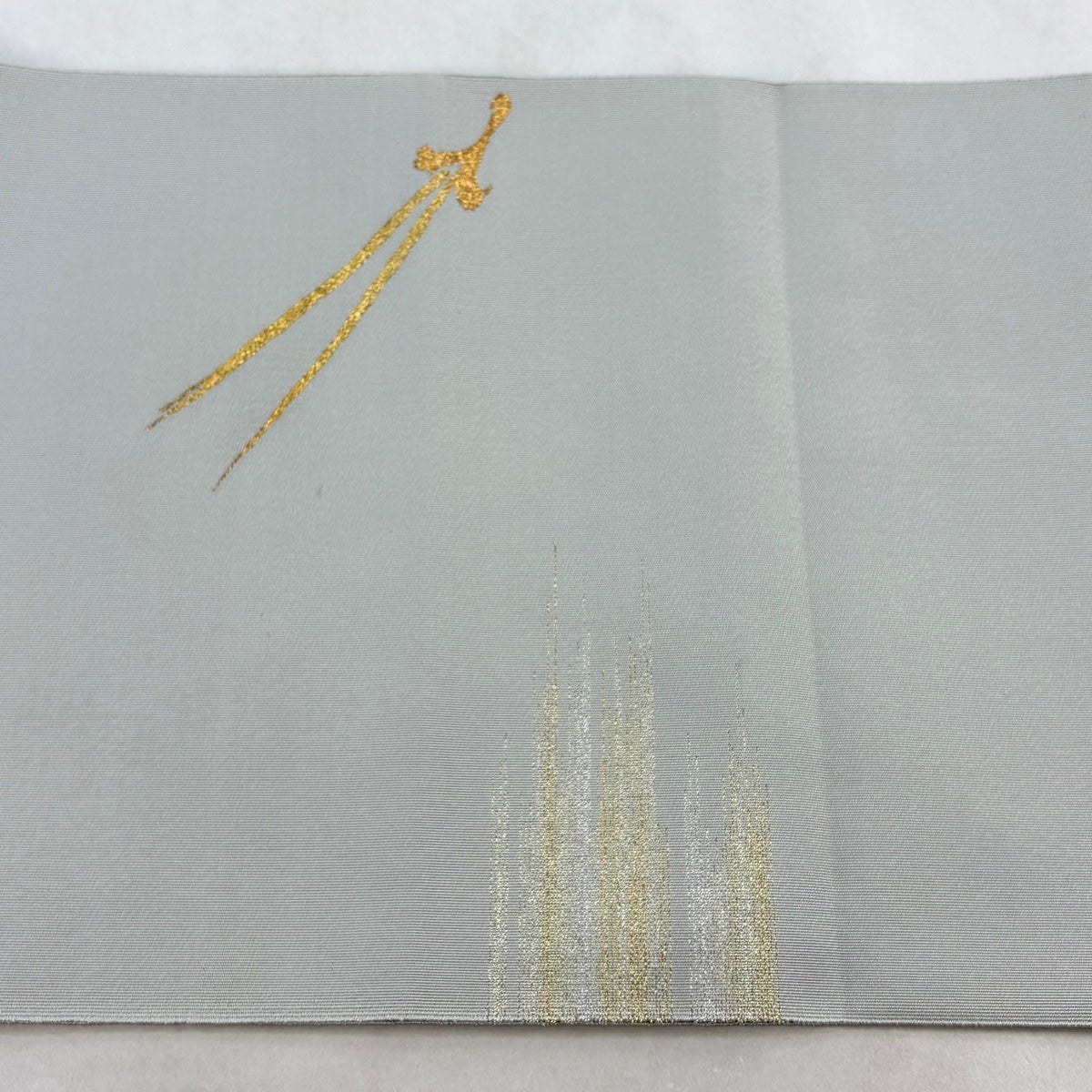 袋帯 名品 夏帯 段縞 草花 銀糸 箔 灰色 六通 正絹