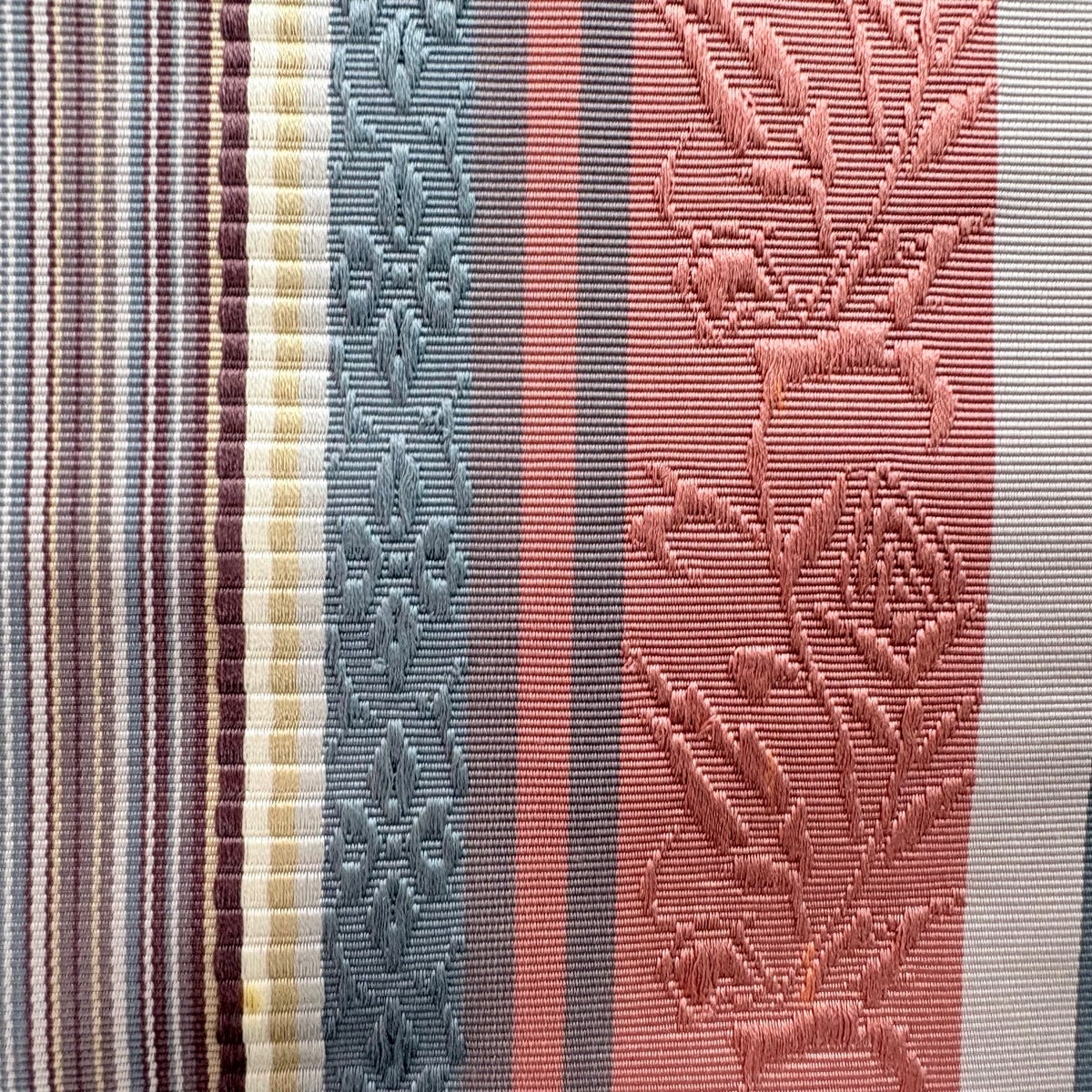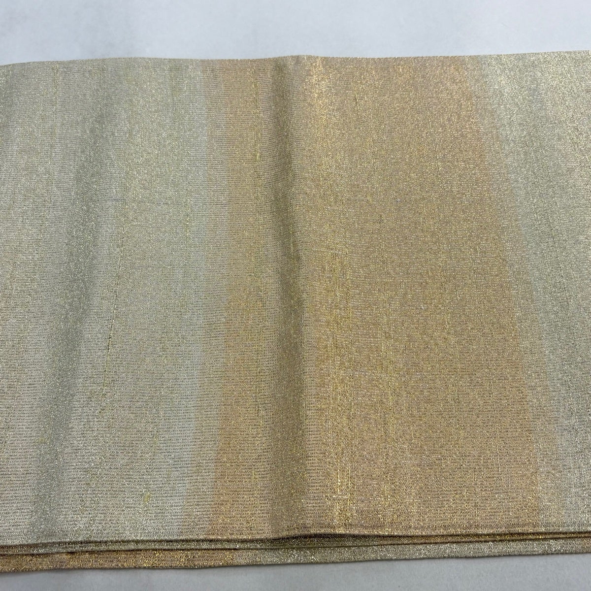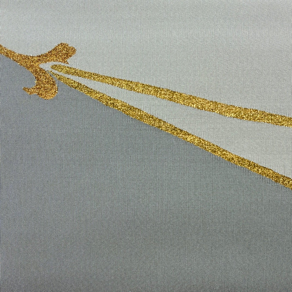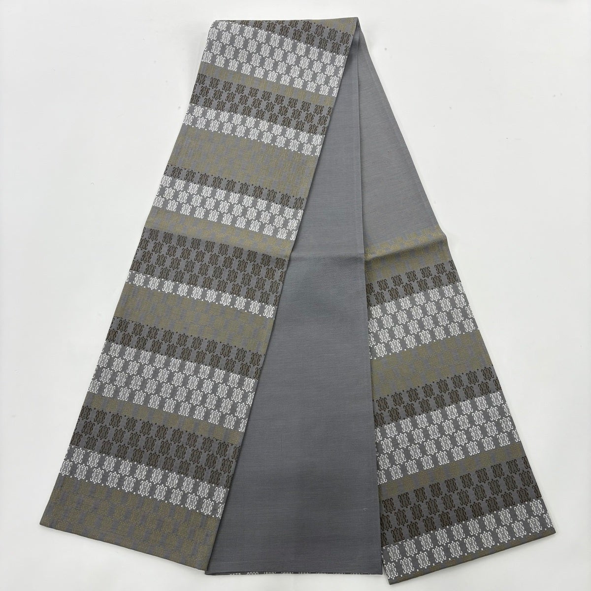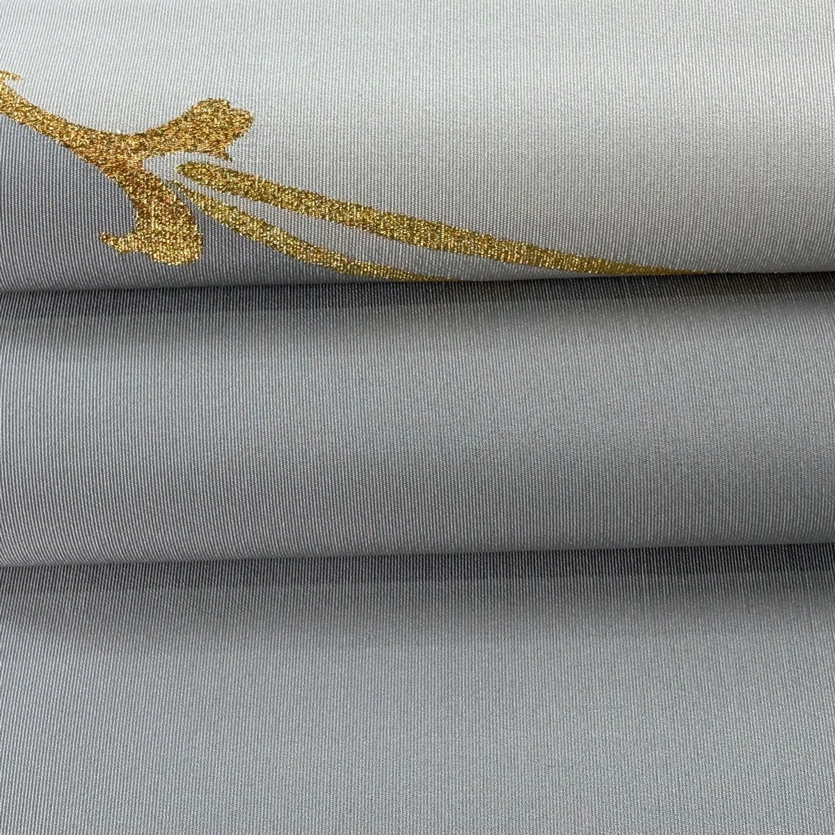 袋帯 名品 夏帯 段縞 草花 銀糸 箔 灰色 六通 正絹