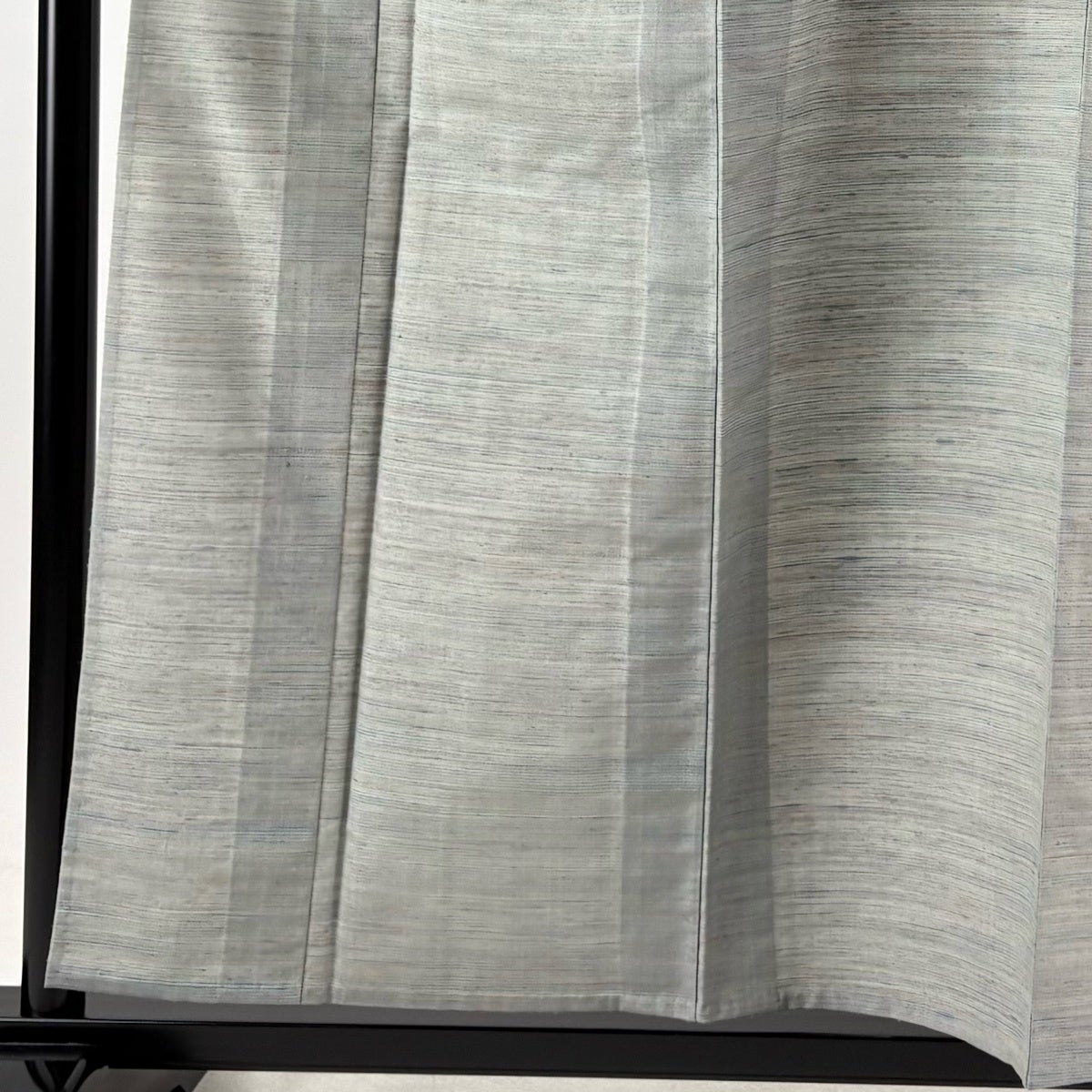 紬 身丈157.5cm 裄丈62cm S 単衣 新田秀次 落款あり 横縞 灰緑 正絹 逸品 一つ紋