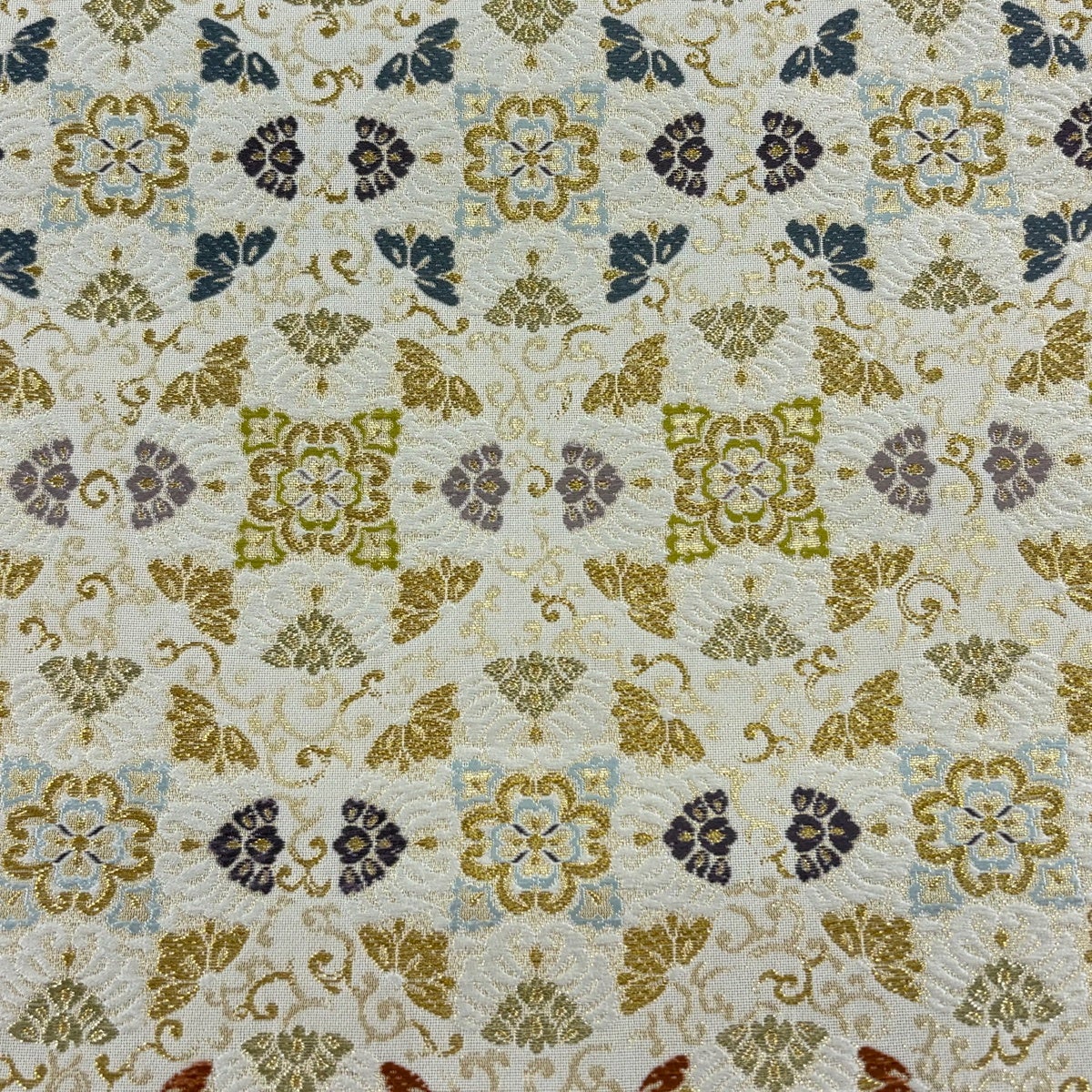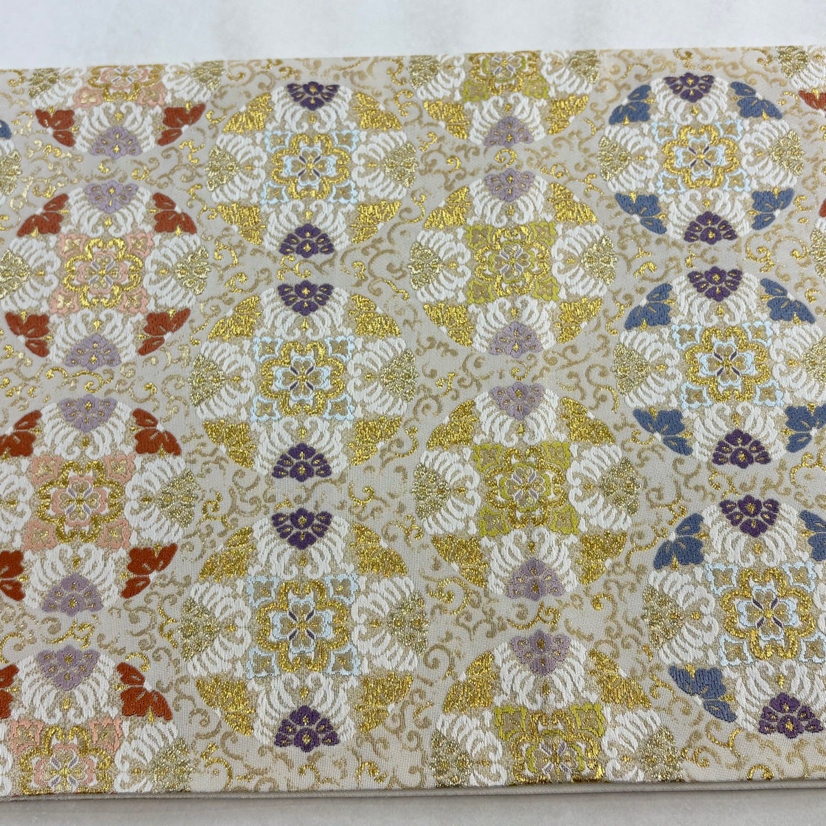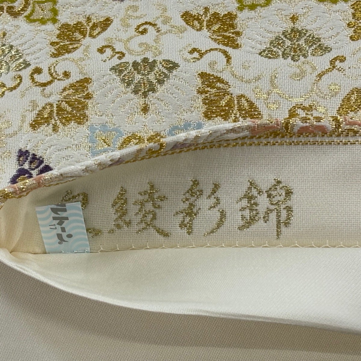 【美品】 袋帯 逸品 皇綾彩錦 華文 草花 唐織 金糸 クリーム 六通 正絹