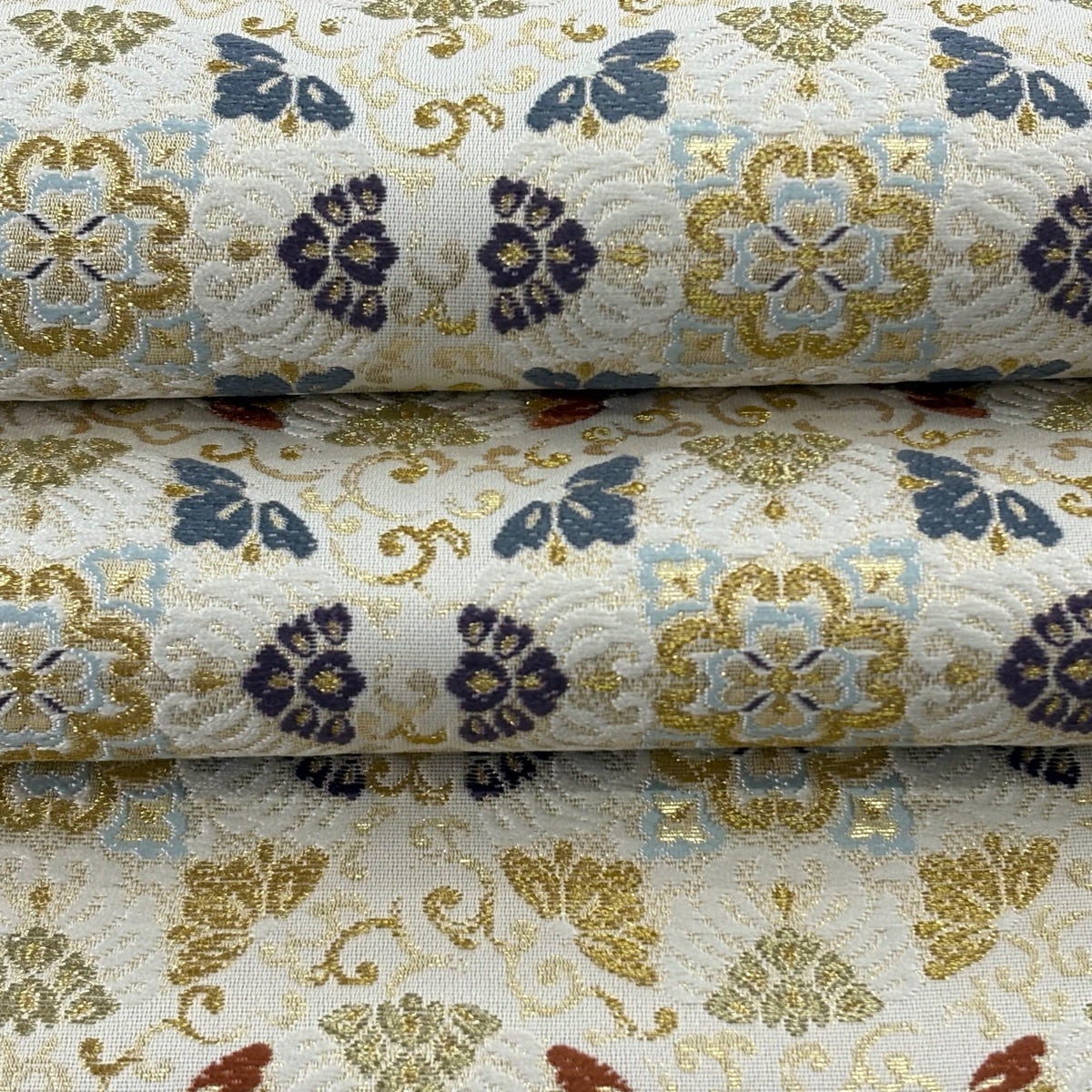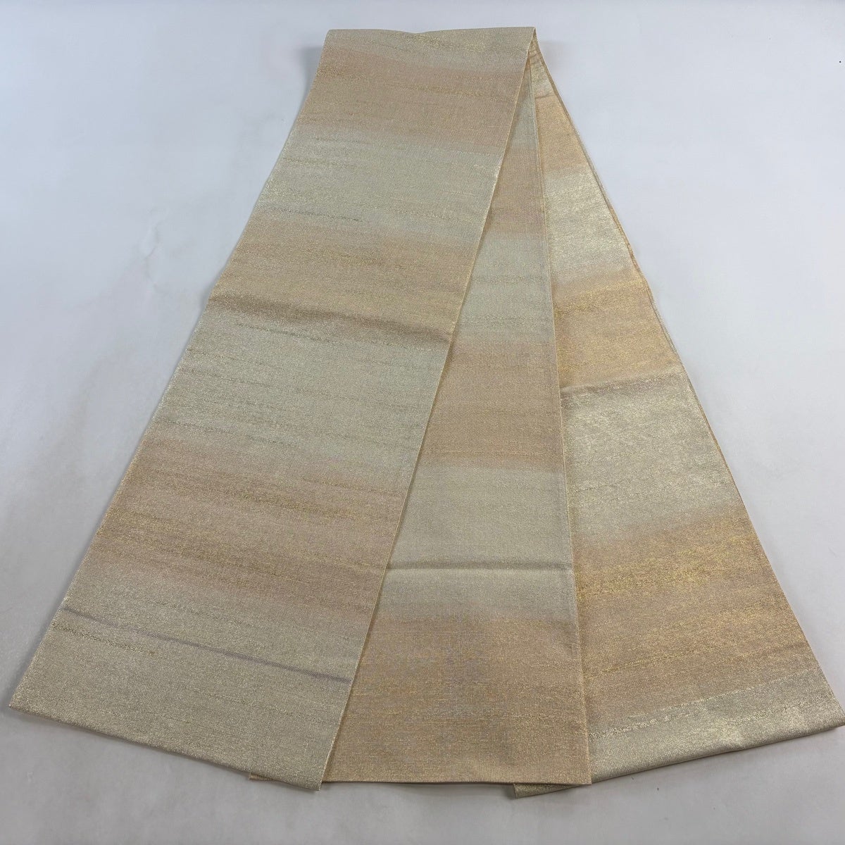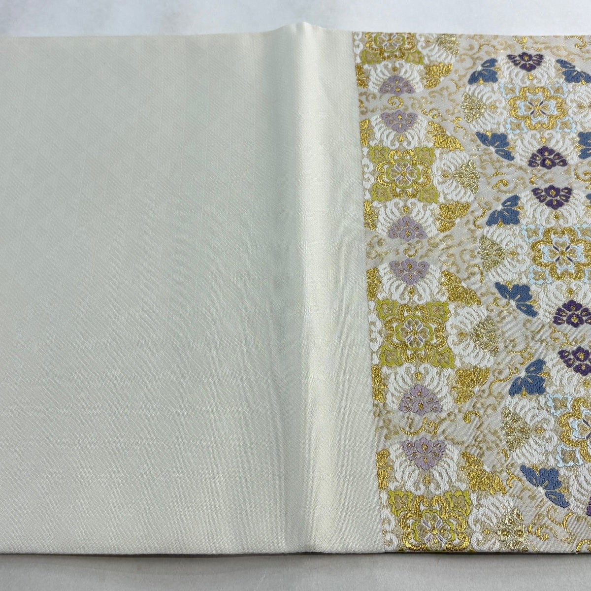 【美品】 袋帯 逸品 皇綾彩錦 華文 草花 唐織 金糸 クリーム 六通 正絹