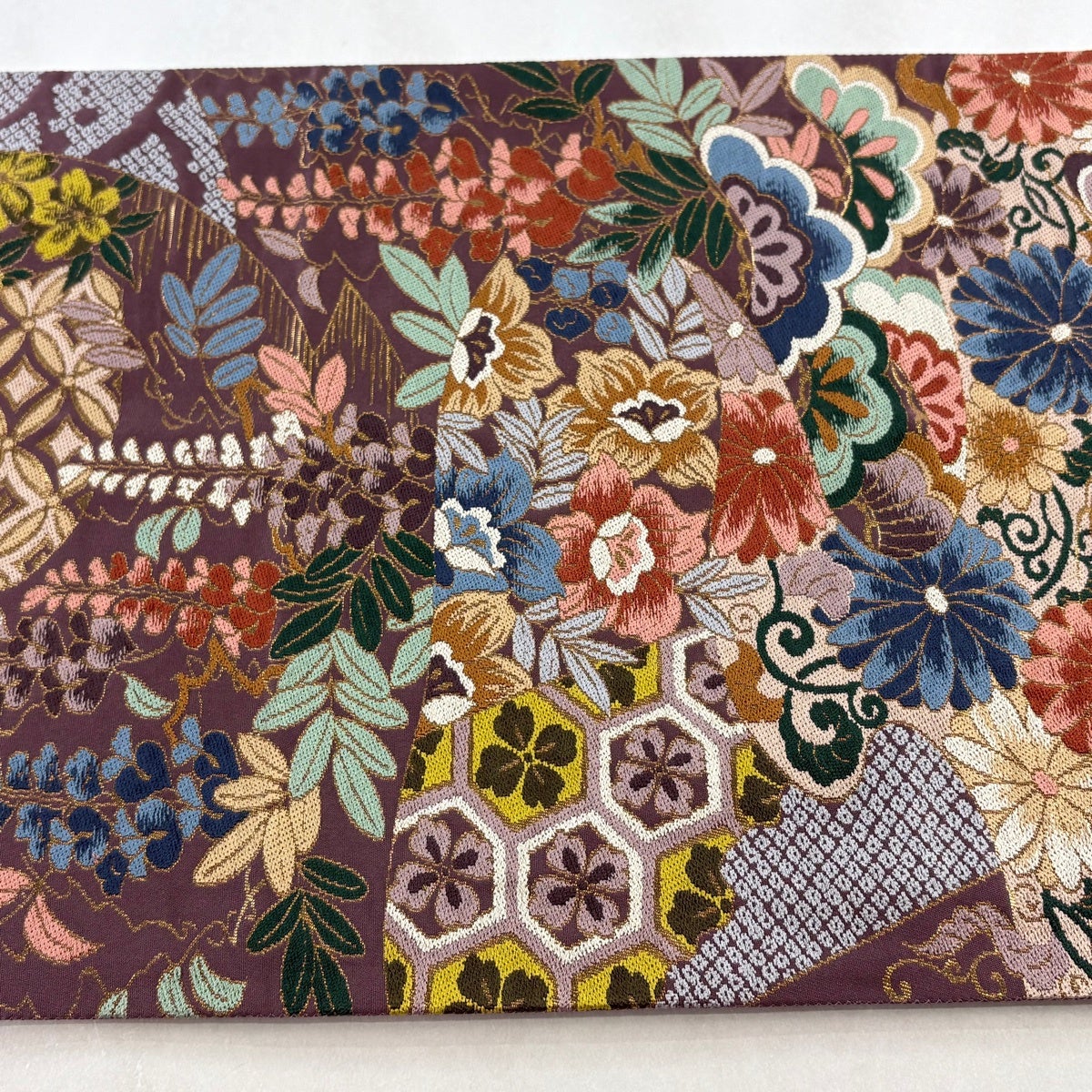 【美品】 袋帯 逸品 誉田屋源兵衛 落款あり 七彩佐賀千菱 菱 菱格子 箔 灰紫 お太鼓柄 正絹