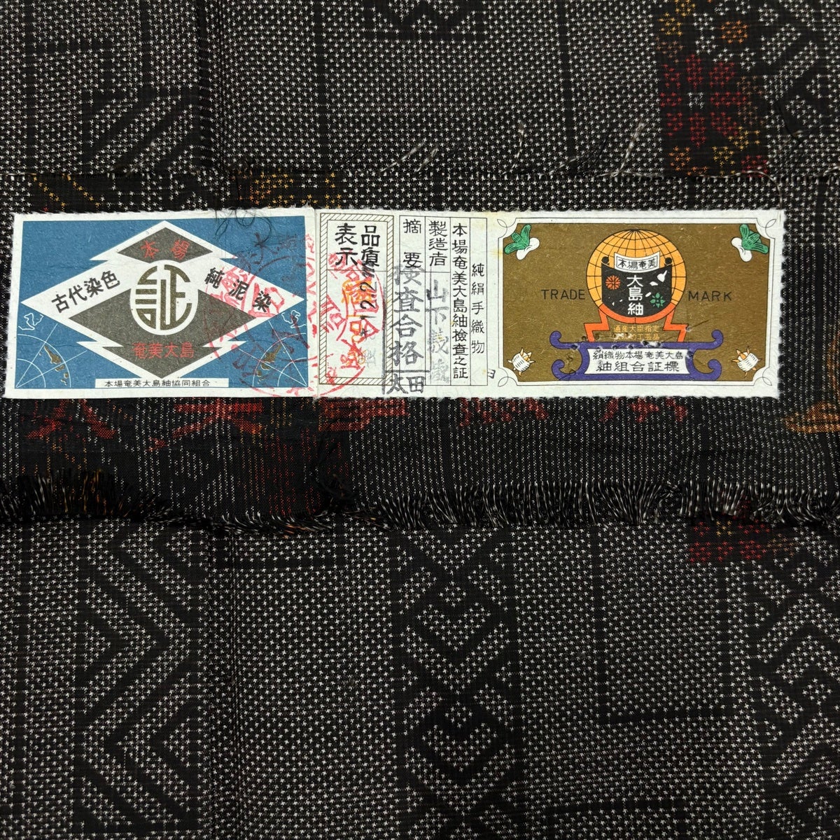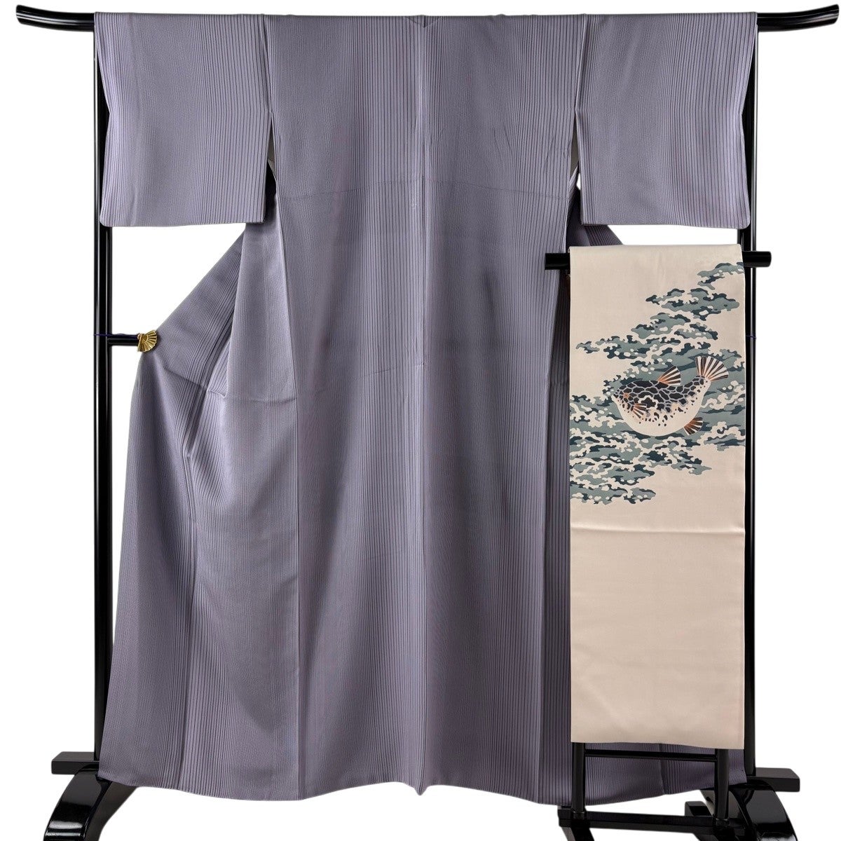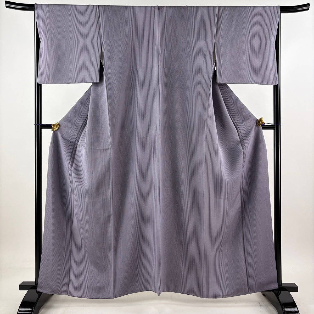 結城紬 身丈155cm 裄丈63cm S 単衣 本場結城紬 奥順 証紙あり 色紙 亀甲絣 灰紫 正絹 逸品