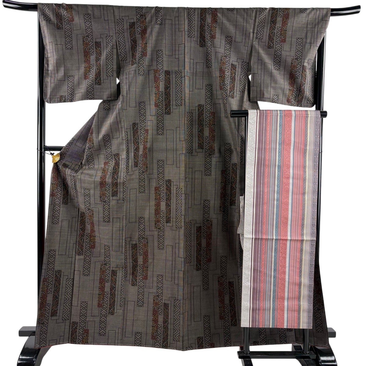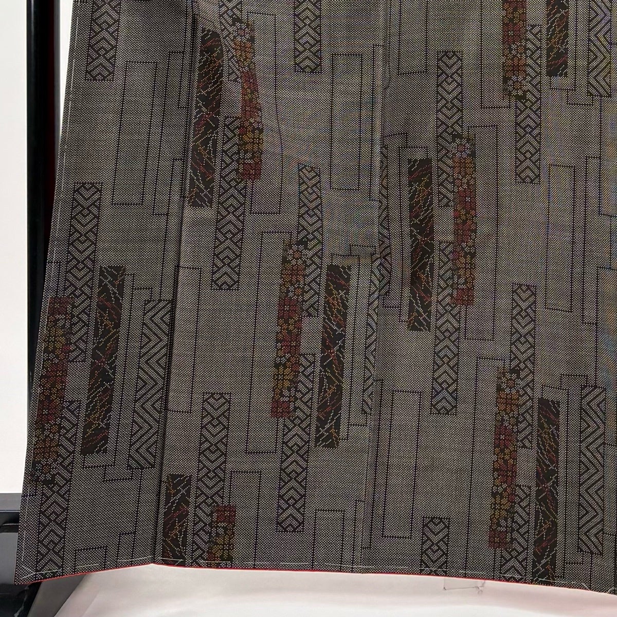 お召 身丈164cm 裄丈66.5cm M 単衣 番傘 灰色 正絹 逸品