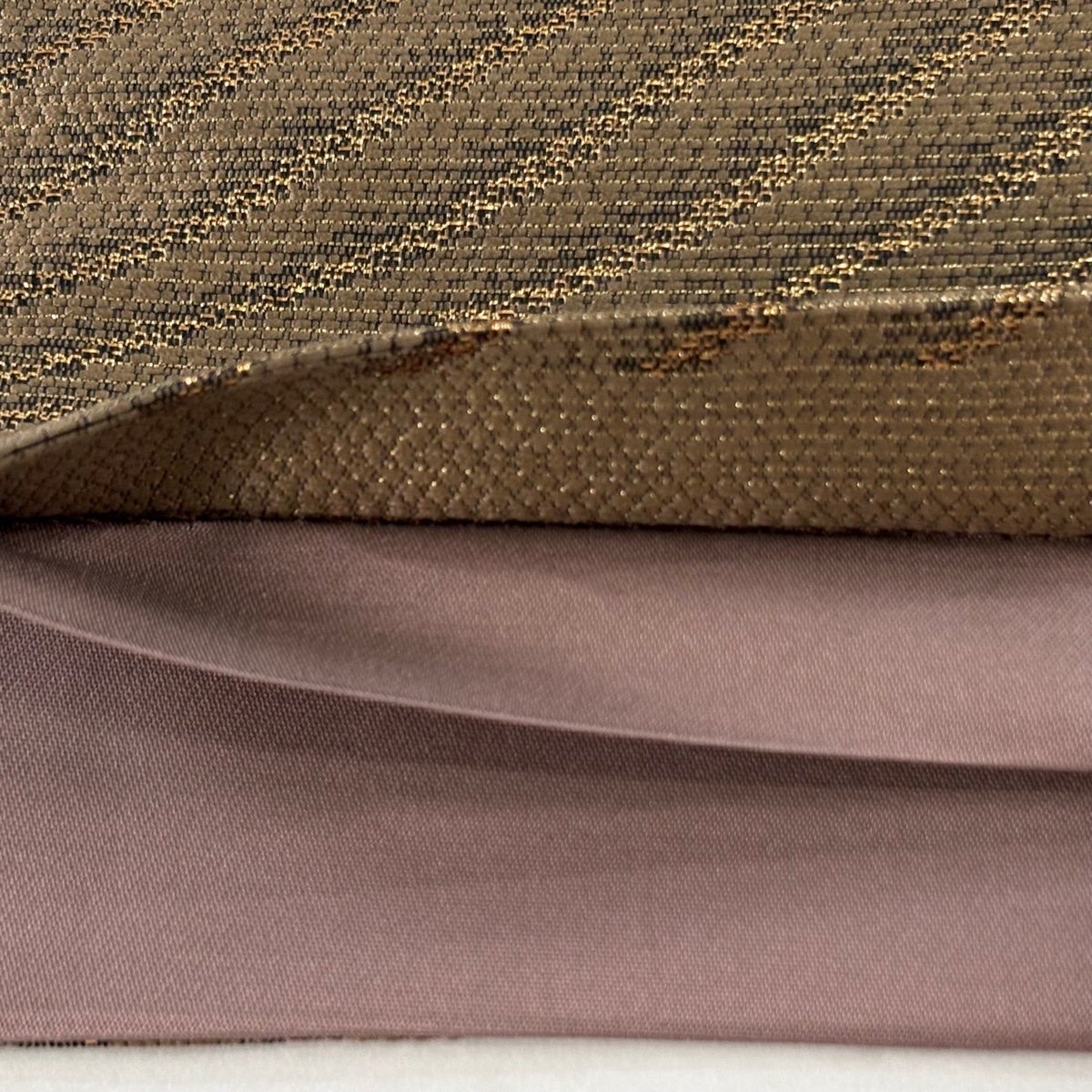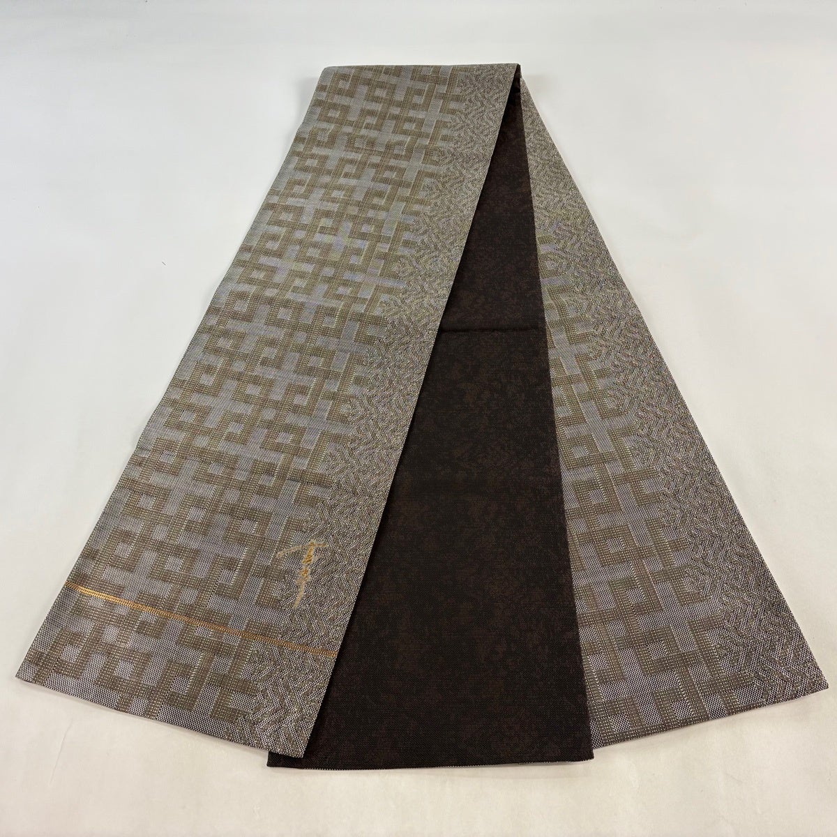 【美品】 袋帯 逸品 証紙あり 博多織 幾何学 箔 薄茶色 六通 正絹