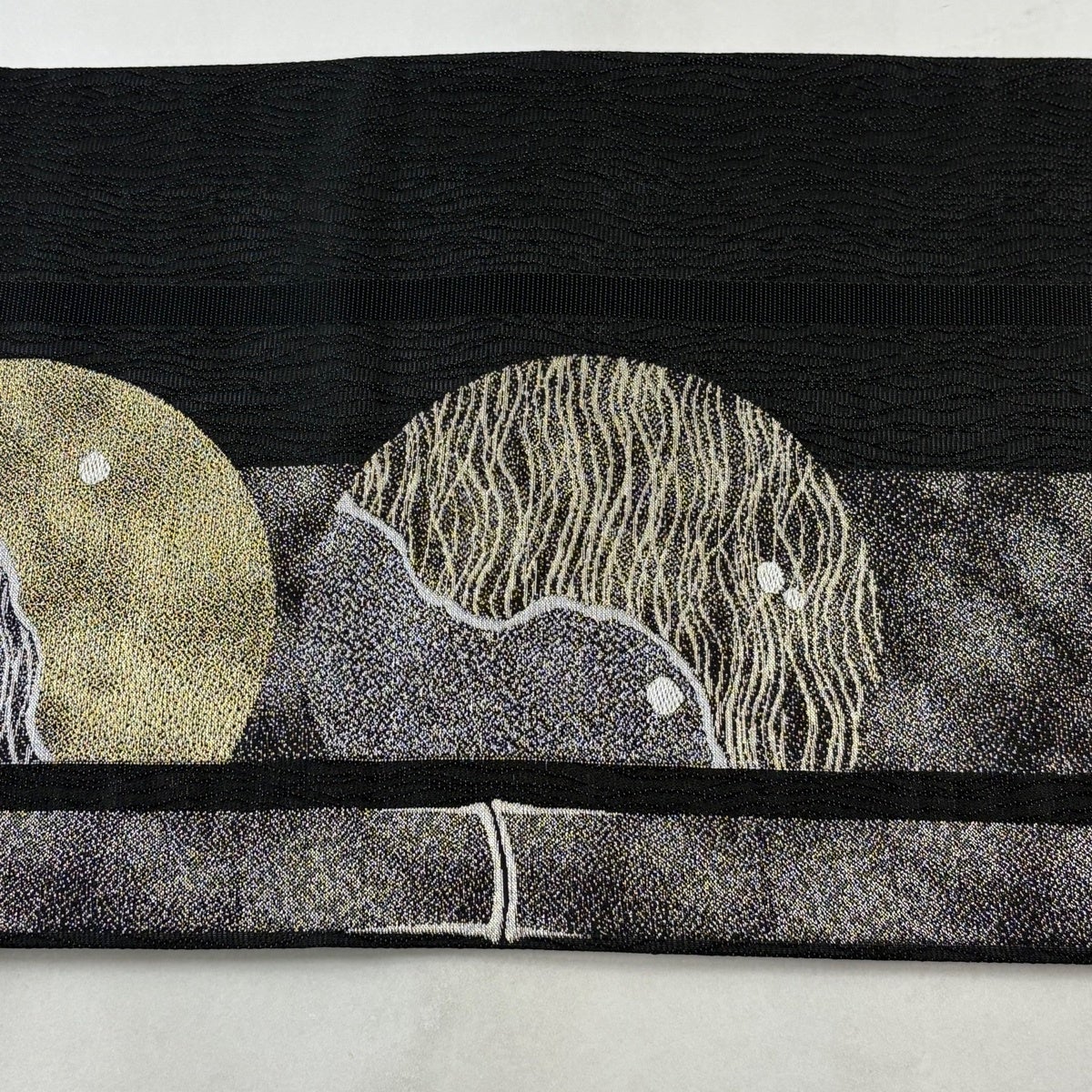 【美品】 袋帯 名品 夏帯 絽 月 竹 金銀糸 箔 黒 六通 正絹