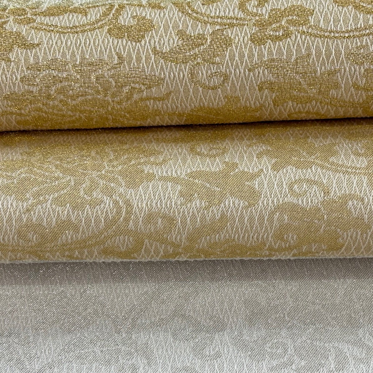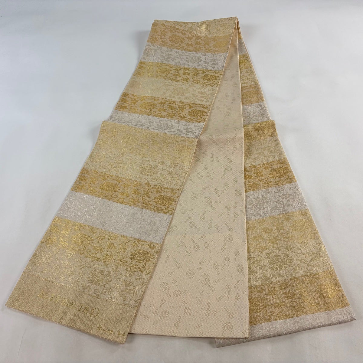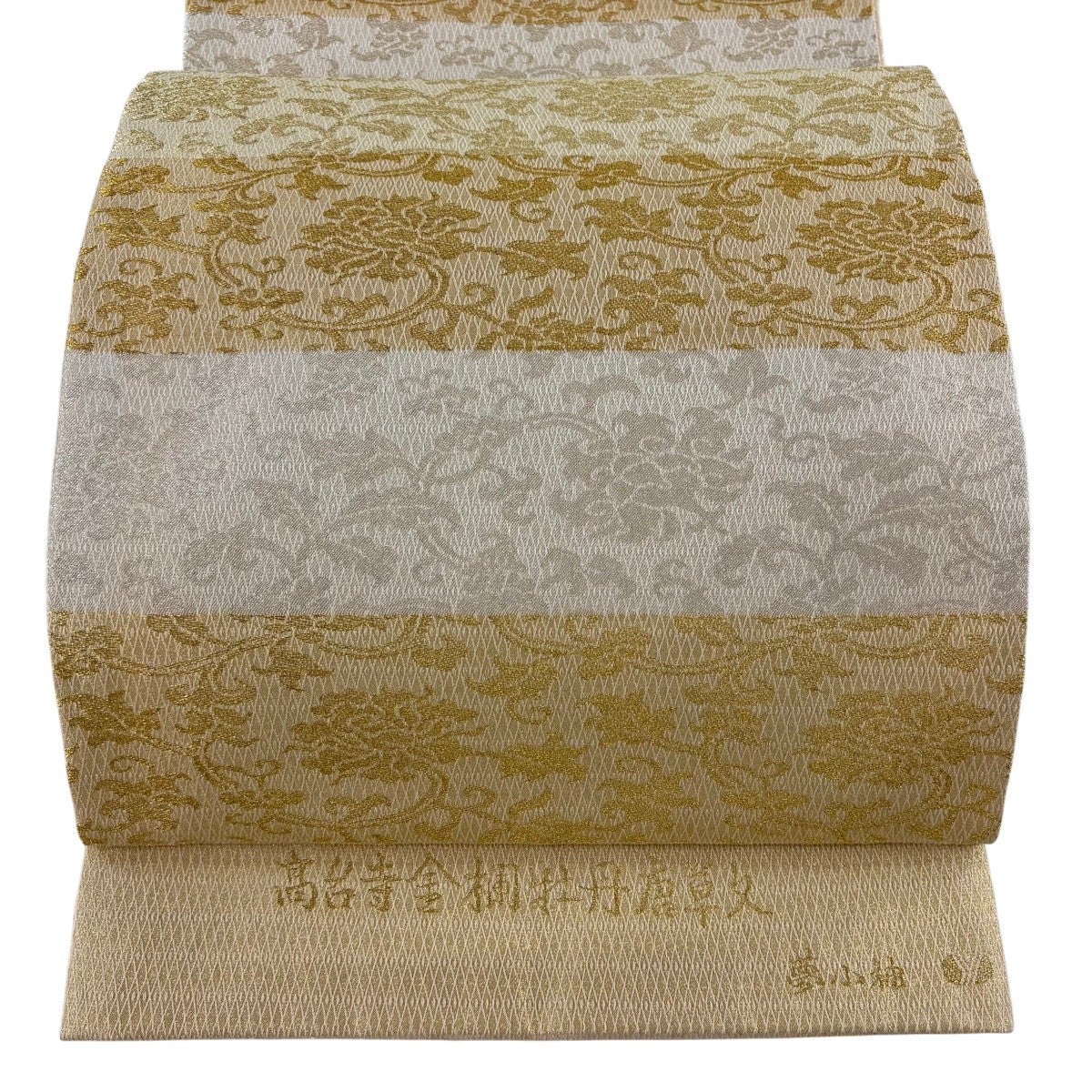 【美品】 袋帯 逸品 山口美術織物 夏帯 高台寺金欄牡丹唐草文 夢小袖 横段 草花 金銀糸 金色 全通 正絹