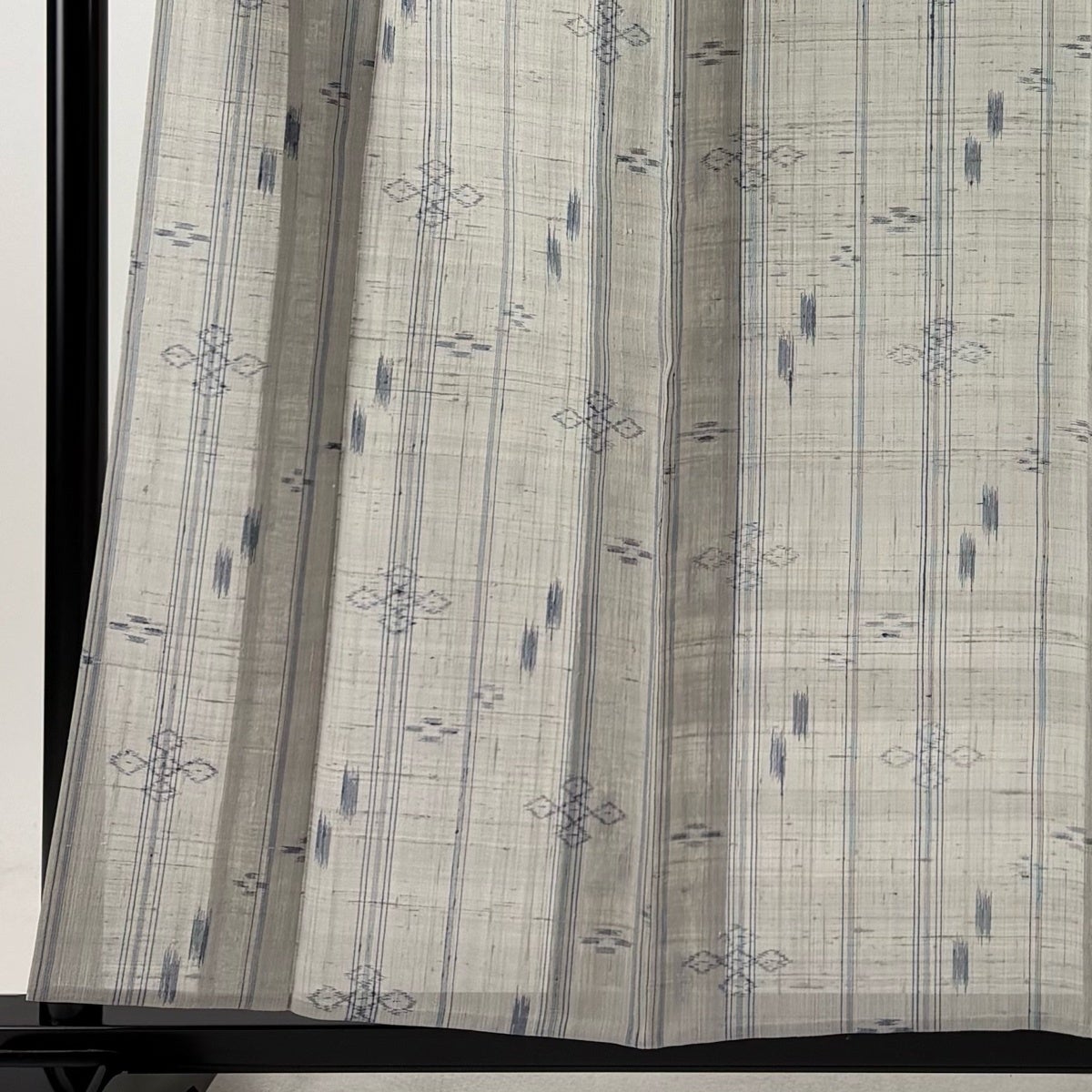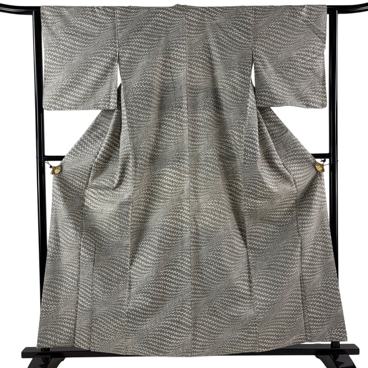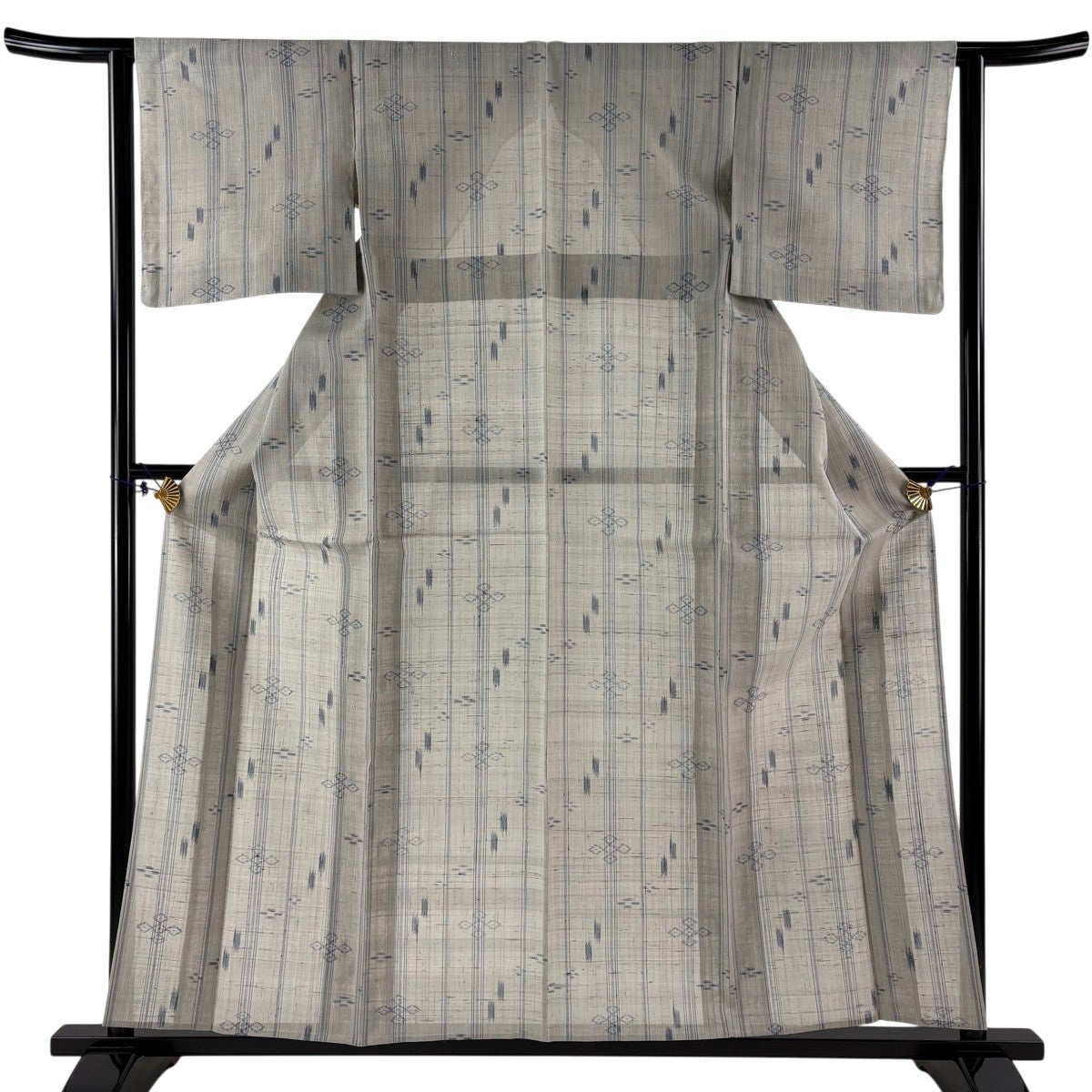 【美品】 紬 身丈159cm 裄丈62.5cm S 薄物 絹芭蕉 夏紬 証紙あり 縞 幾何学模様 灰色 正絹 逸品