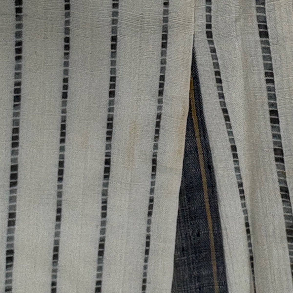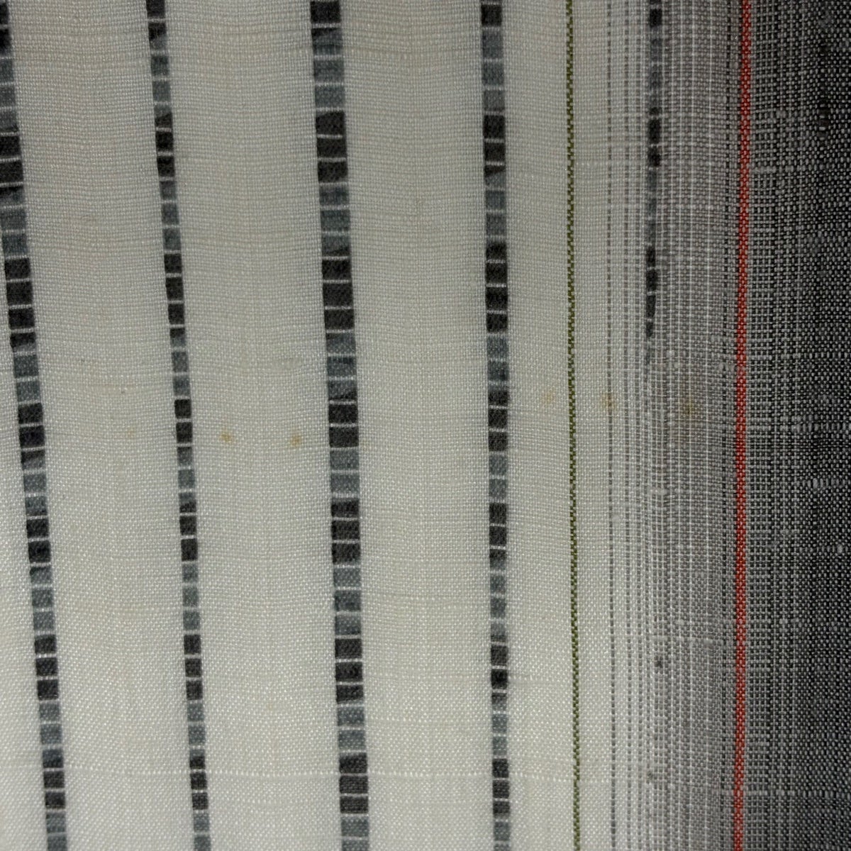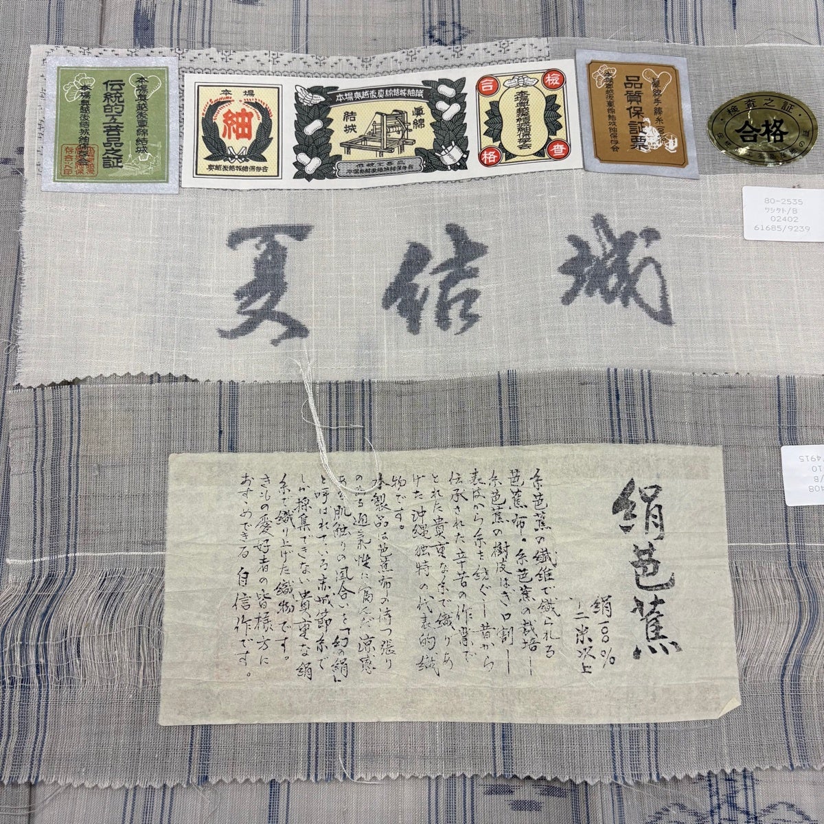 【美品】 紬 身丈159cm 裄丈62.5cm S 薄物 絹芭蕉 夏紬 証紙あり 縞 幾何学模様 灰色 正絹 逸品