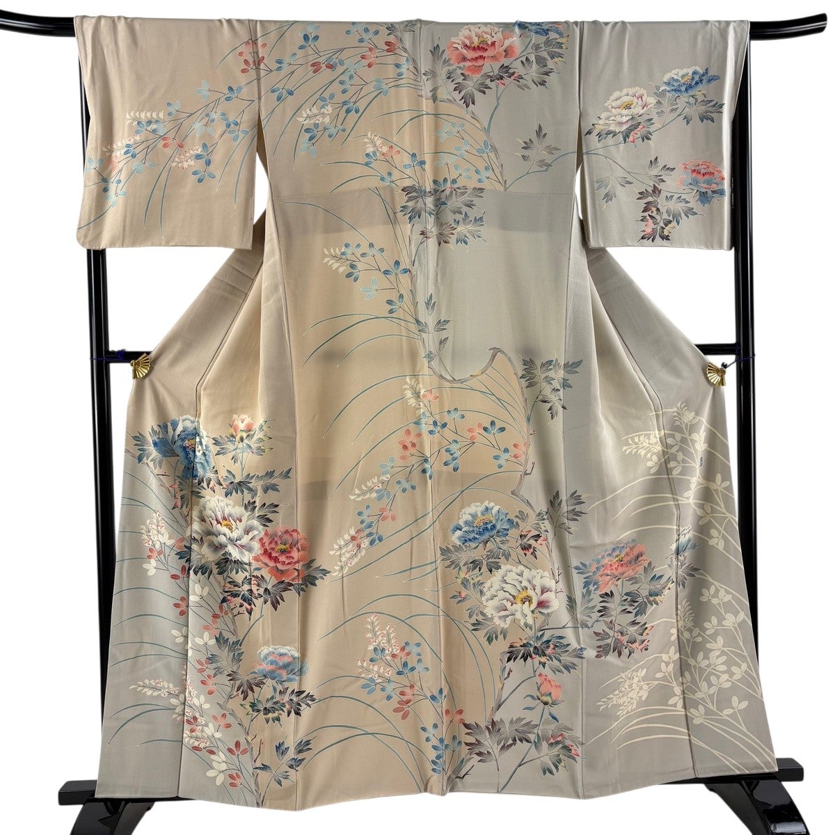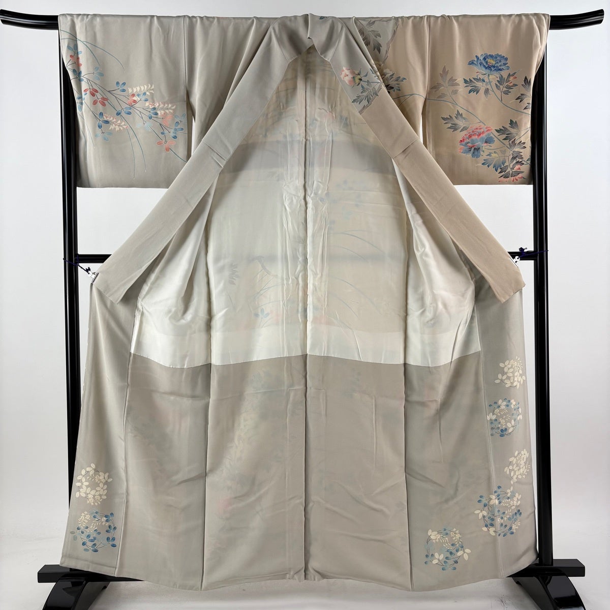 訪問着 身丈160cm 裄丈67.5cm L 袷 落款あり 枝花 萩 ベージュ 正絹 逸品