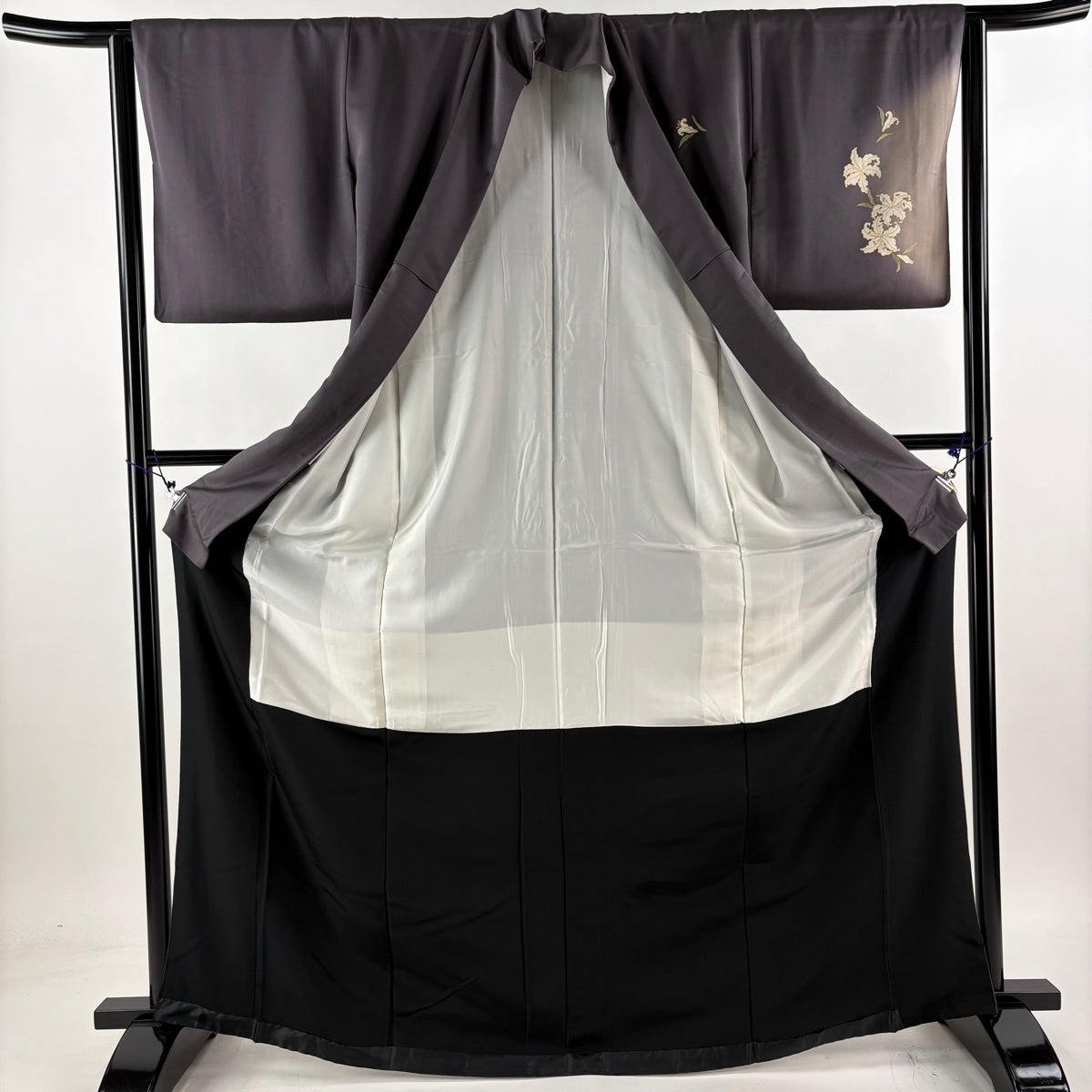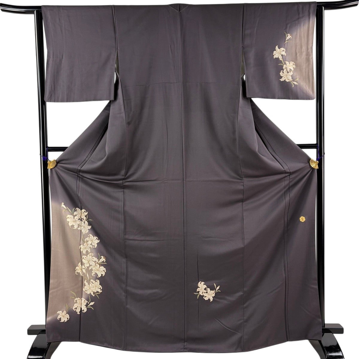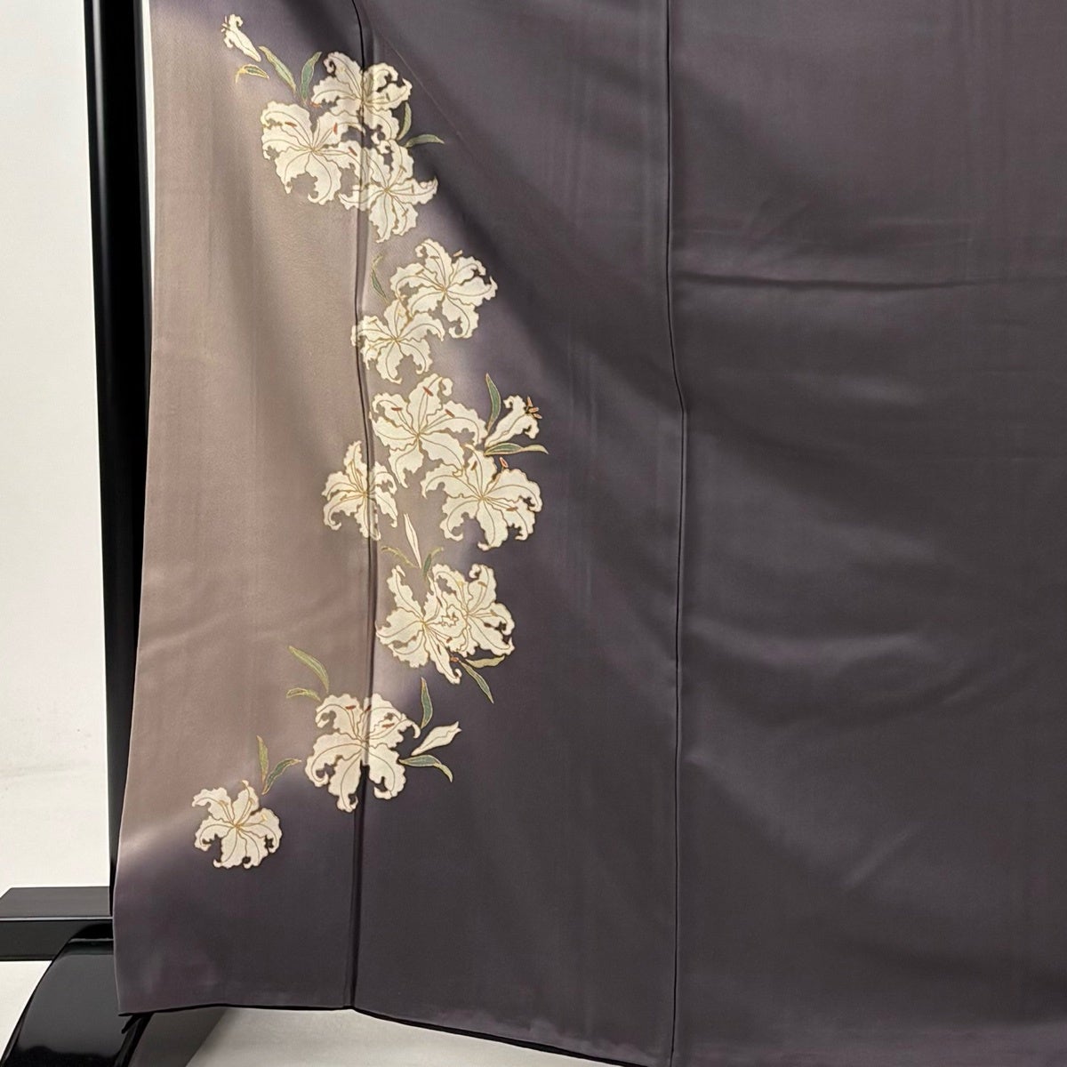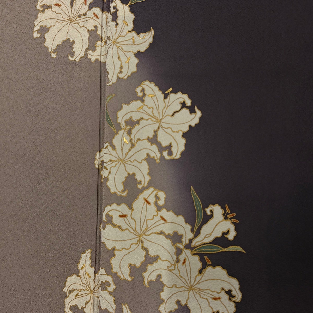 付下げ 身丈169cm 裄丈64cm M 袷 蒋雪英 落款あり 百合 金彩 ぼかし 灰紫 正絹 逸品