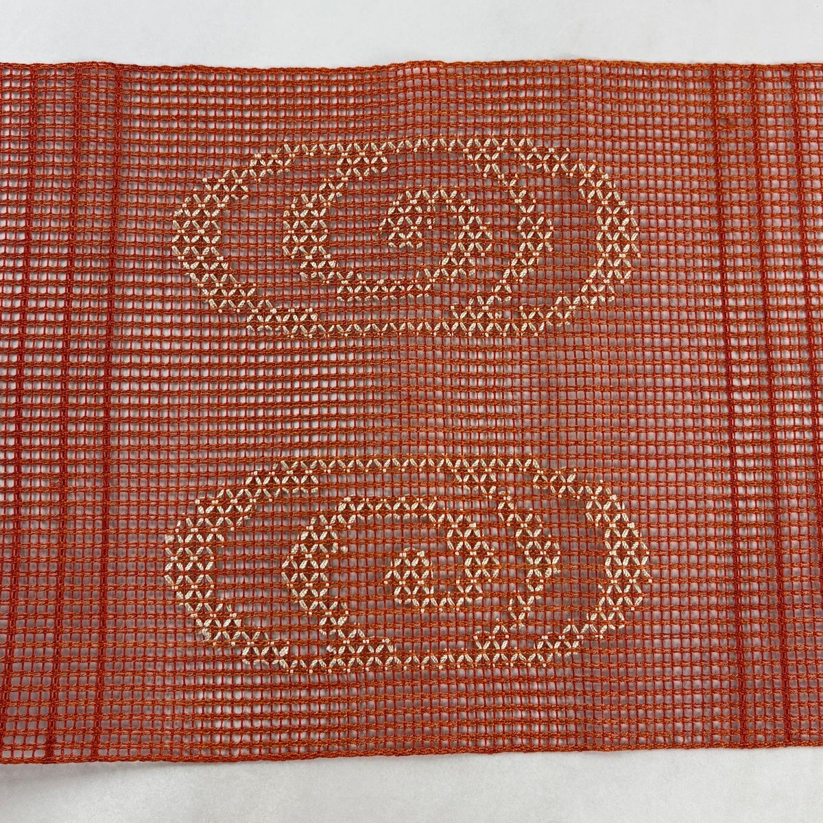 【美品】 袋帯 名品 夏帯 幾何学 金糸 箔 山吹色 お太鼓柄 正絹