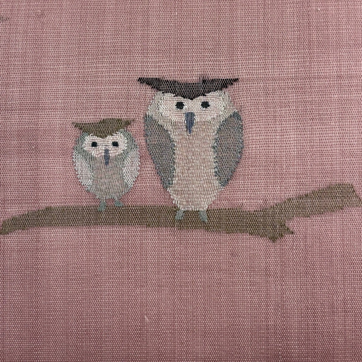 名古屋帯 逸品 落款あり 紬地 猫 クリーム 正絹