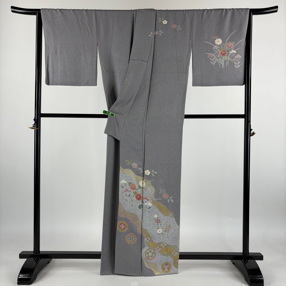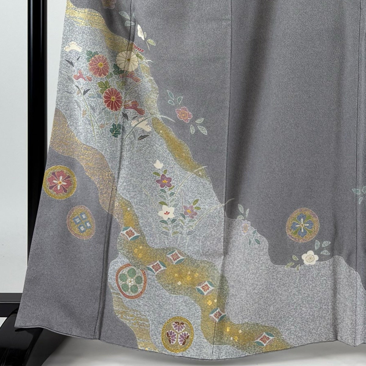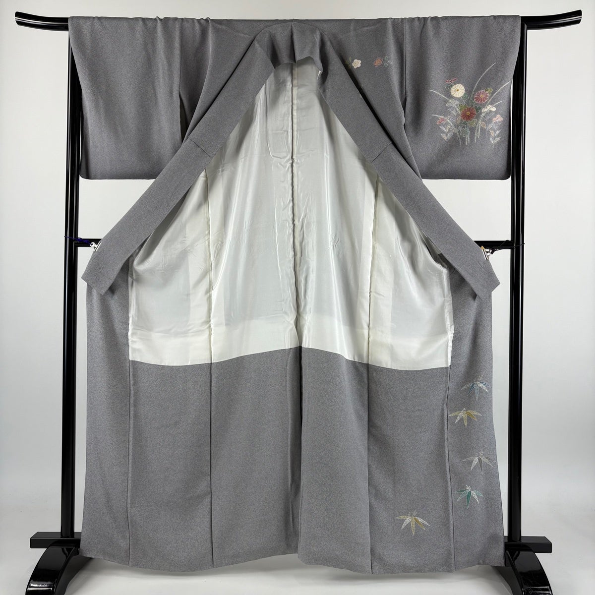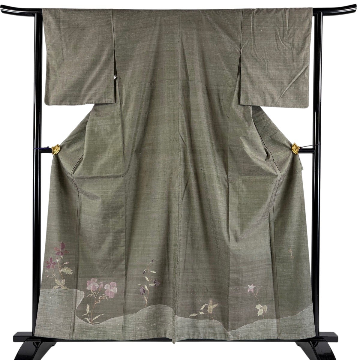 訪問着 身丈159cm 裄丈62cm S 袷 茶谷孝志 落款あり 草花 灰色 正絹 逸品