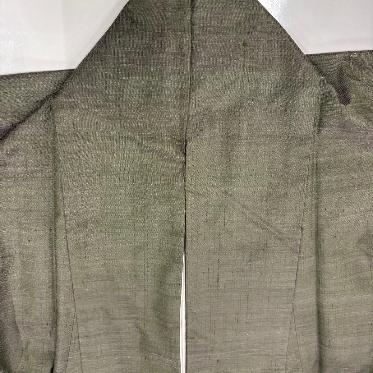 【美品】 色無地 身丈154.5cm 裄丈65.5cm M 袷 黄金繭 地紋 深緑 正絹 逸品