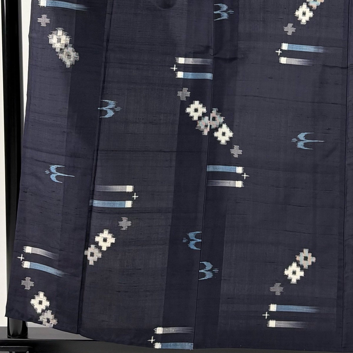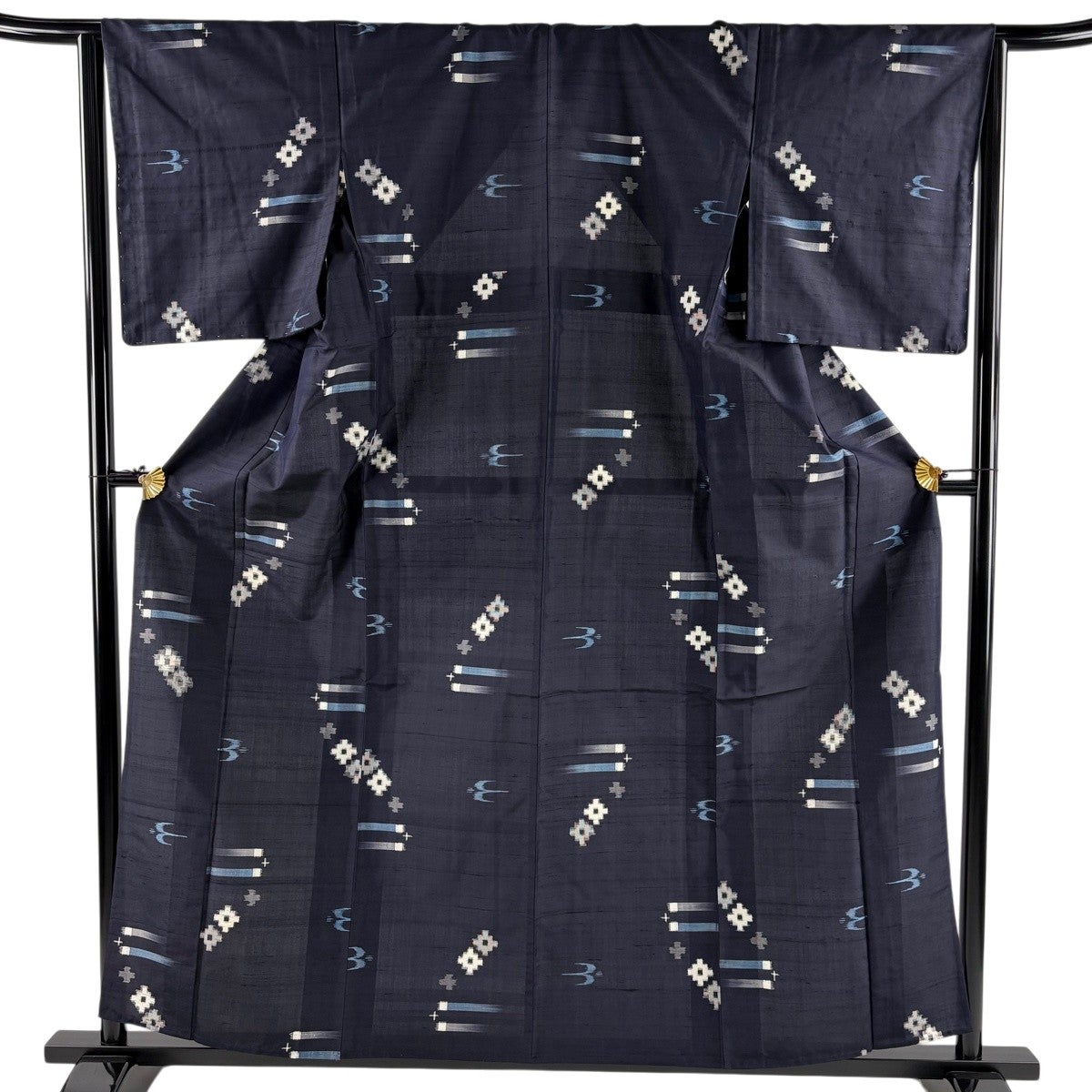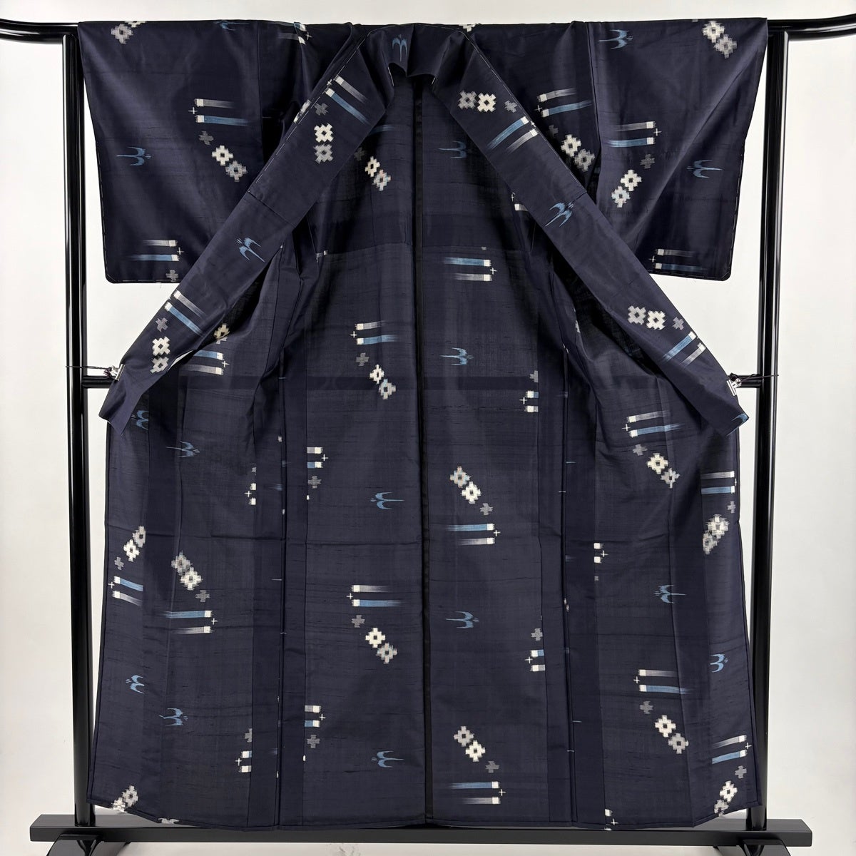 【美品】 紬 身丈158.5cm 裄丈64cm M 袷 燕 幾何学 濃紺 正絹 逸品