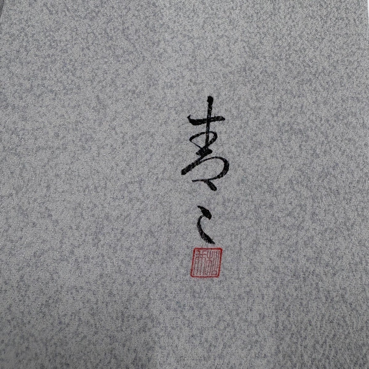 【美品】 お召 身丈154.5cm 裄丈65cm M 袷 背抜き仕立て 落款あり 幾何学模様 灰色 正絹 逸品