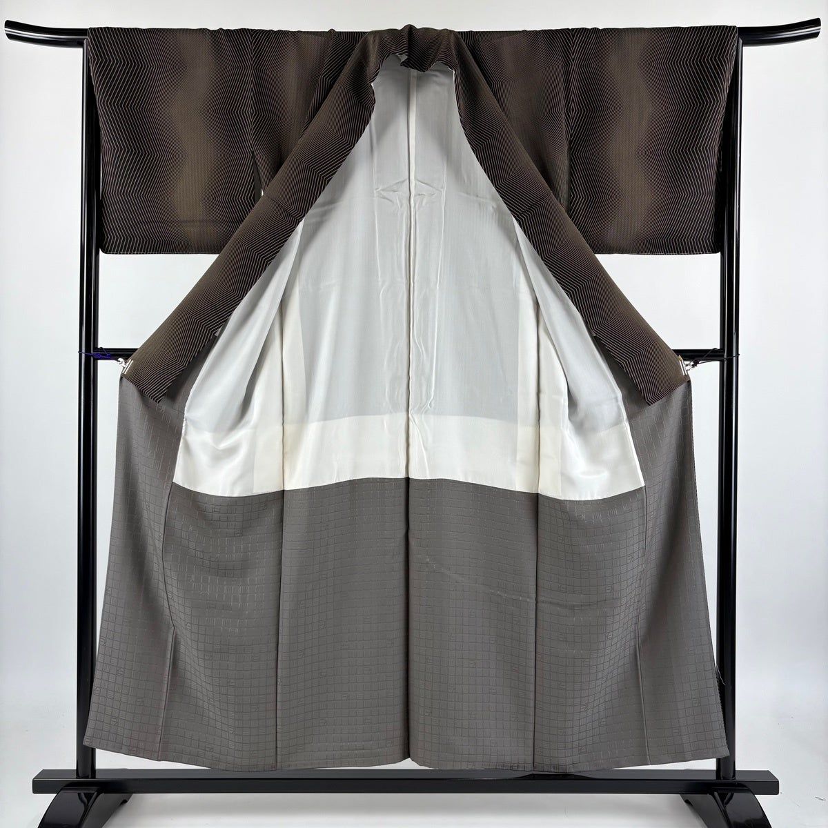 お召 身丈165cm 裄丈67.5cm L 袷 幾何学 灰色 正絹 逸品