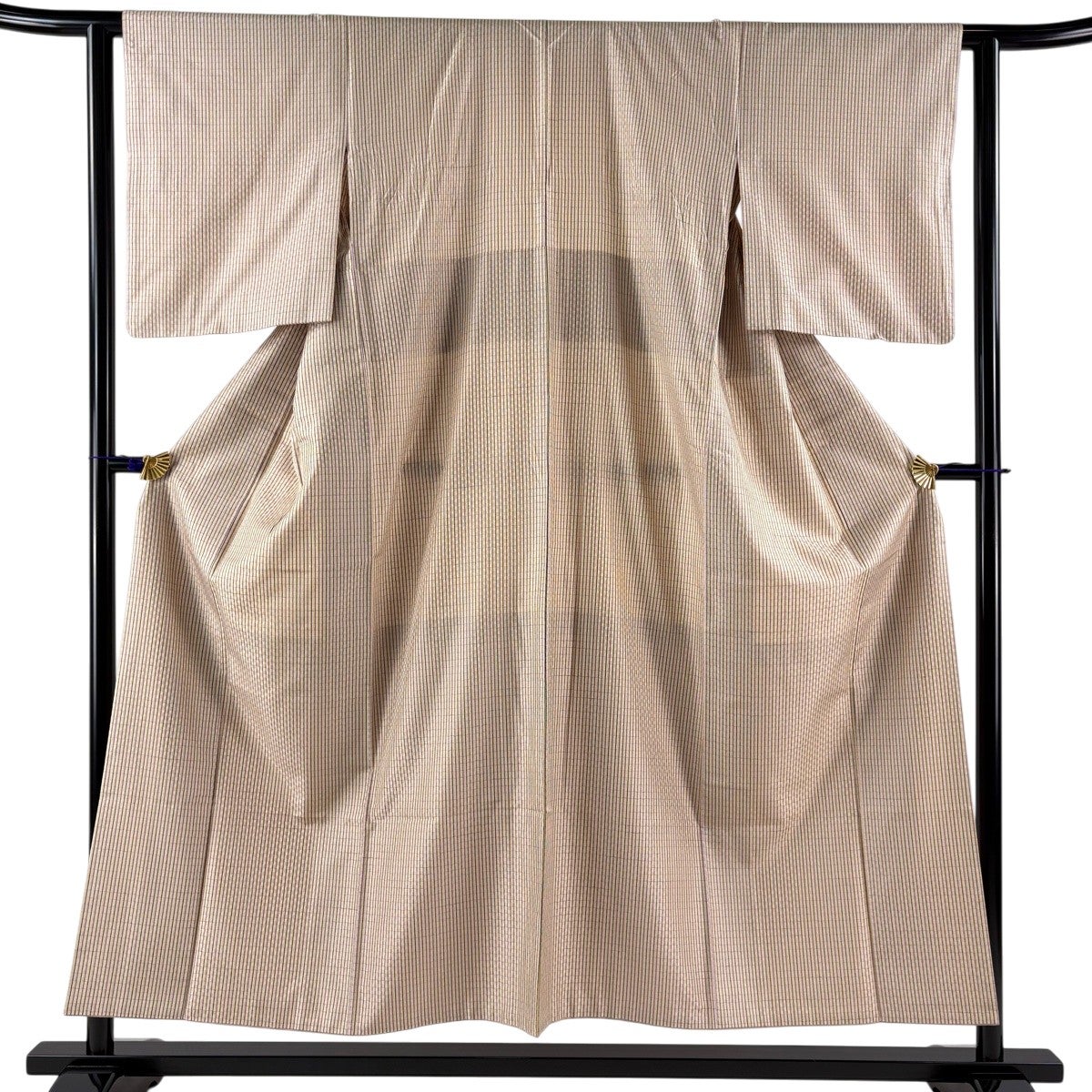紬 身丈154.5cm 裄丈63cm S 袷 格子 黄土色 正絹 逸品