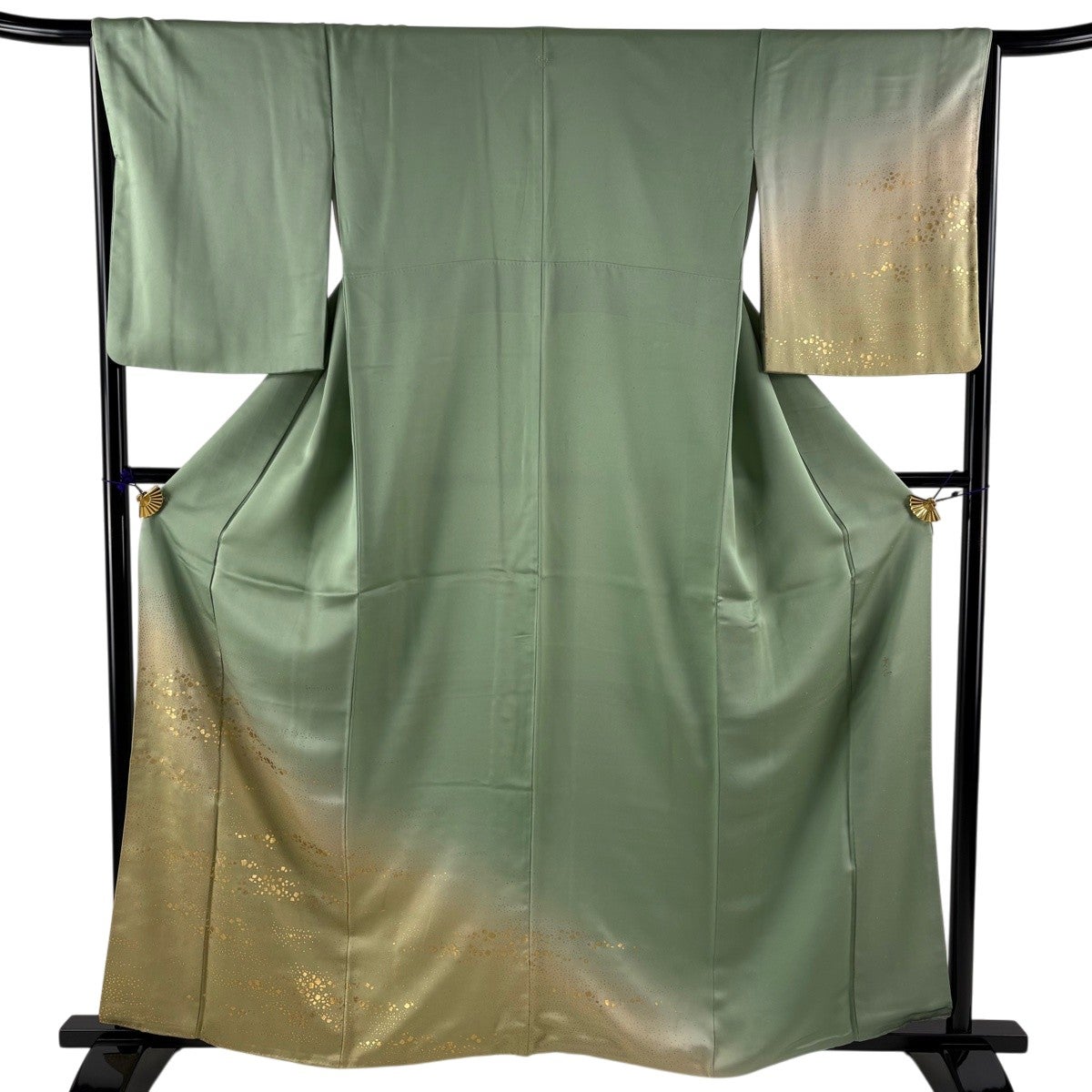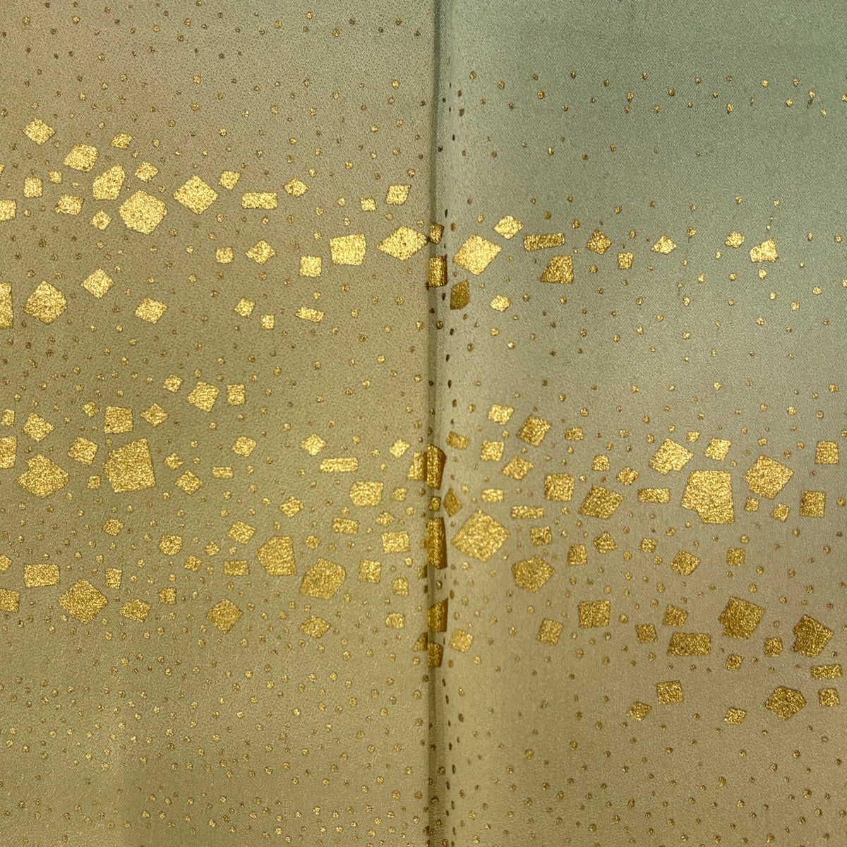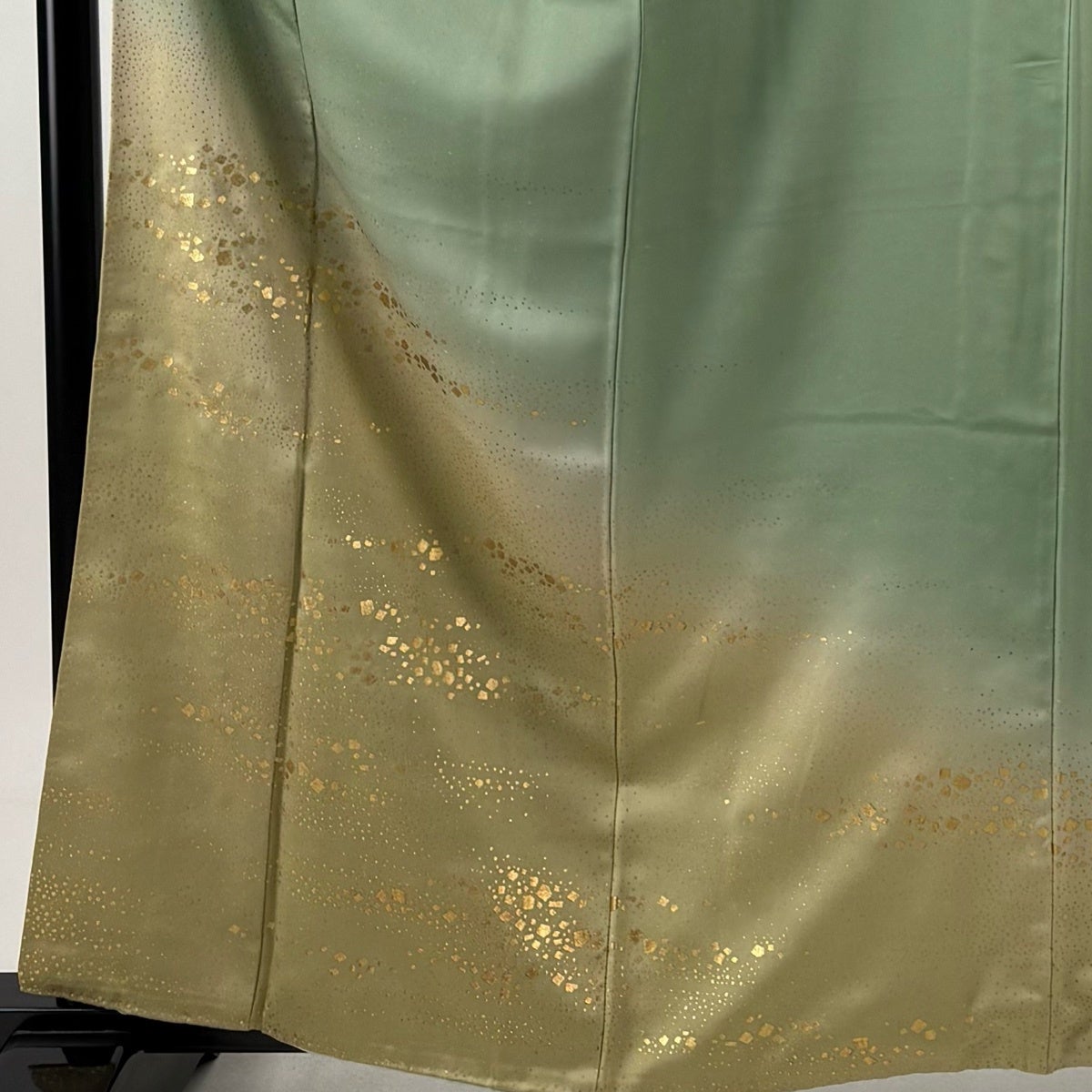 付下げ 身丈161.5cm 裄丈65cm M 袷 和田光正 落款あり 箔散らし 霞 金彩 ぼかし 薄緑 正絹 名品 一つ紋