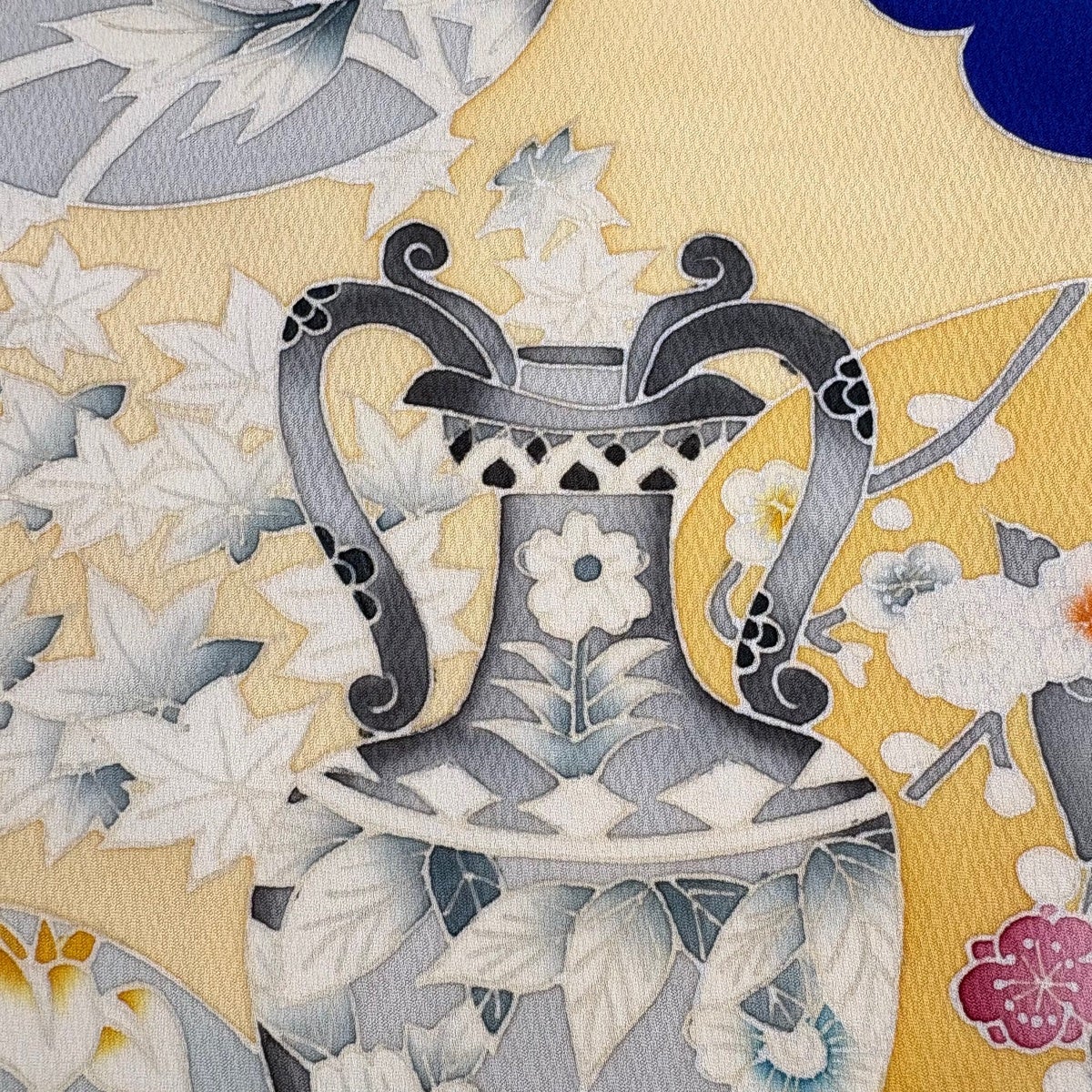 50%OFF 反物 秀品 付下げ 花器 草花 ぼかし 紺色 正絹 K50
