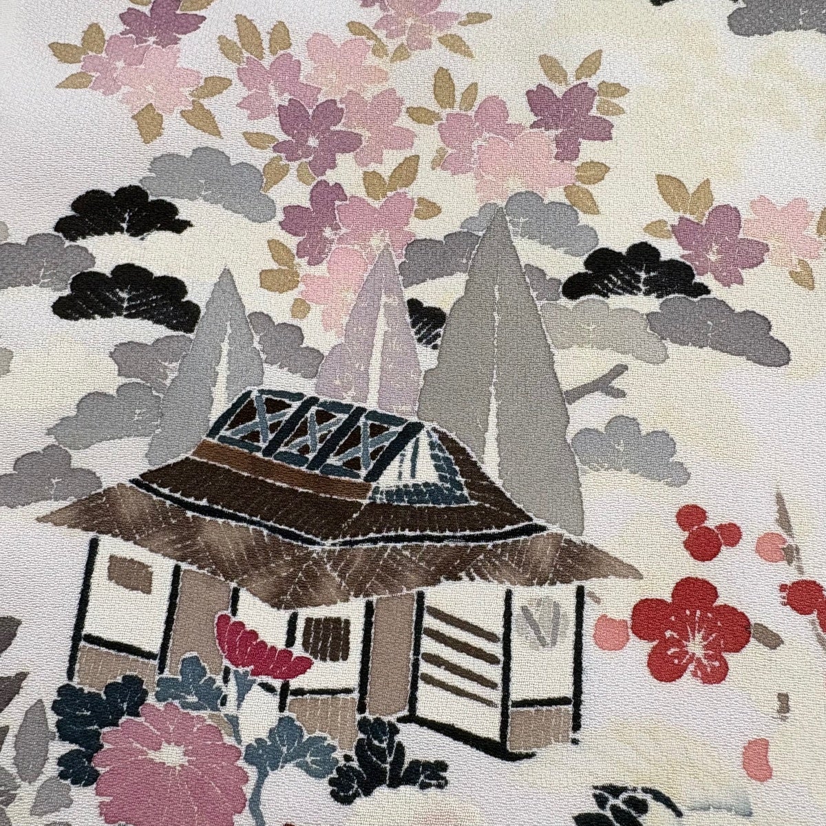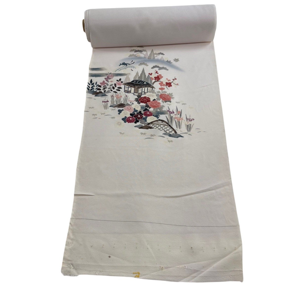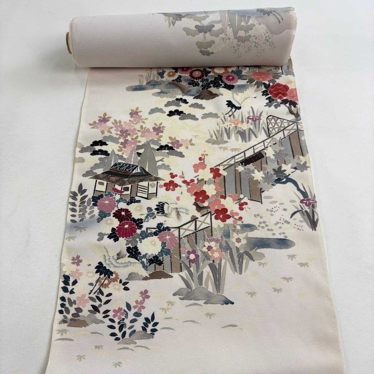 付下げ 身丈159cm 裄丈63.5cm S 袷 花 クリーム 正絹 優品