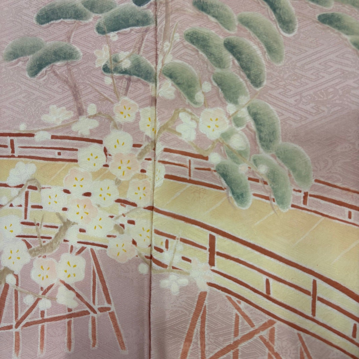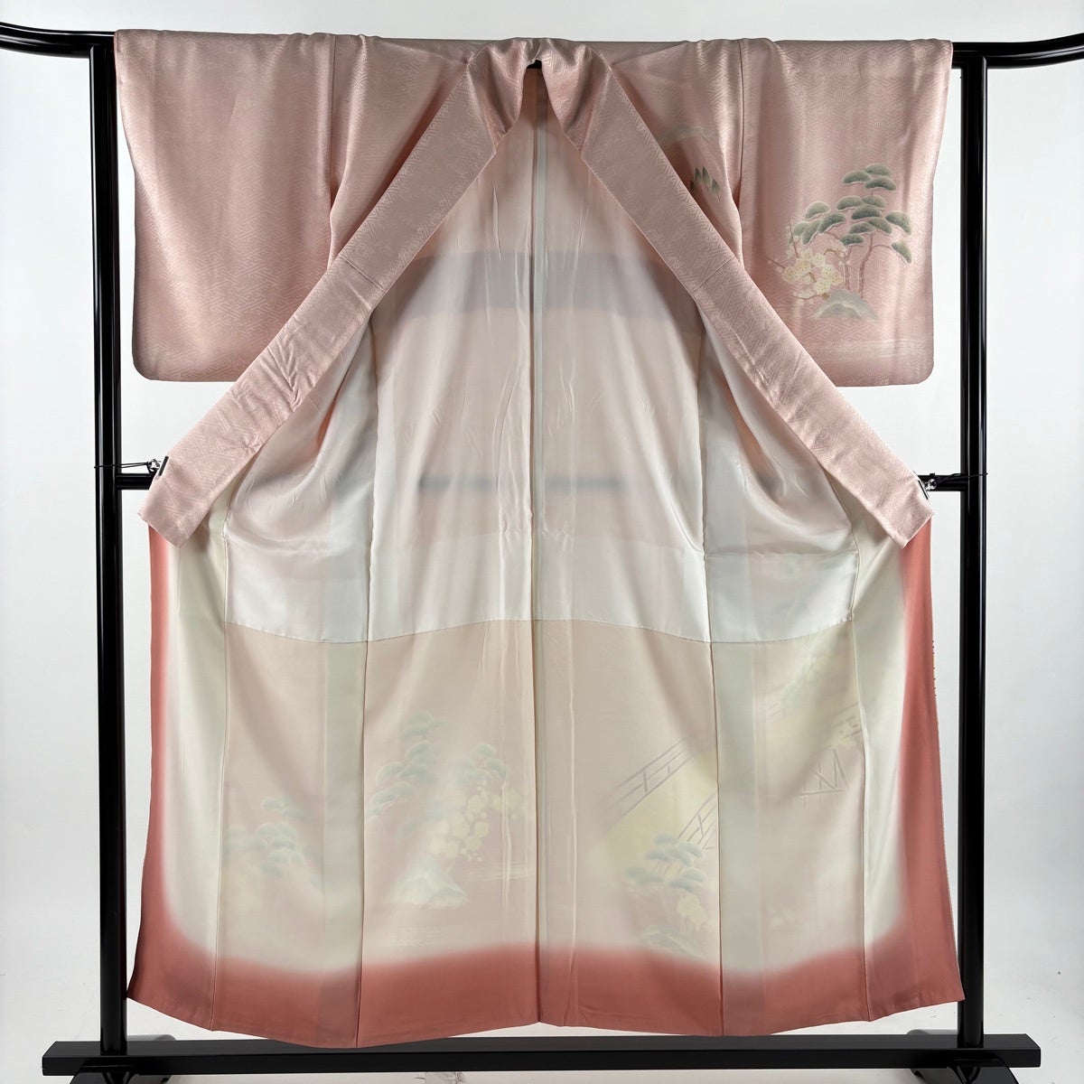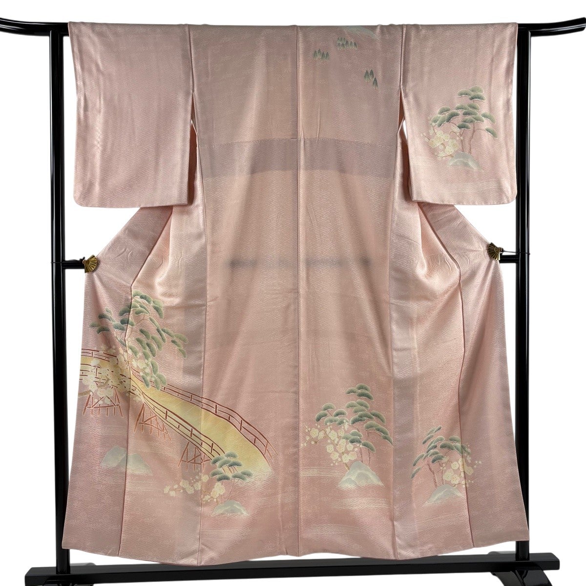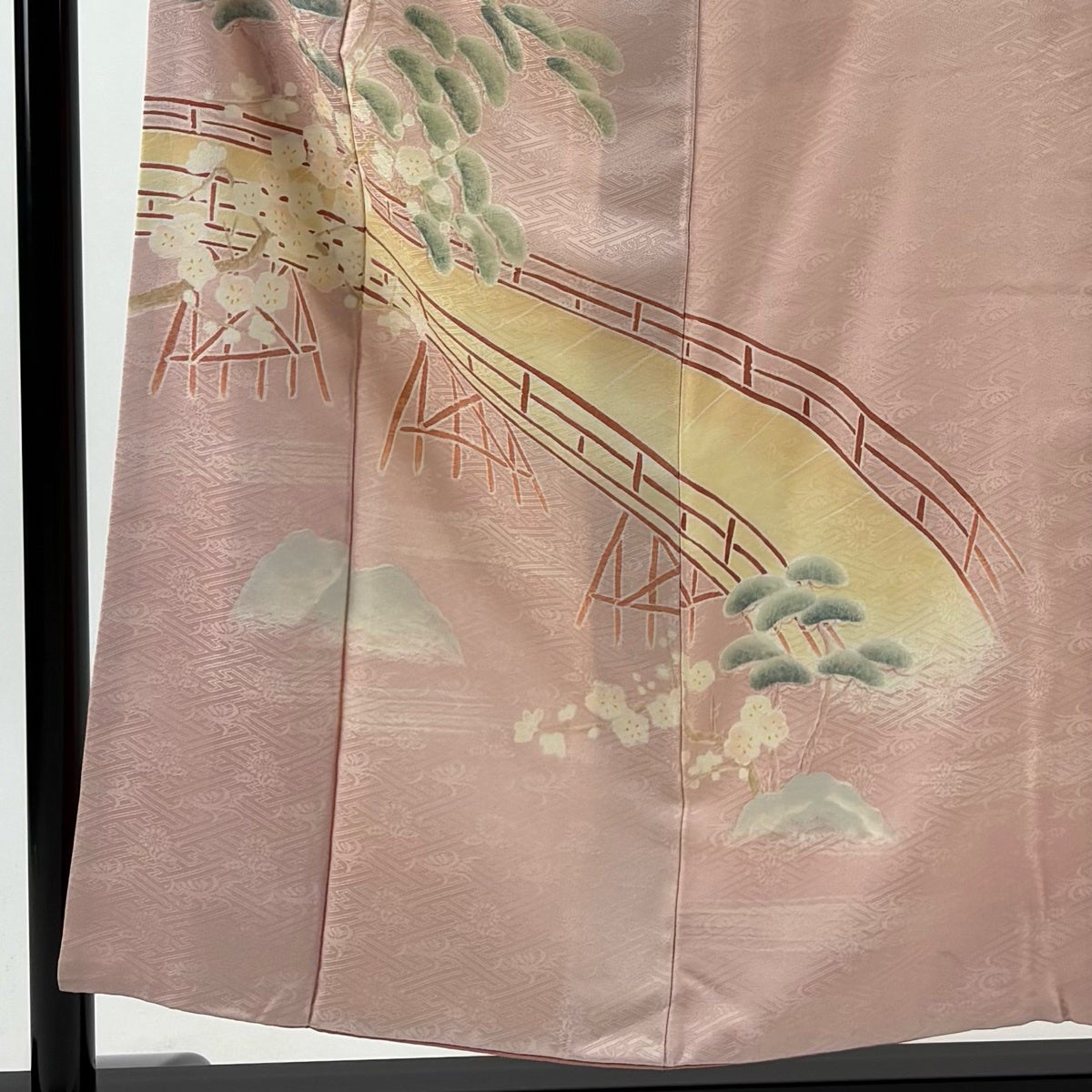 付下げ 身丈155cm 裄丈62cm S 袷 松梅 橋 ピンク 正絹 優品