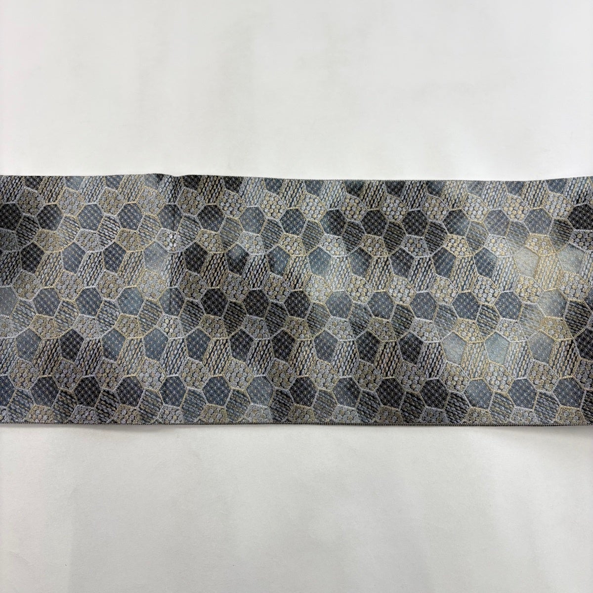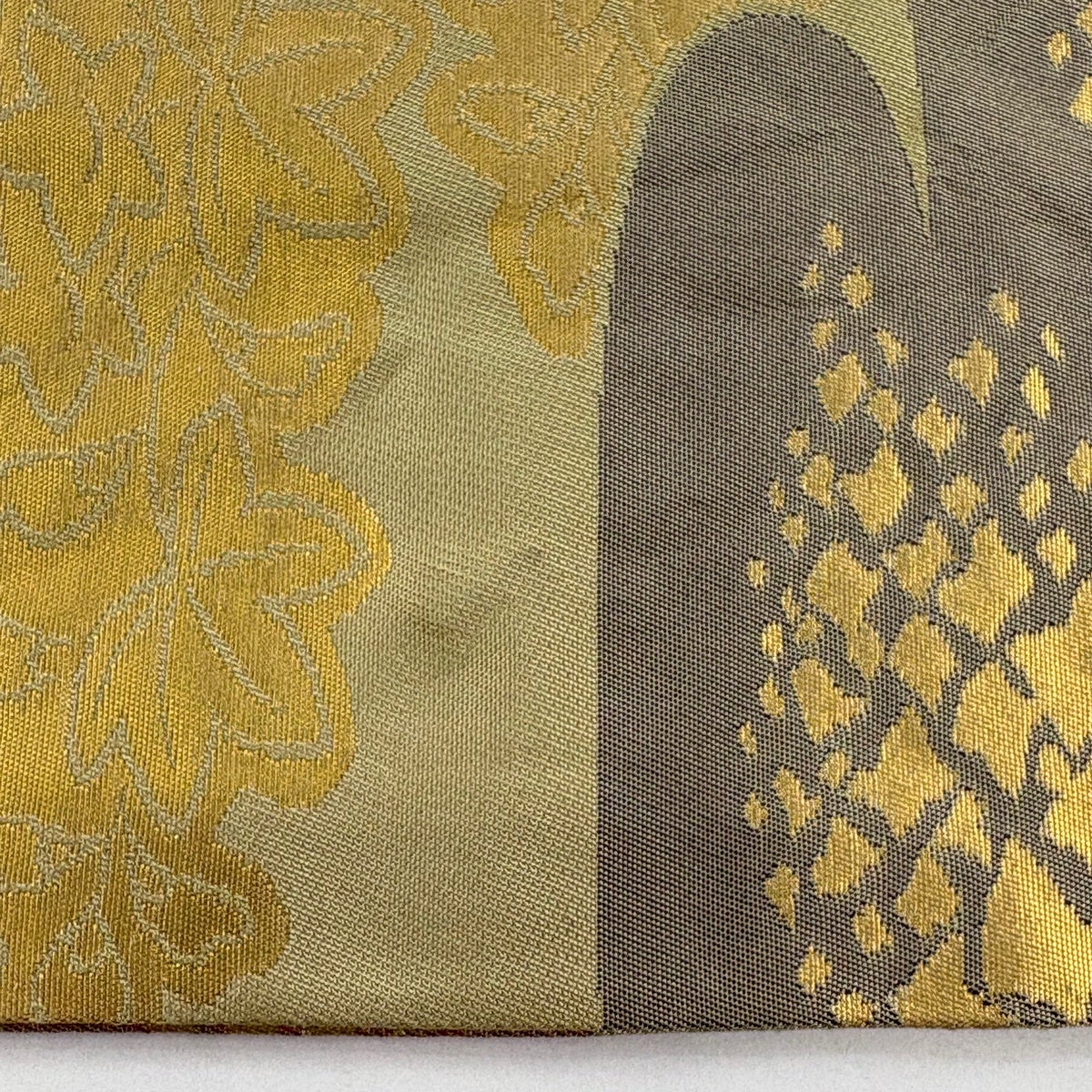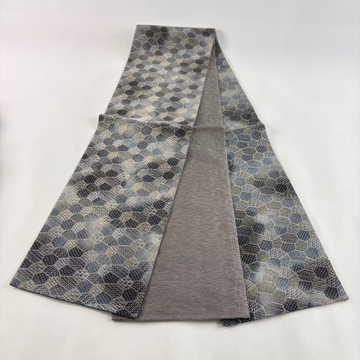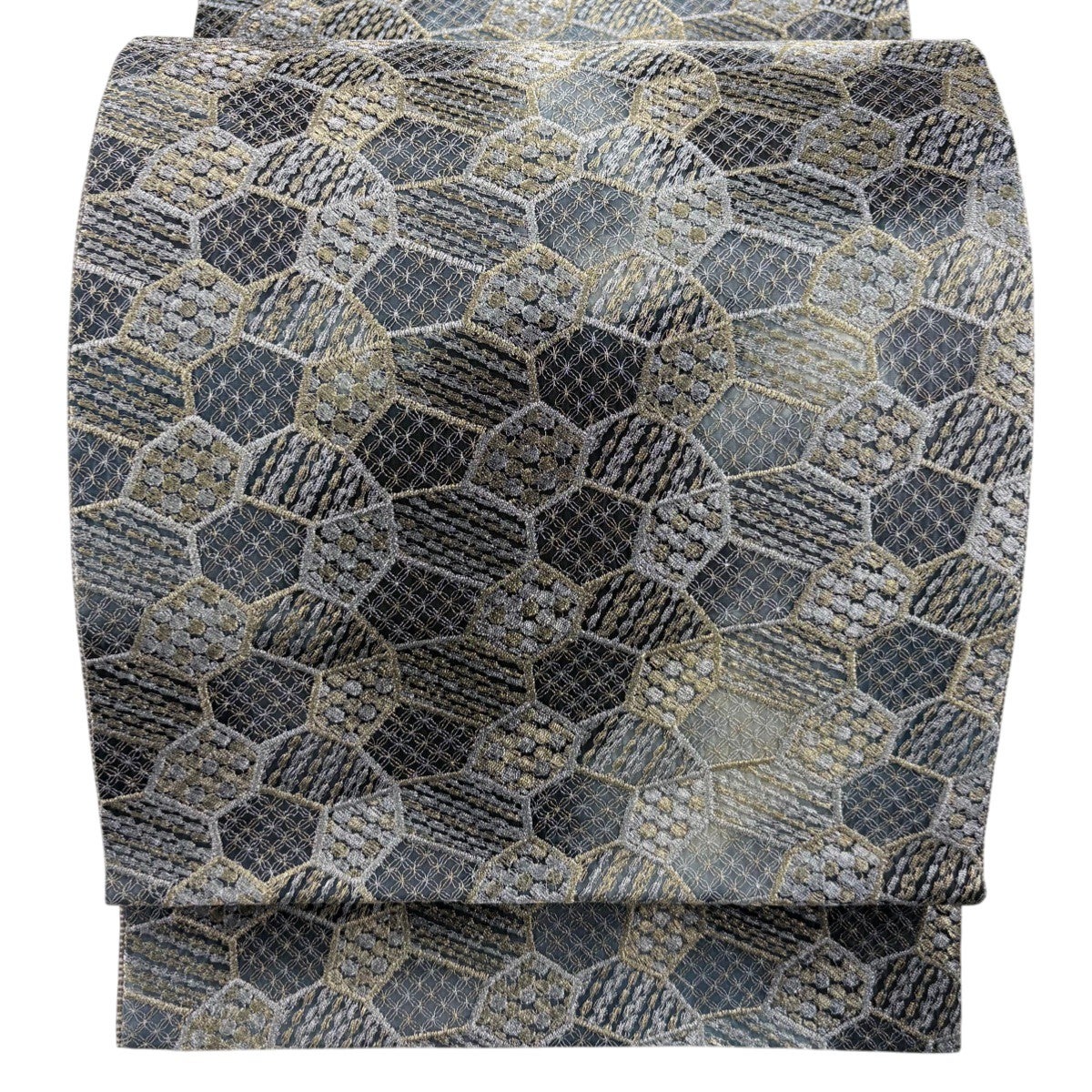 袋帯 名品 落款あり 幾何学模様 金銀糸 箔 灰色 六通 正絹