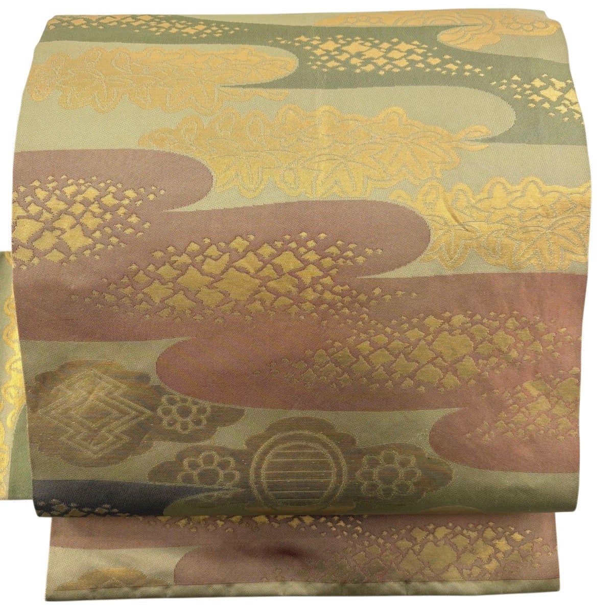名古屋帯 秀品 花唐草 菱 金糸 金彩 ピンク 正絹