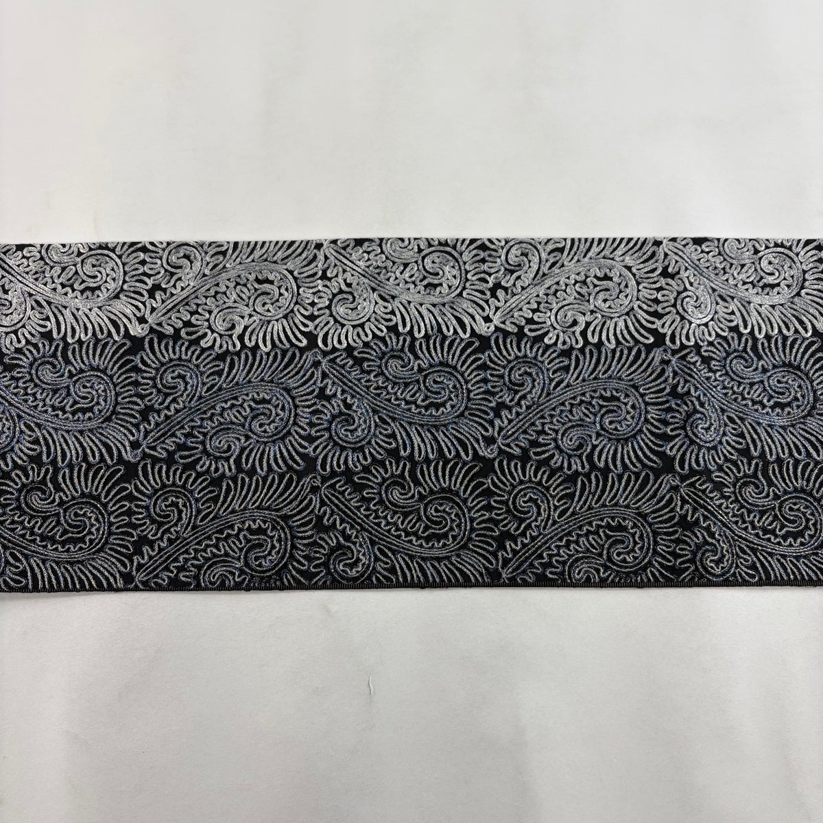 袋帯 秀品 幾何学模様 箔 灰白 六通 正絹