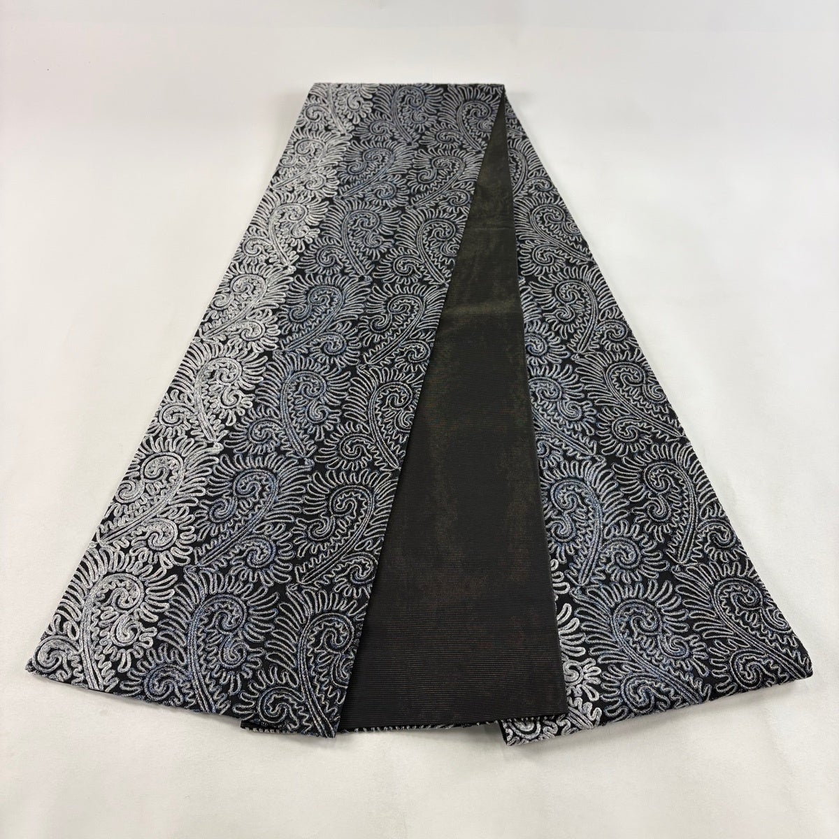 袋帯 秀品 流水 幾何学模様 箔 墨色 六通 正絹