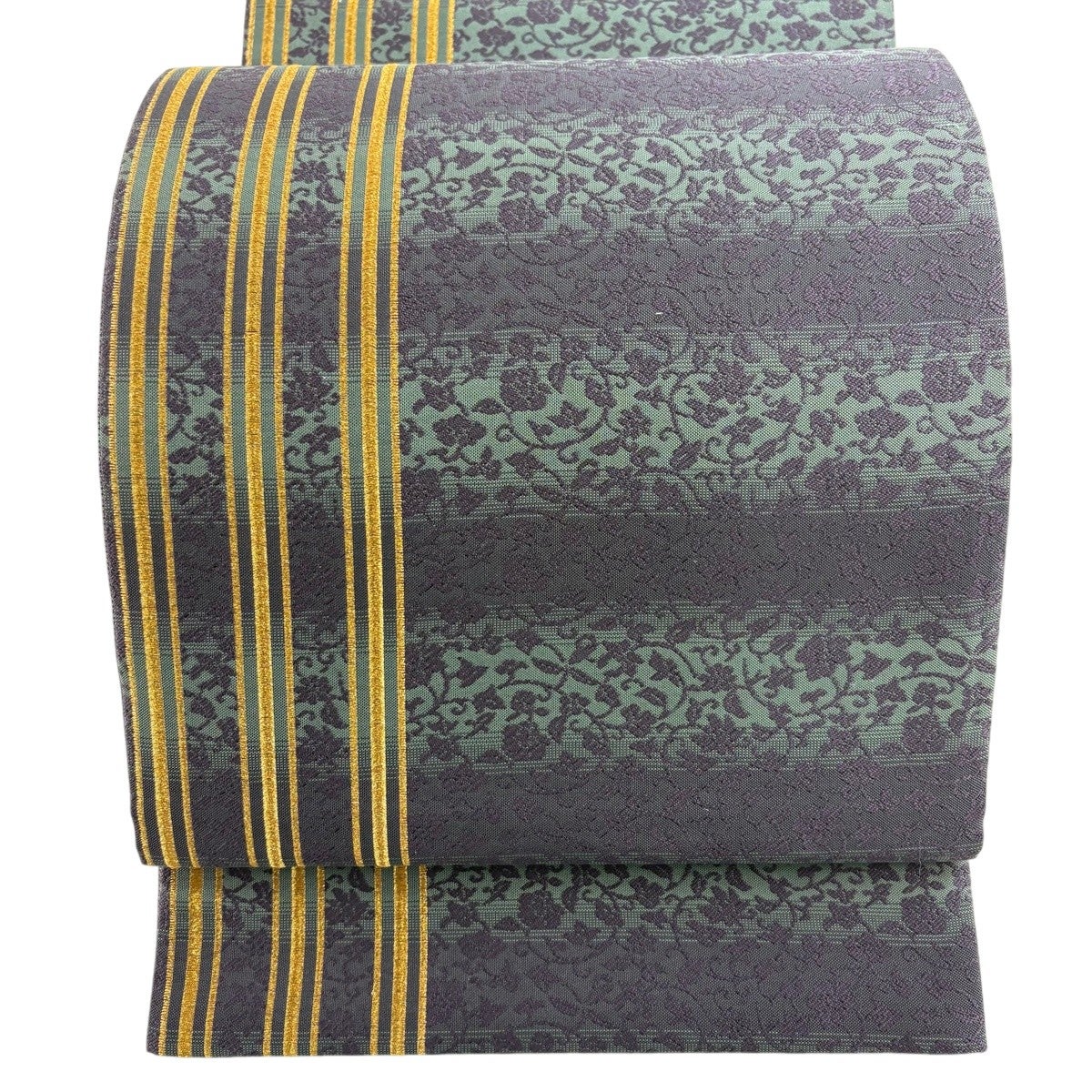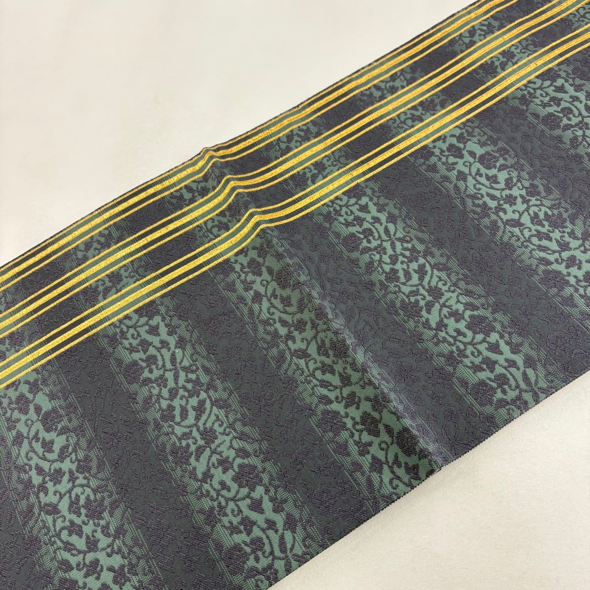 袋帯 秀品 流水 箔 金糸 緑 六通 正絹