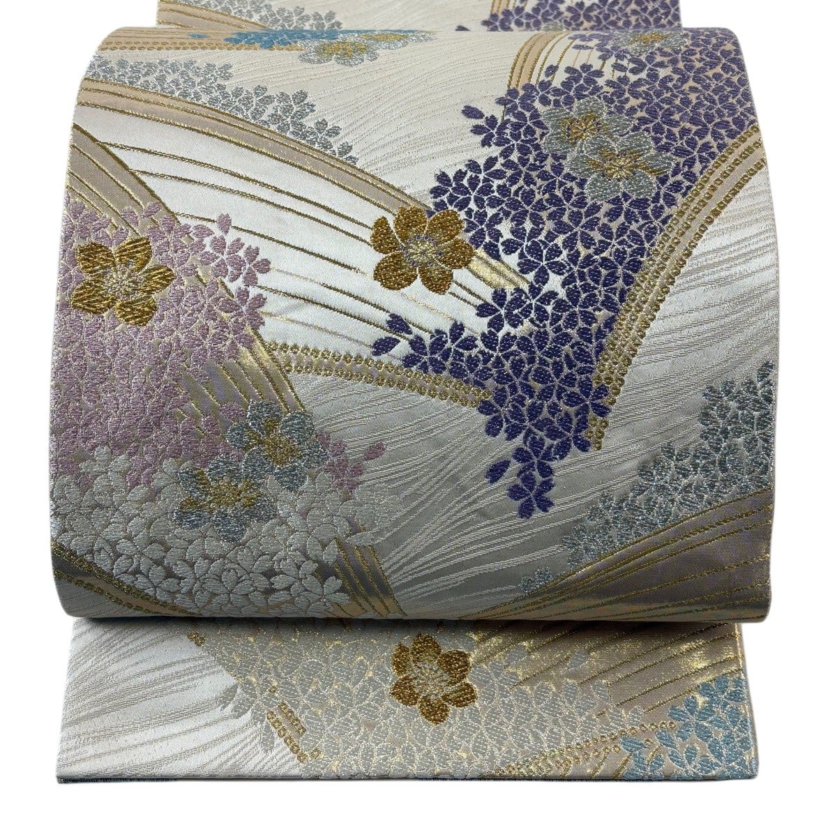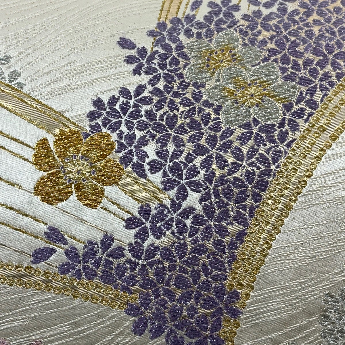 30%OFF 袋帯 秀品 笹 金糸 箔 クリーム 六通 正絹 K30