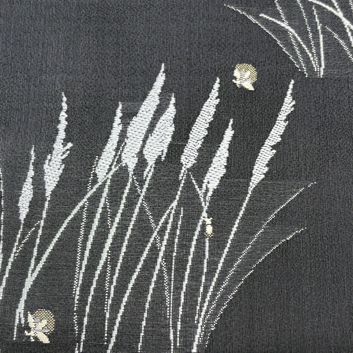名古屋帯 秀品 夏帯 絽 草花 金銀彩 灰茶 正絹