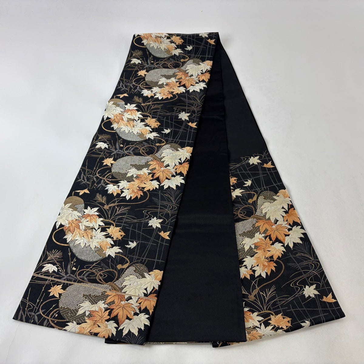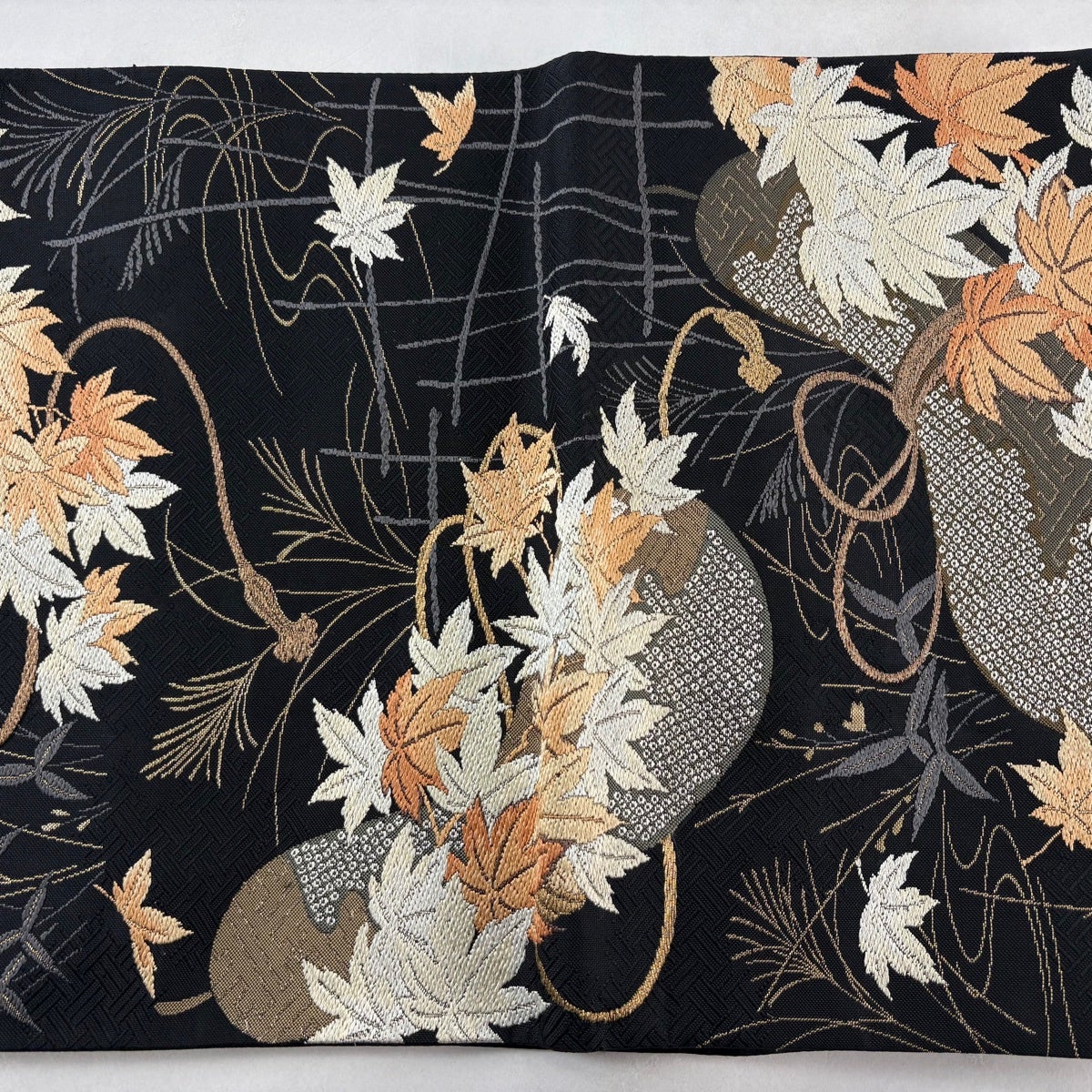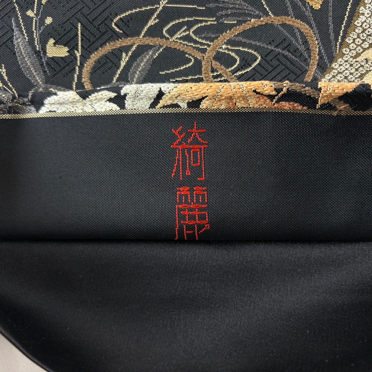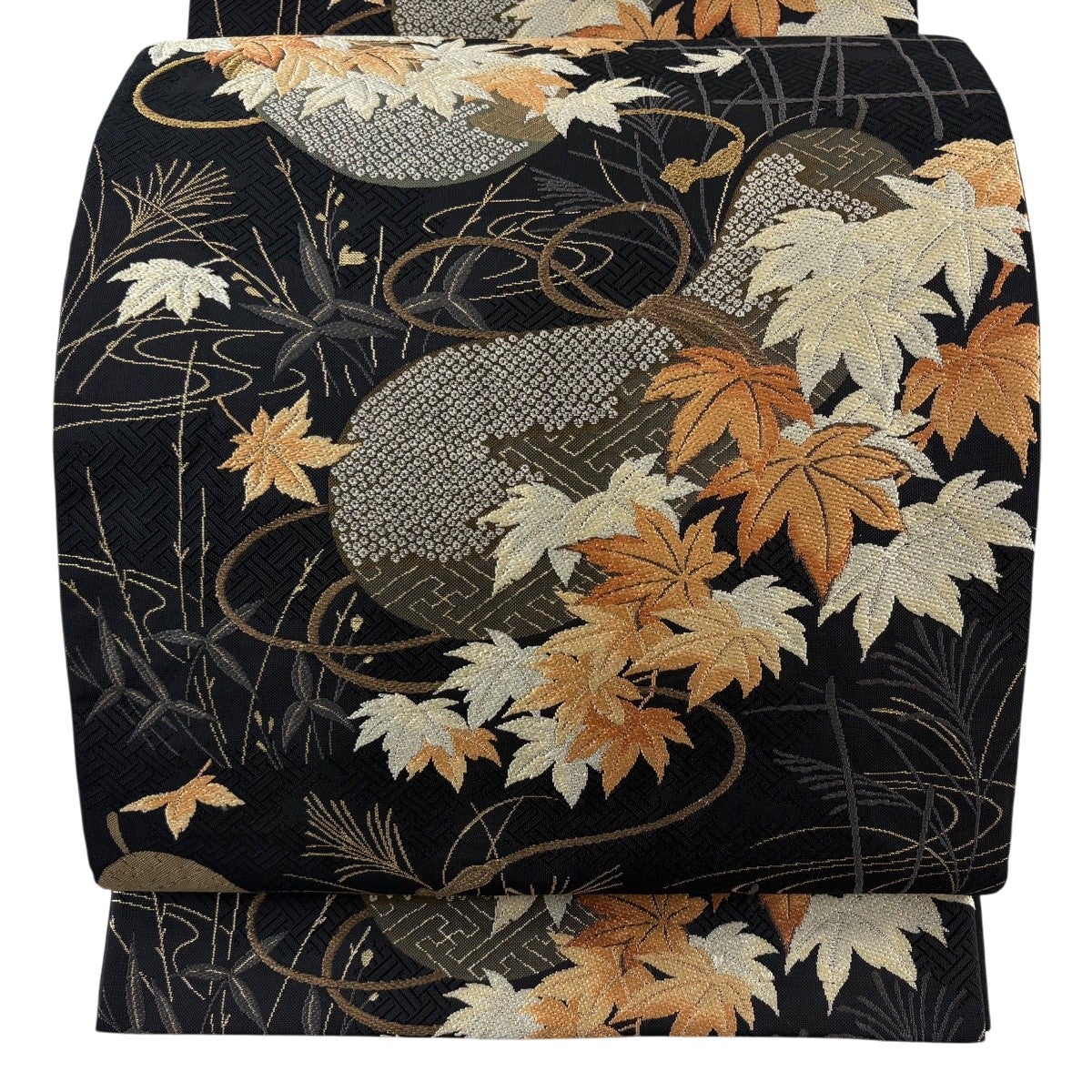 50%OFF 【美品】 袋帯 名品 渡文 落款あり 夏帯 宝飾文 金銀糸 箔 黒 お太鼓柄 正絹 K50