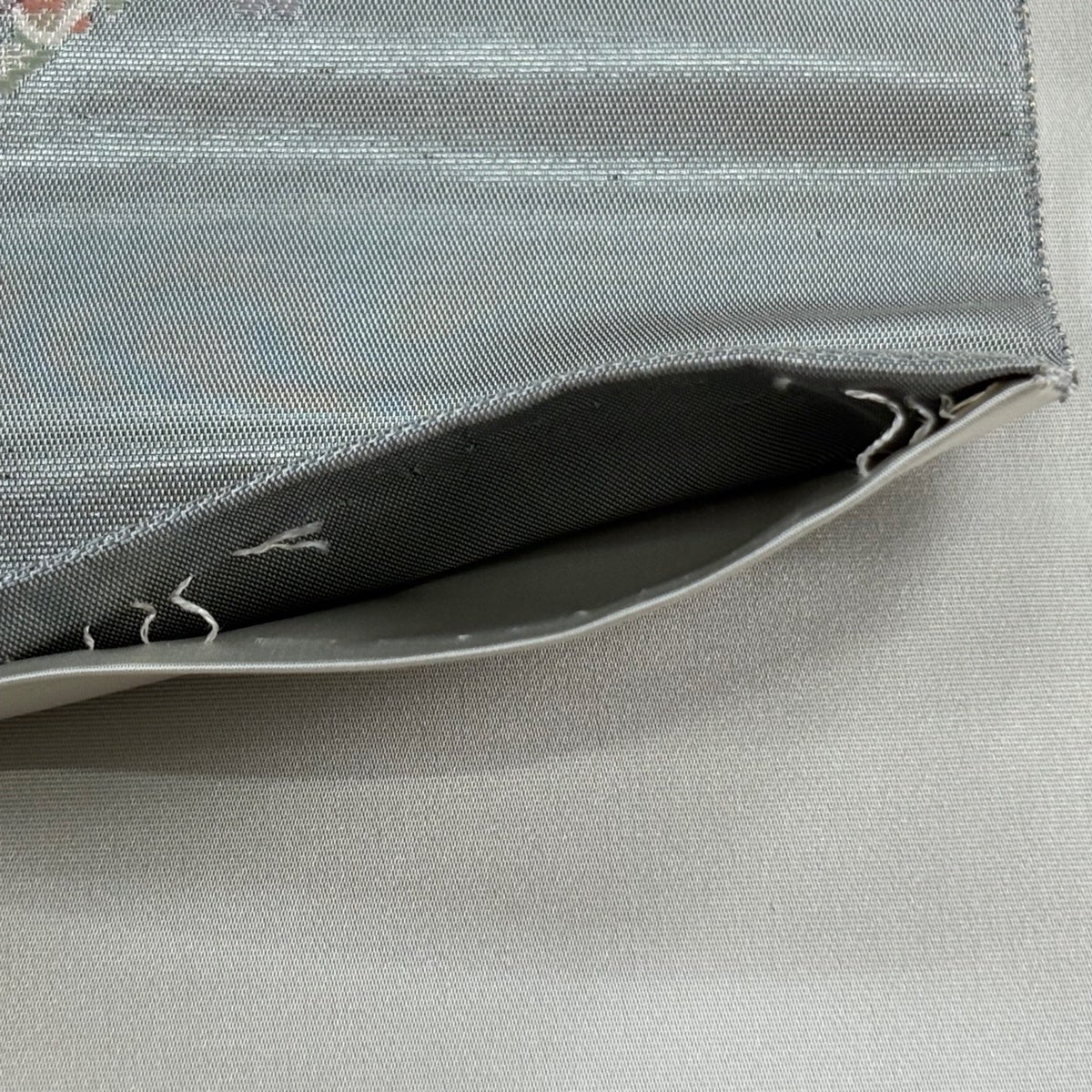 40%OFF 【美品】 袋帯 逸品 洛陽織物 落款あり リバーシブル 雪輪 花びら 銀糸 唐織 灰色 六通 正絹 K30
