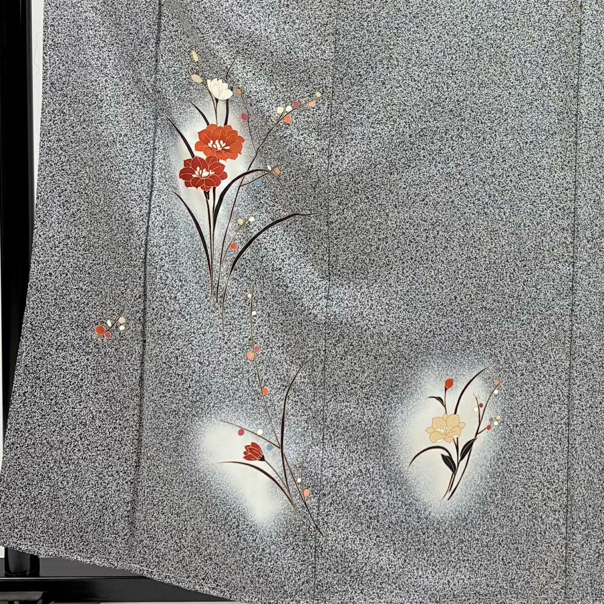 【美品】 付下げ 身丈160.5cm 裄丈65cm M 袷 草花 金彩 ぼかし 黒灰 正絹 秀品