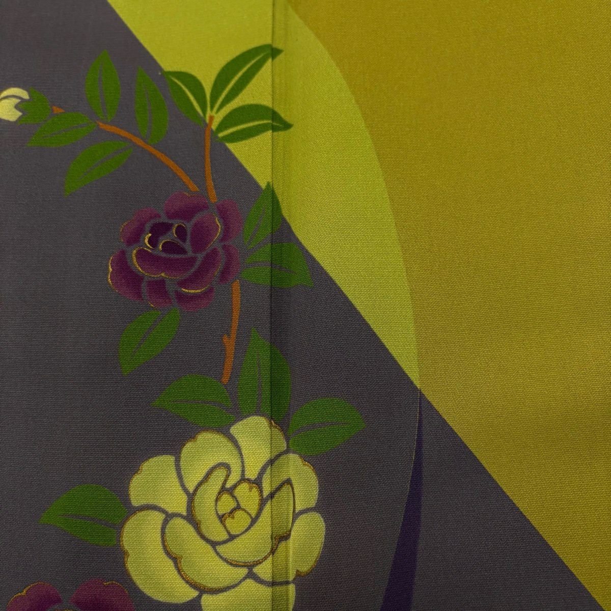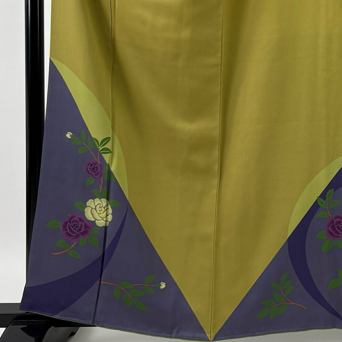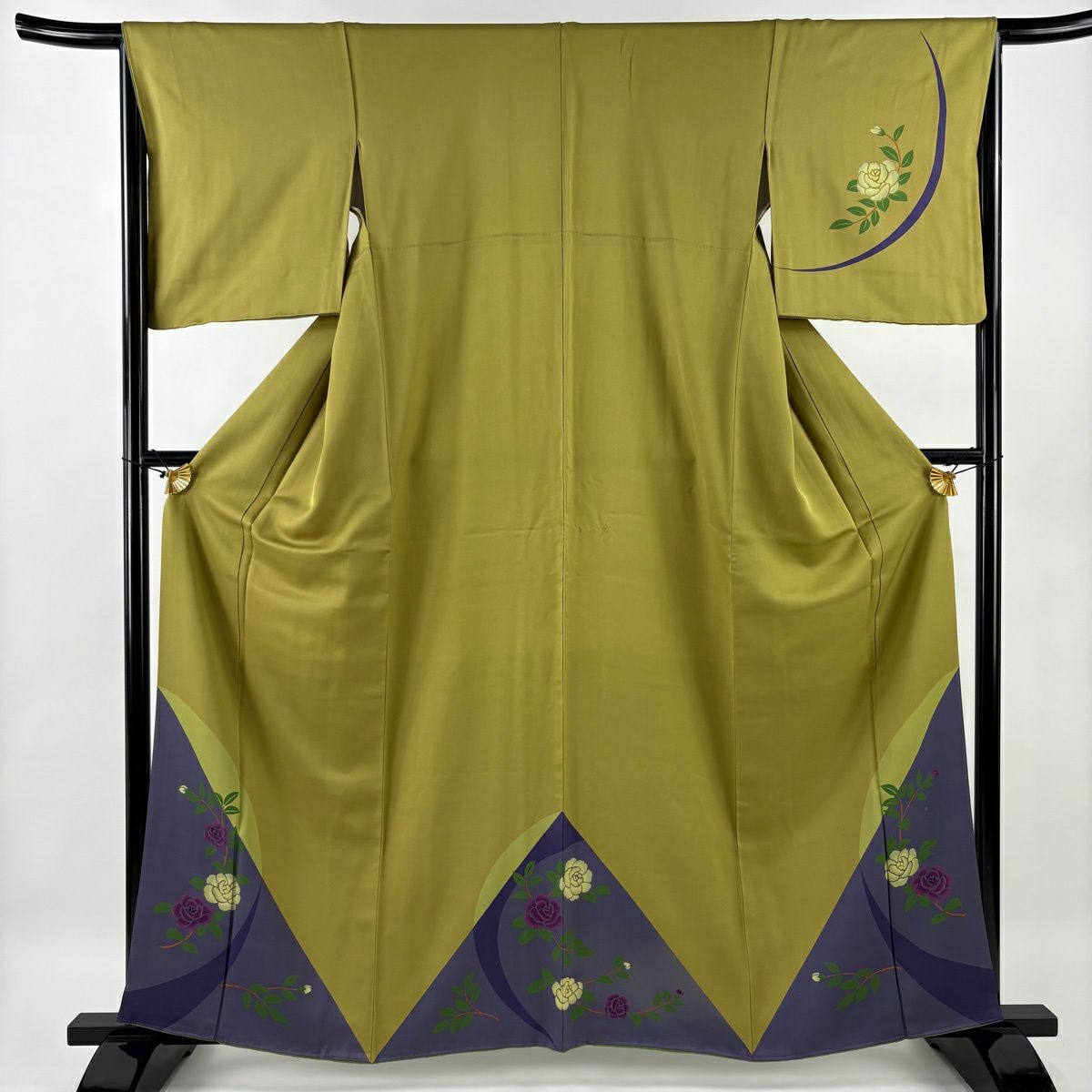 付下げ 身丈161cm 裄丈66cm M 袷 薔薇 金彩 染め分け 鶯色 正絹 名品