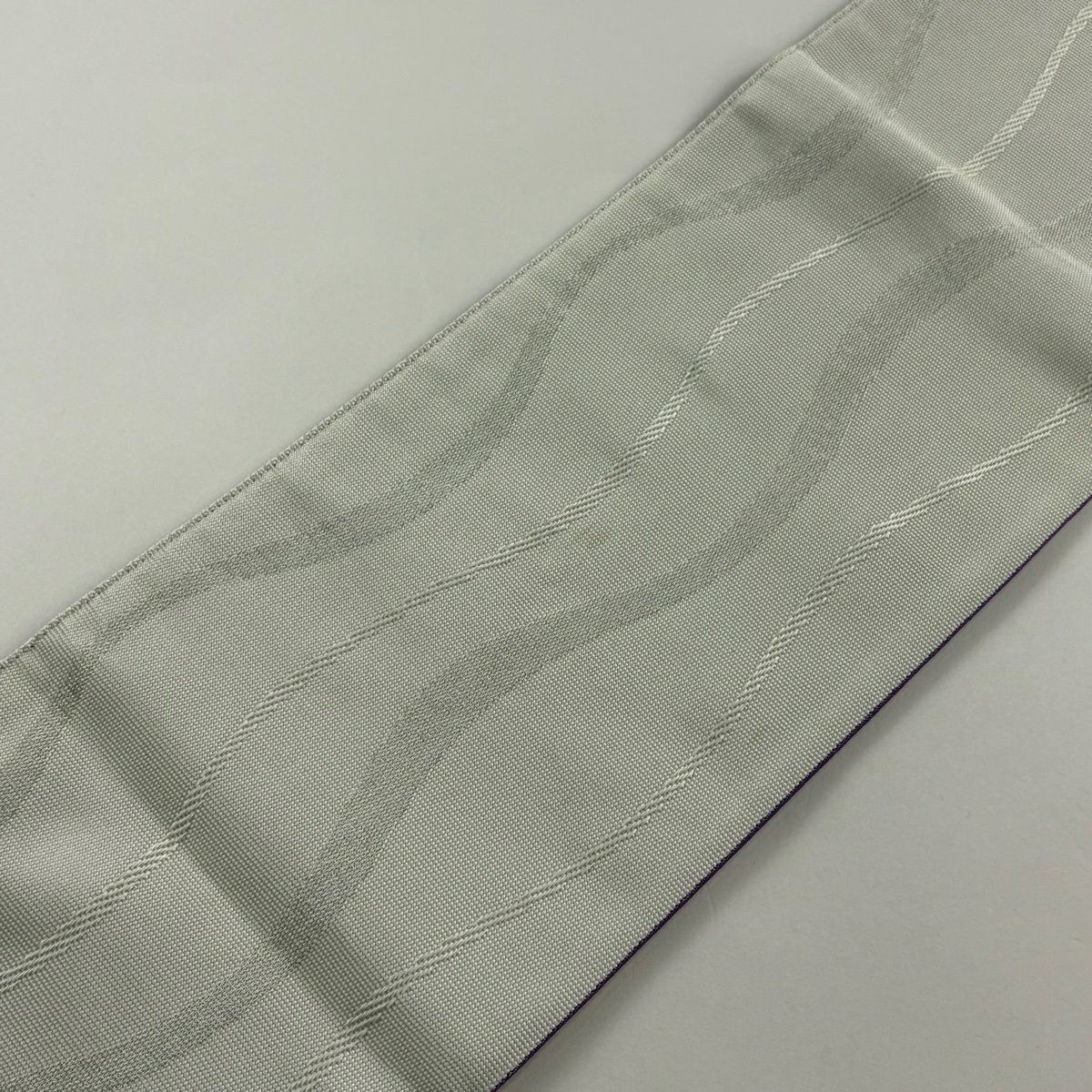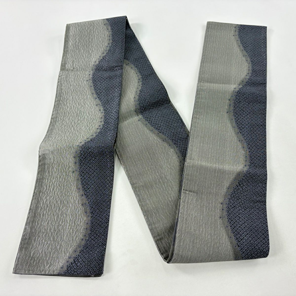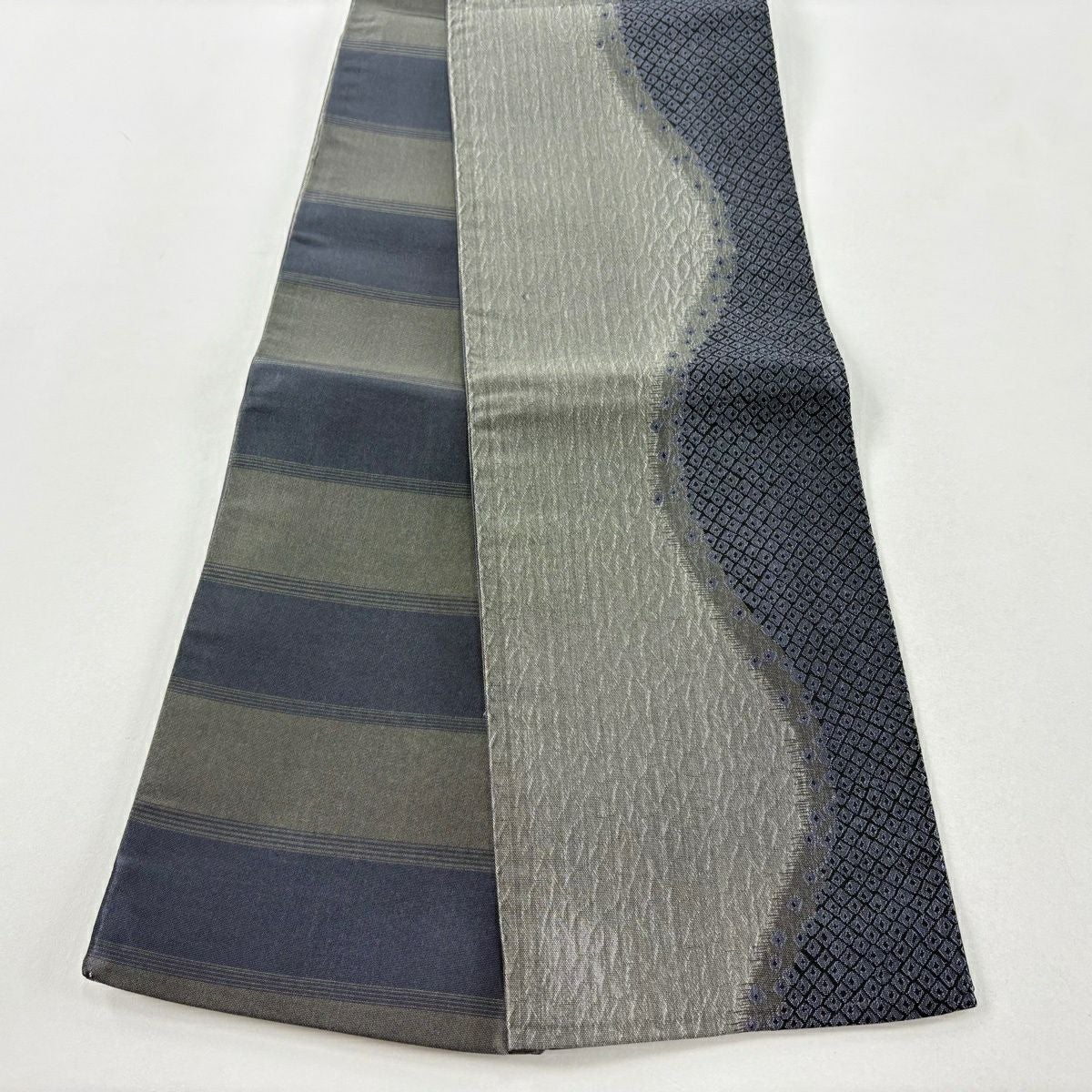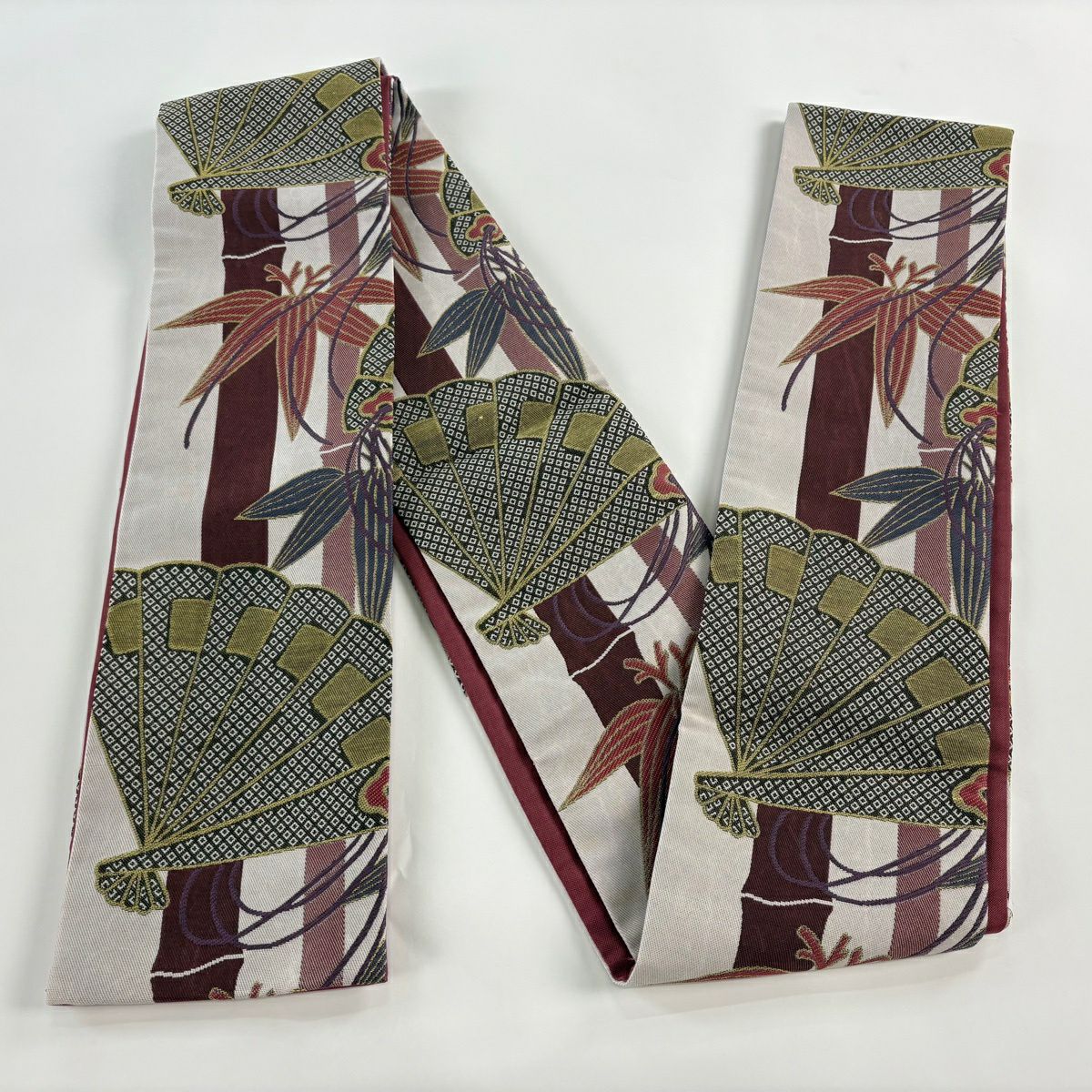 半幅帯 優品 桧扇 竹 灰色 化繊