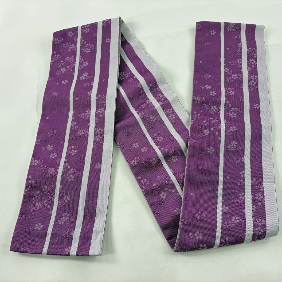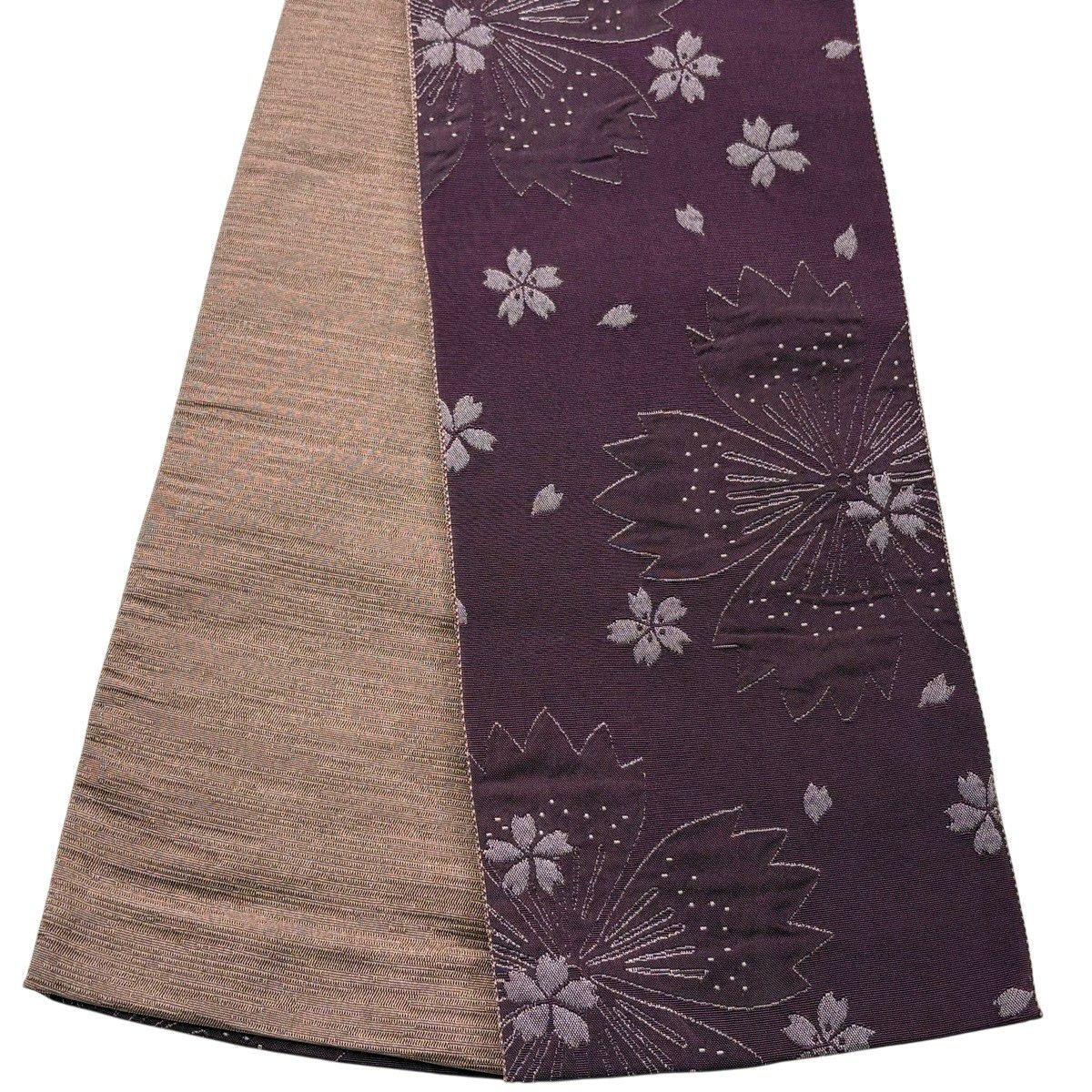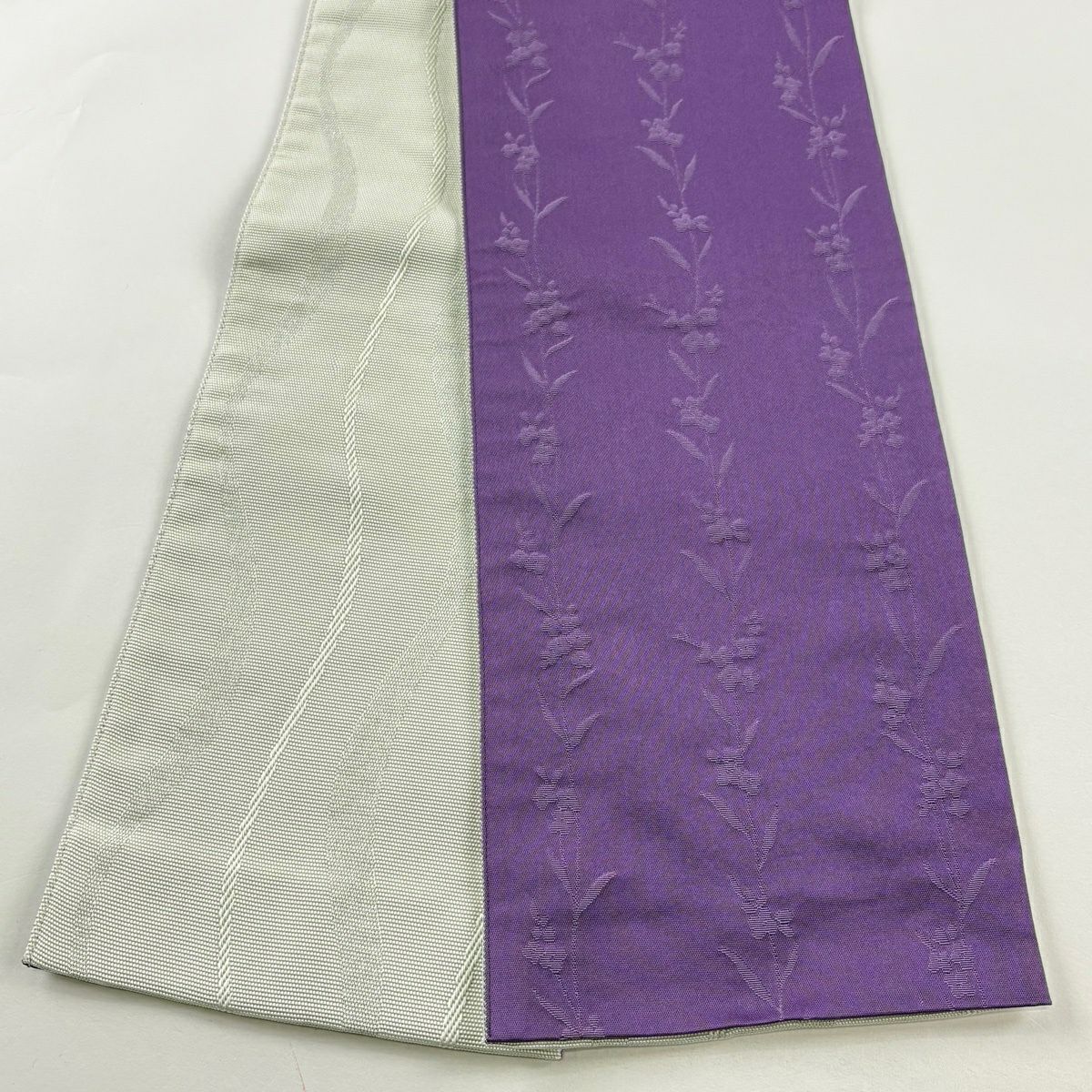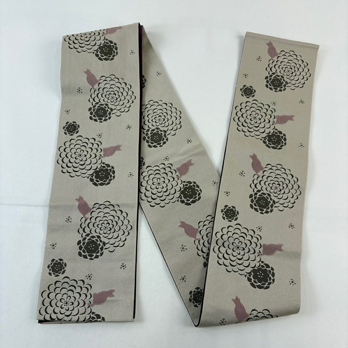 半幅帯 優品 桧扇 竹 灰色 化繊