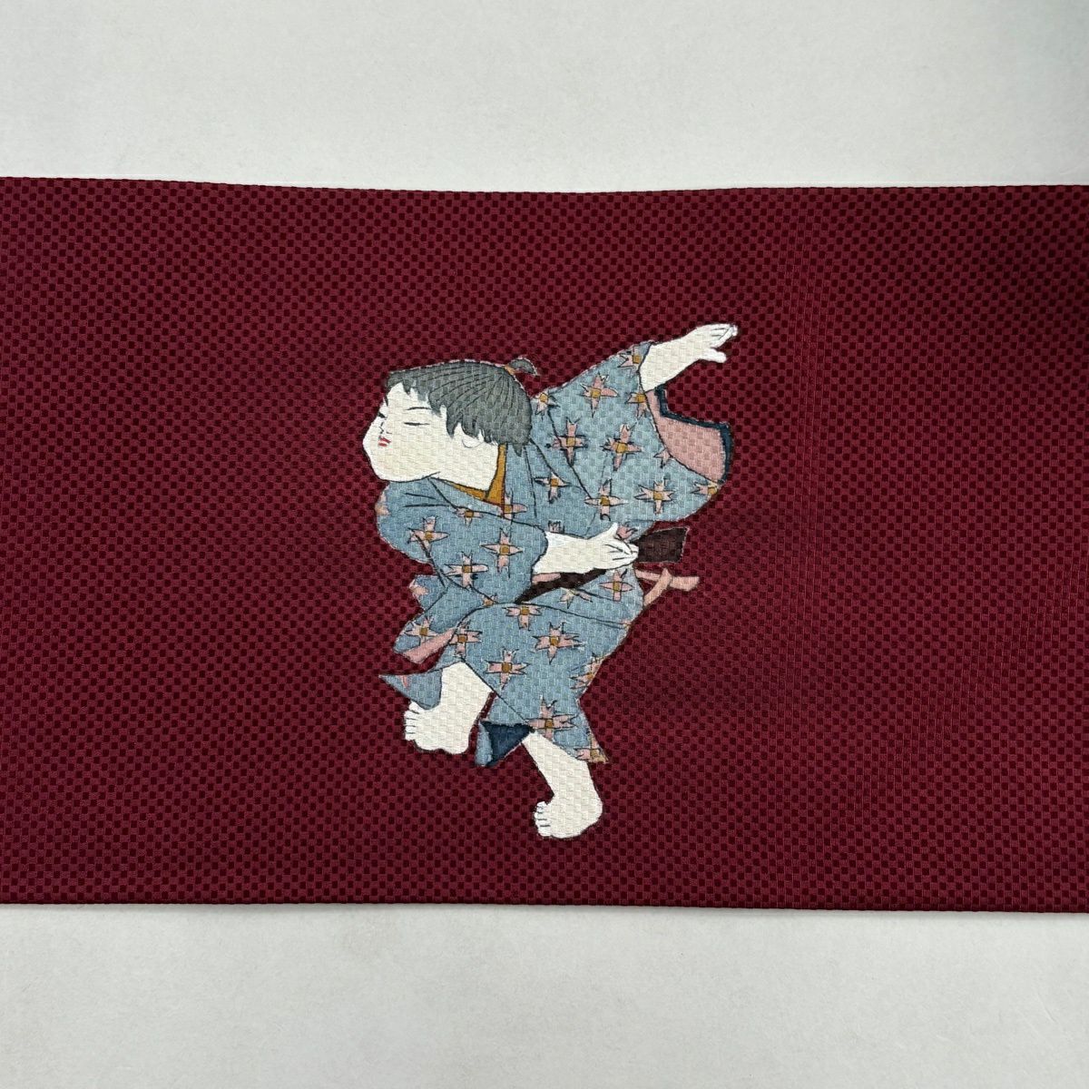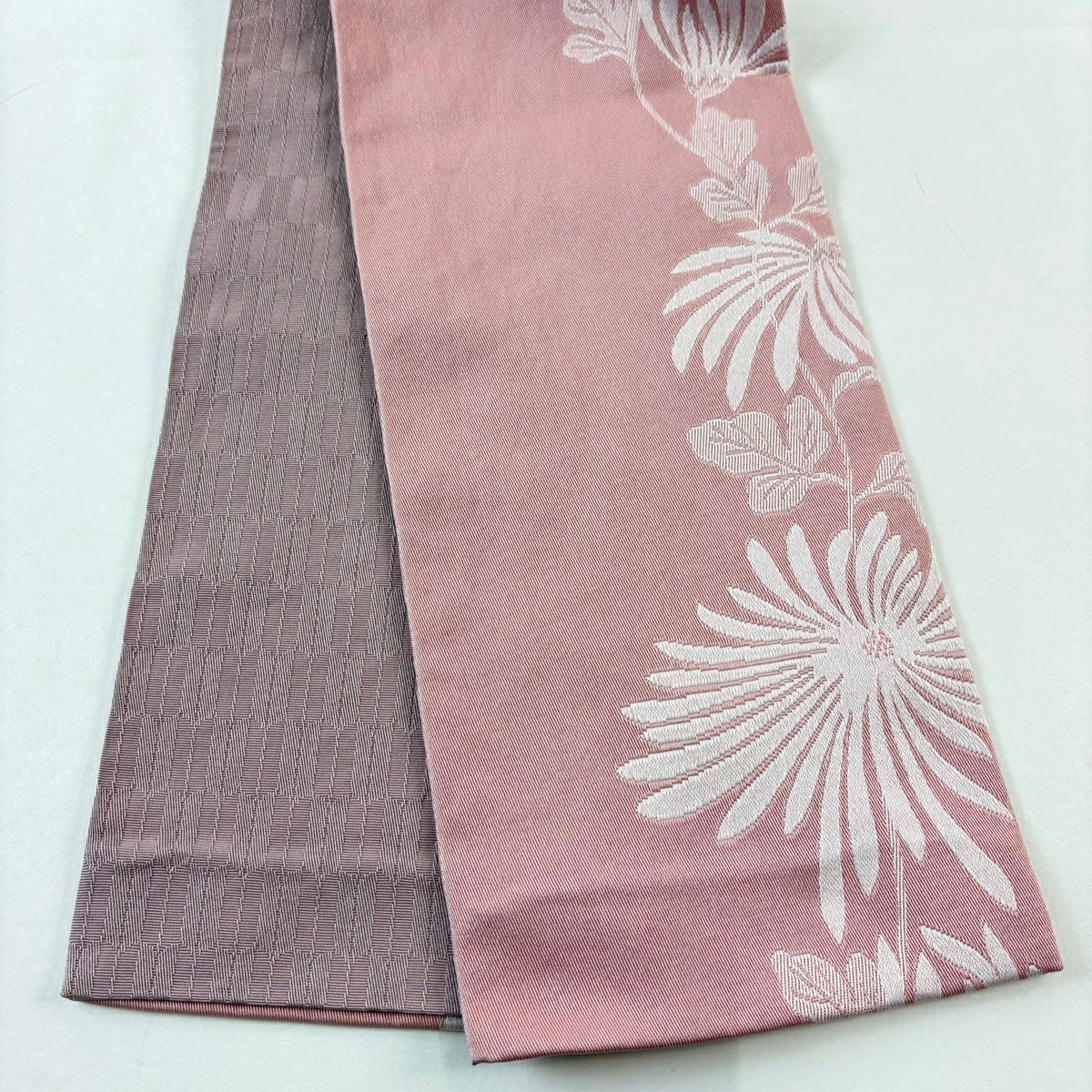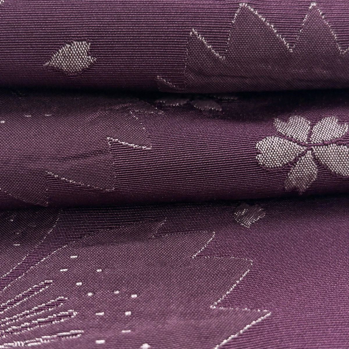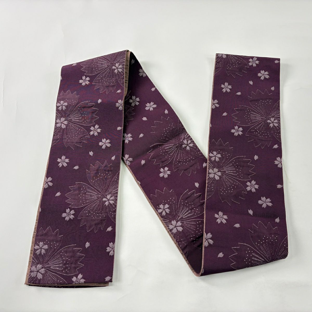 半幅帯 優品 桧扇 竹 灰色 化繊