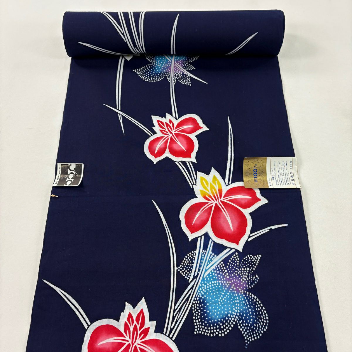 反物 優品 浴衣 菖蒲 濃紺 綿