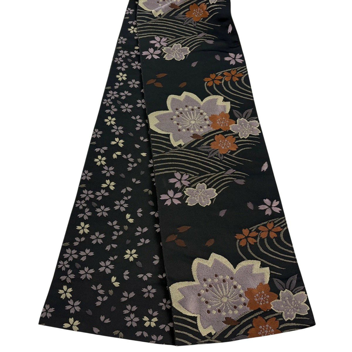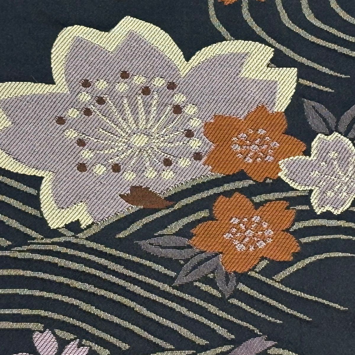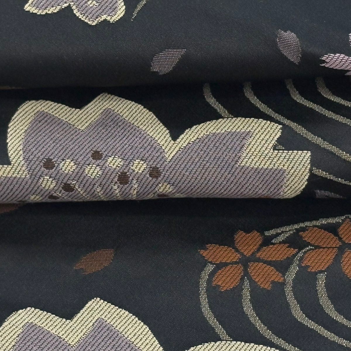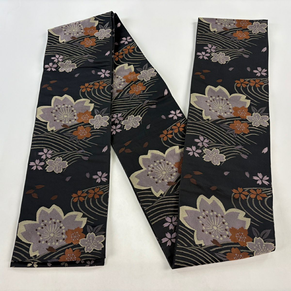 名古屋帯 優品 鳥 雲文 黒 正絹