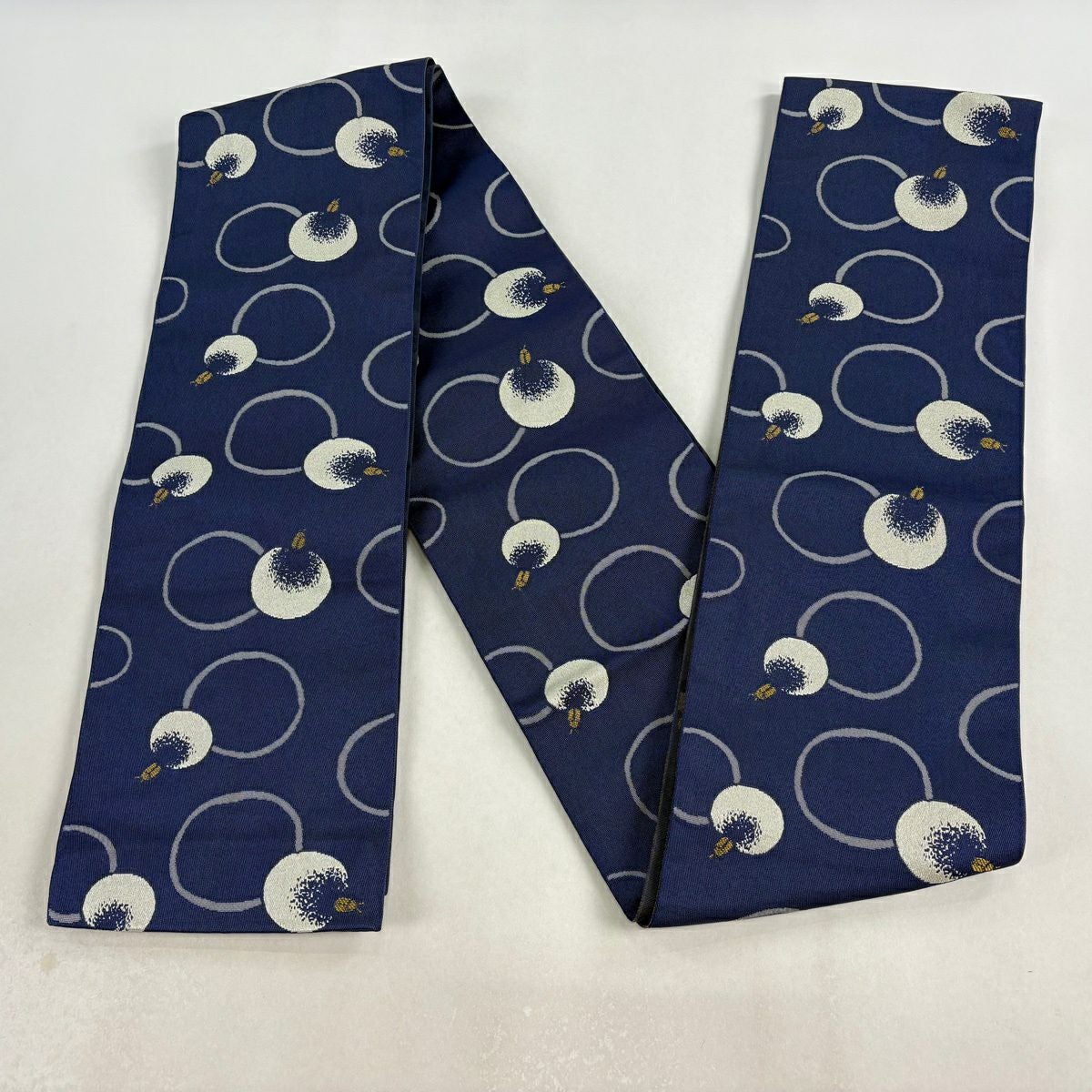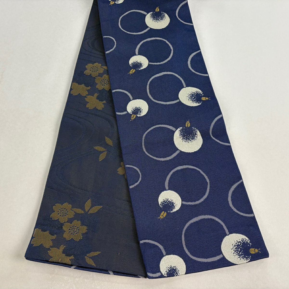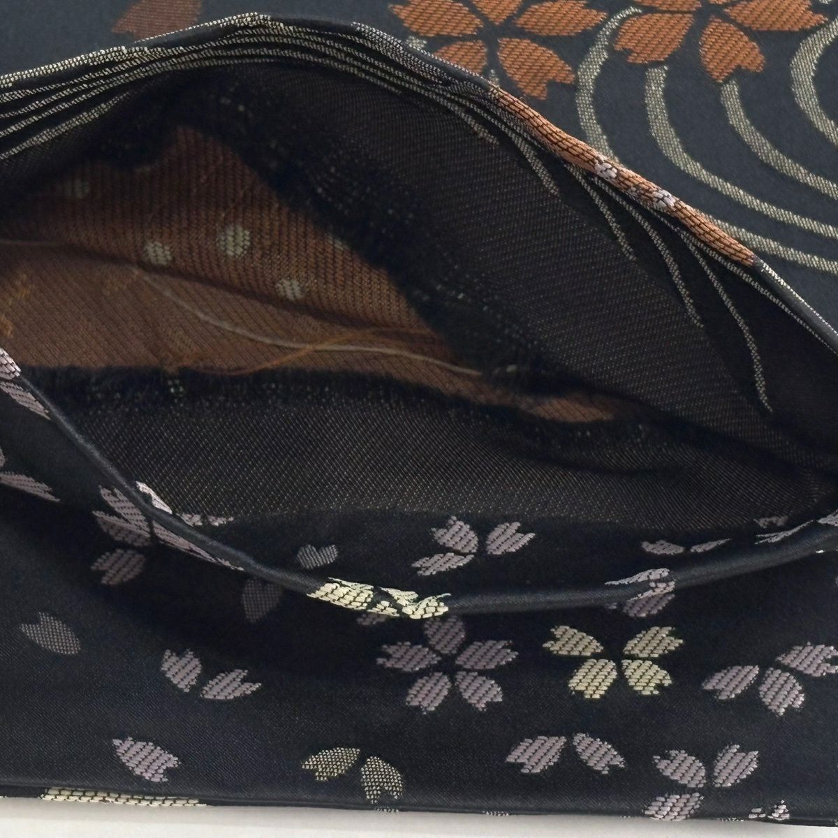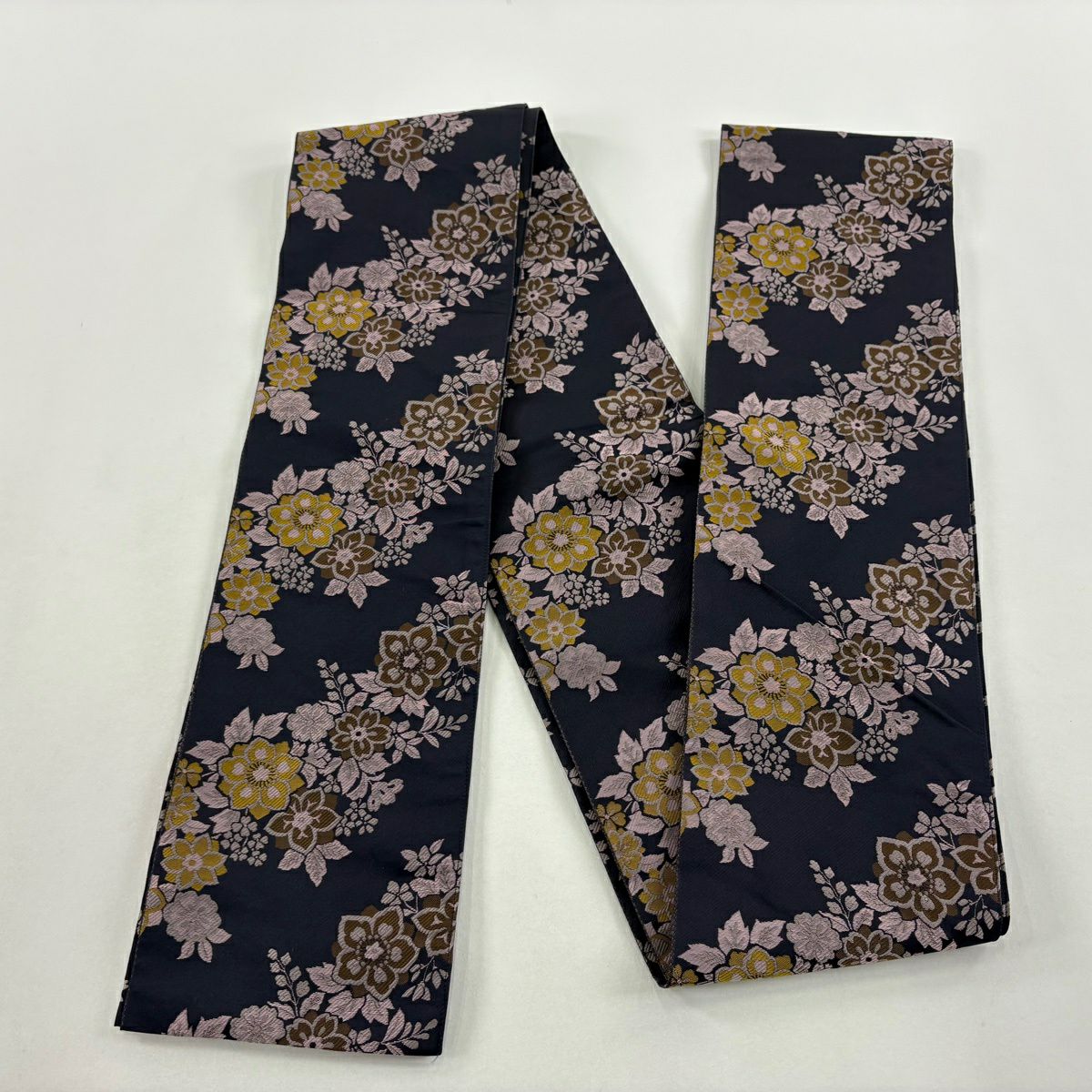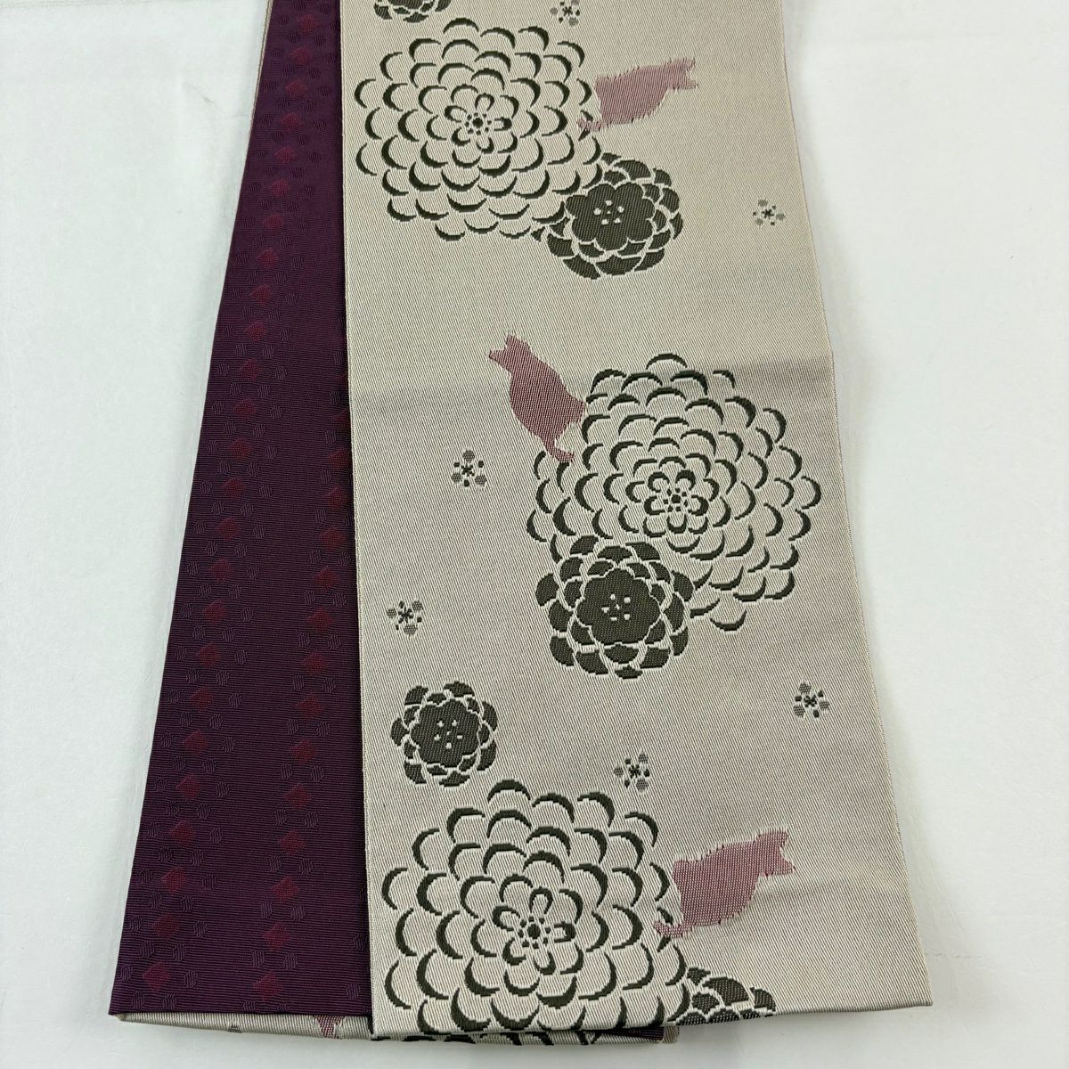 名古屋帯 優品 鳥 雲文 黒 正絹