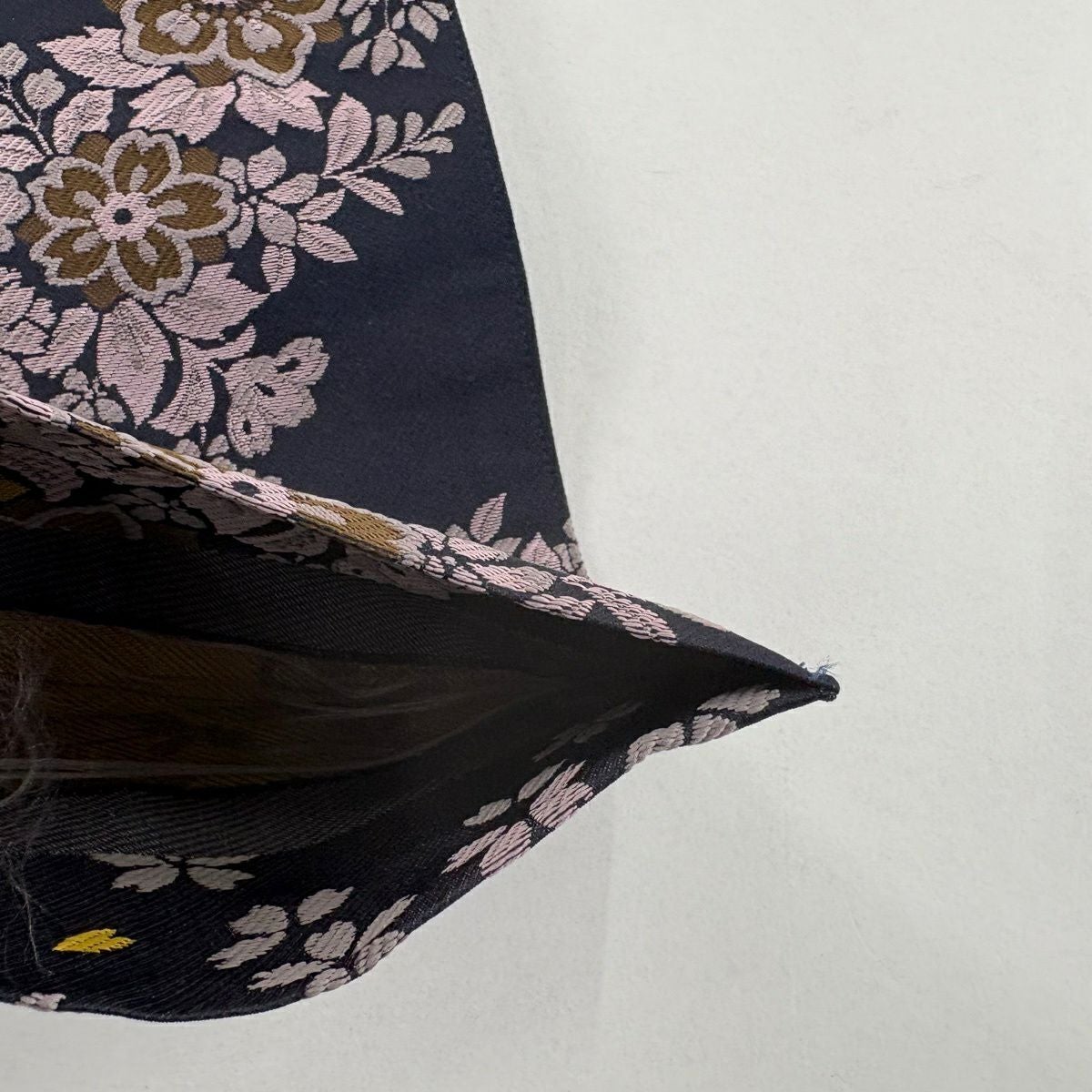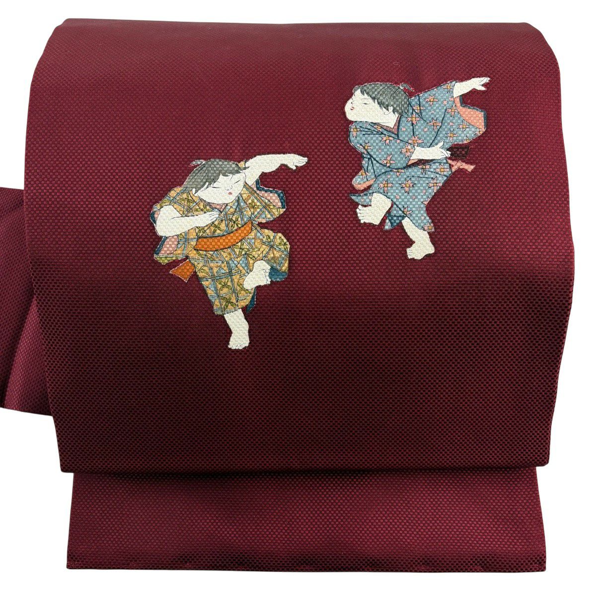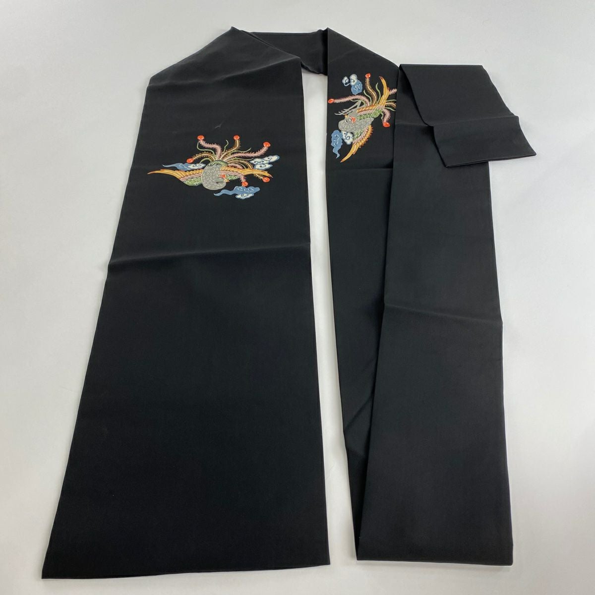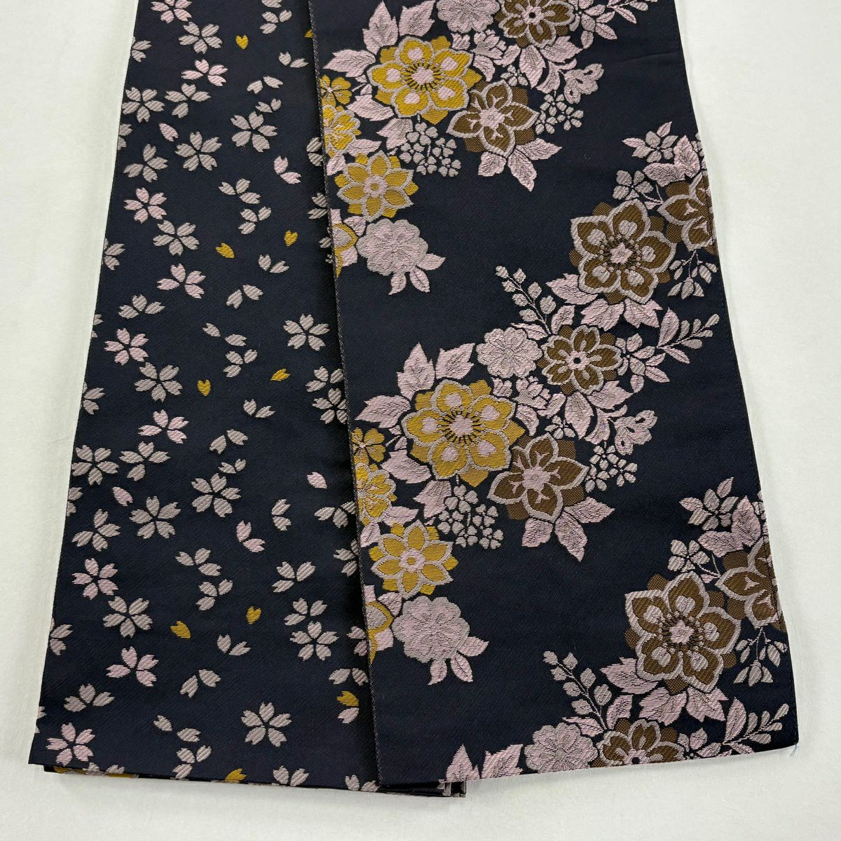名古屋帯 優品 鳥 雲文 黒 正絹
