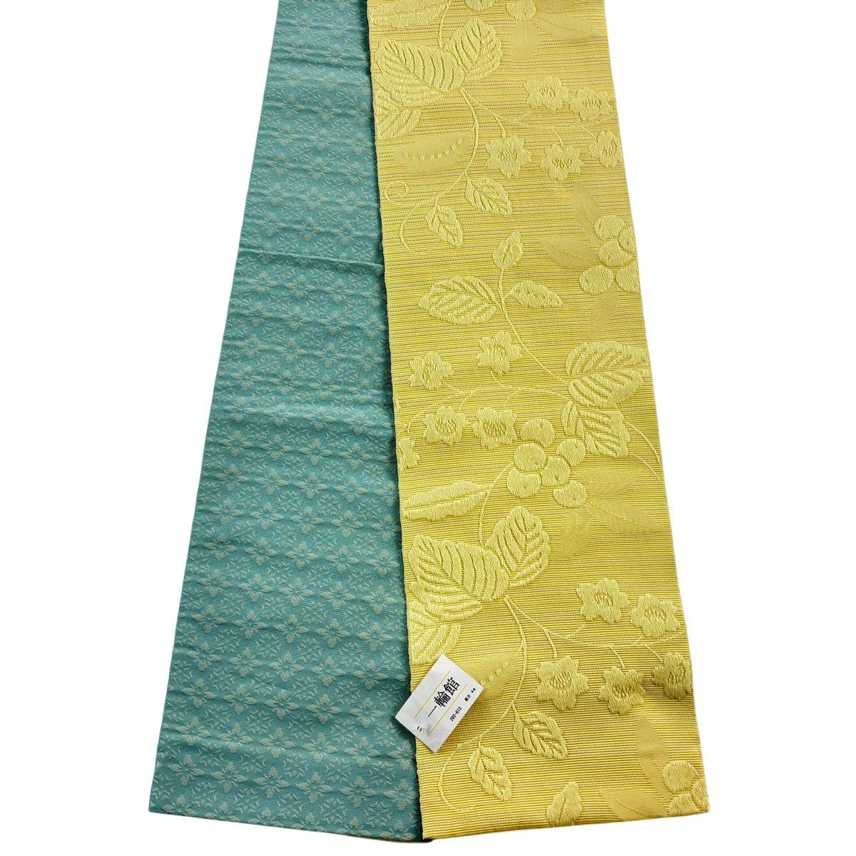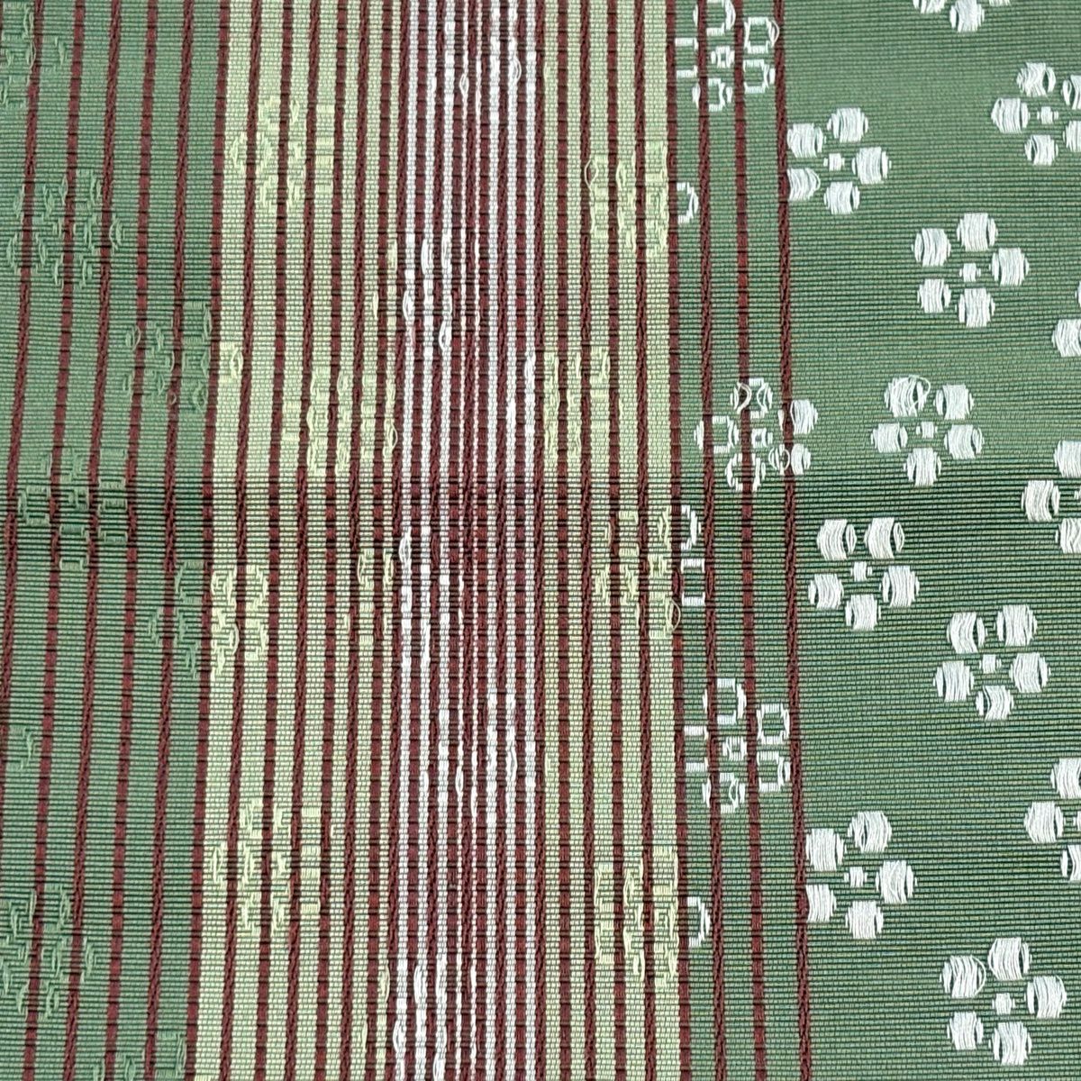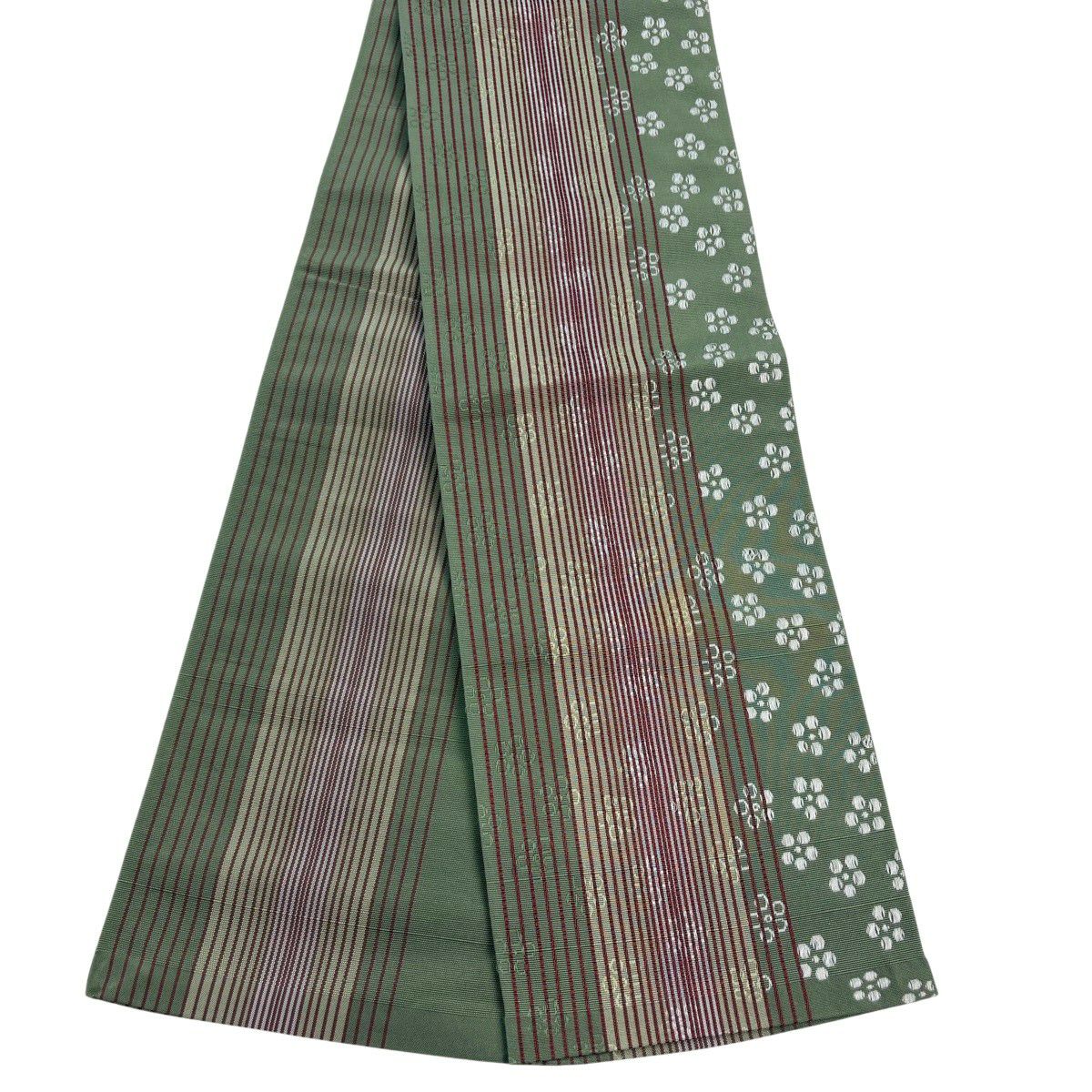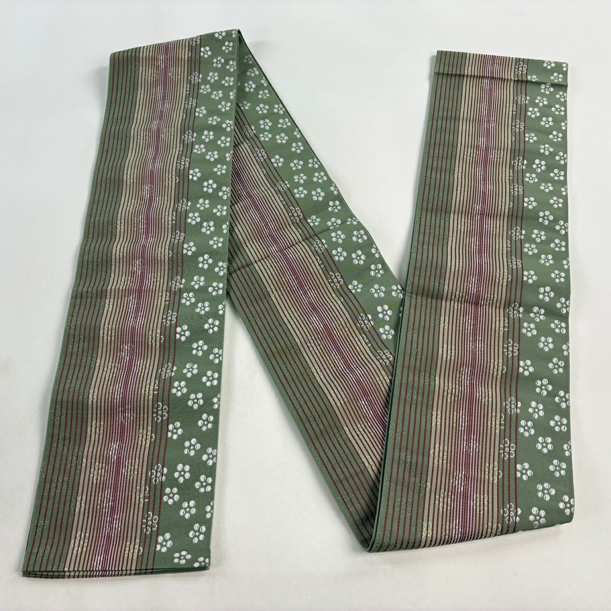 半幅帯 優品 唐草 縞 薄緑 化繊
