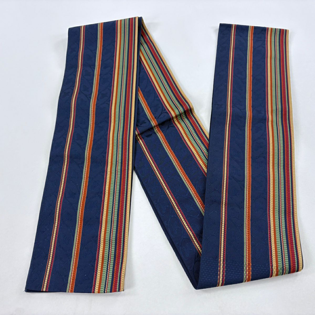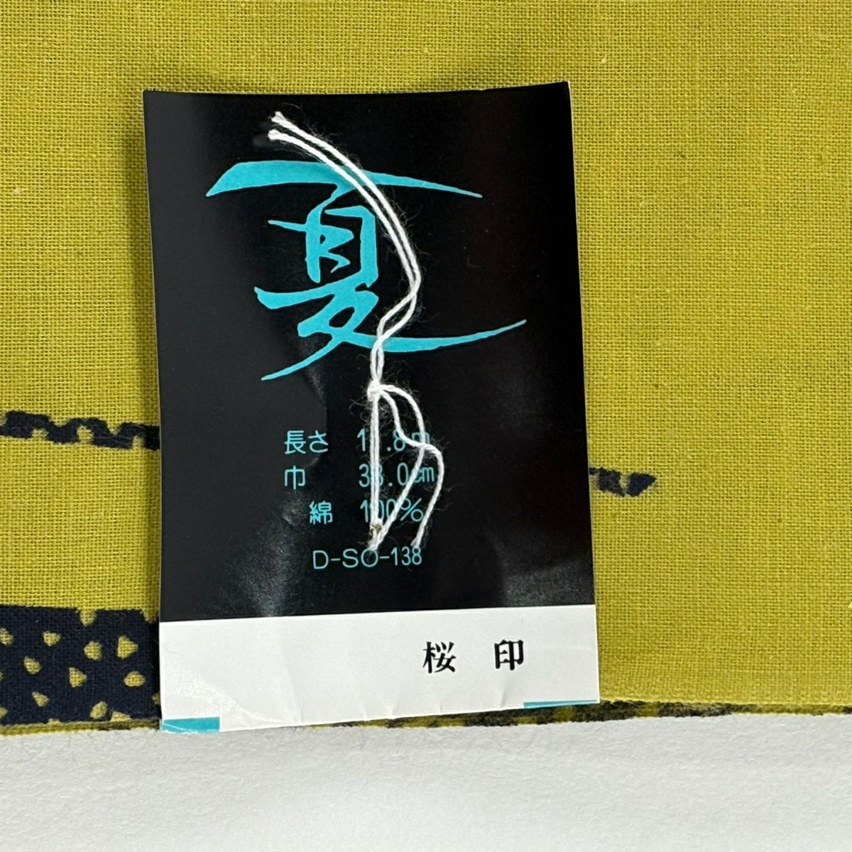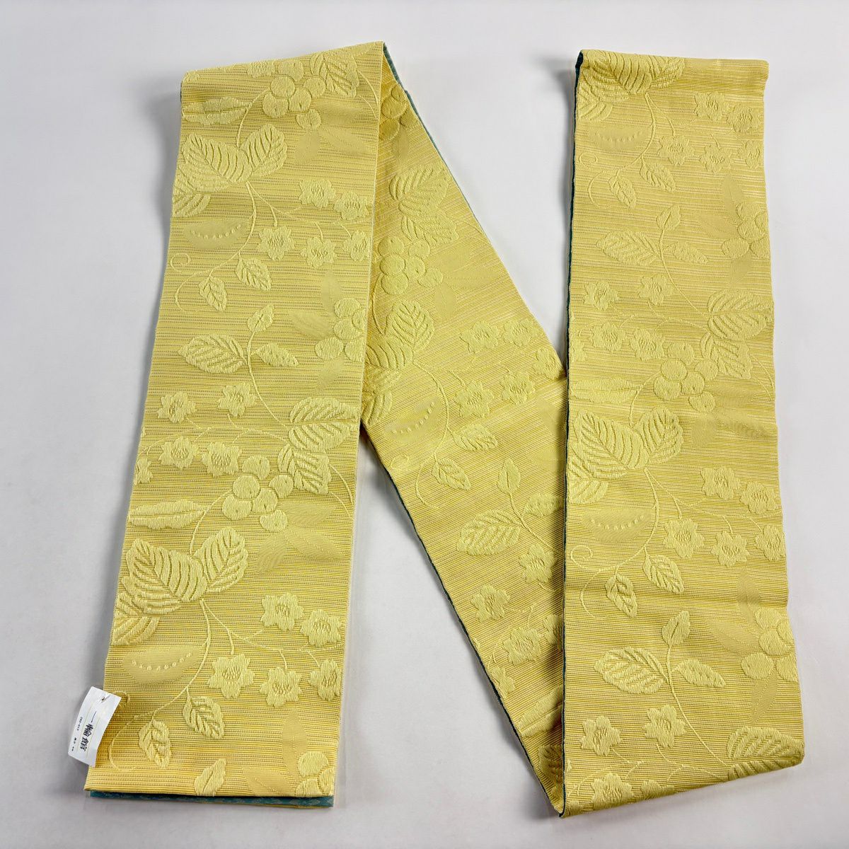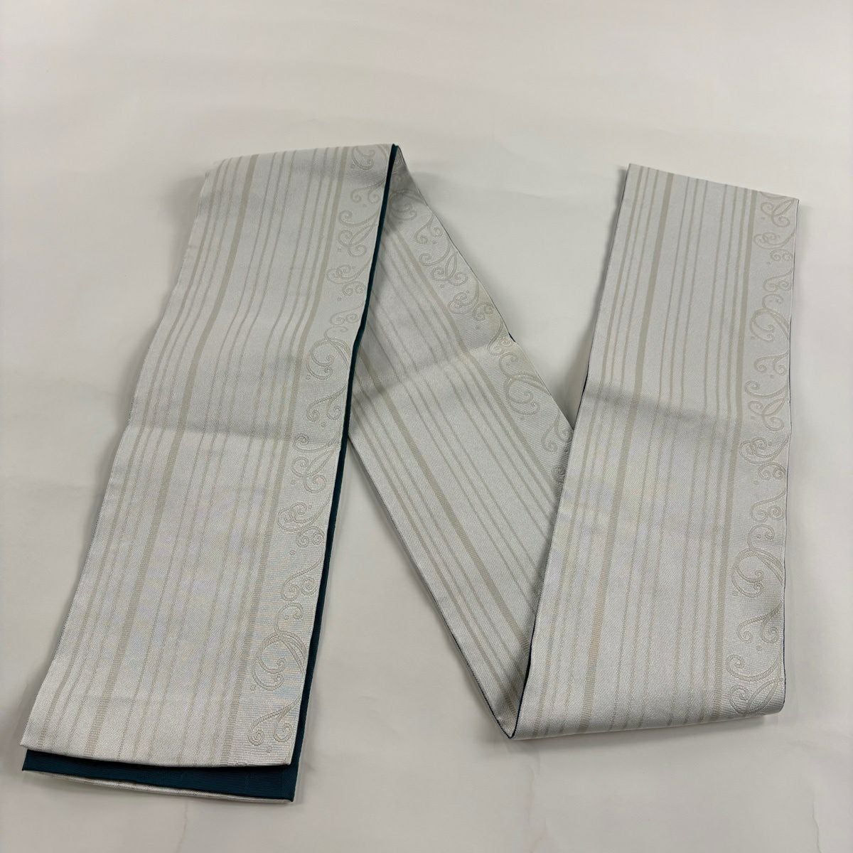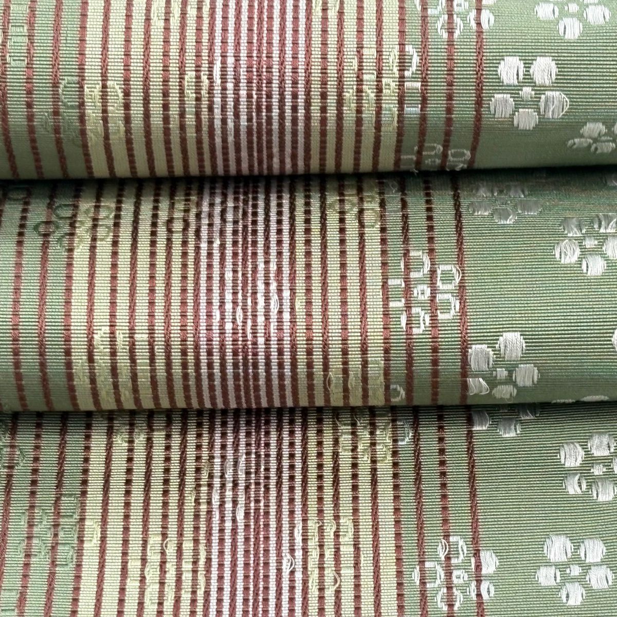 半幅帯 優品 唐草 縞 薄緑 化繊